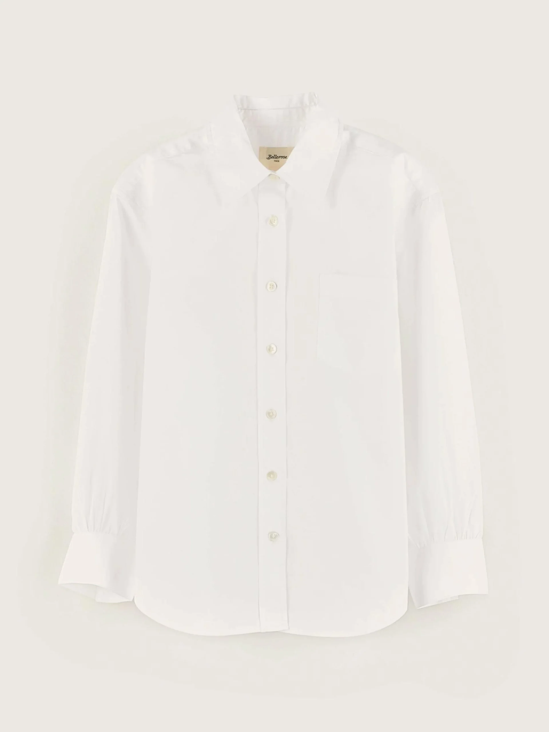 Klassiek recht hemd in kraakhelder wit popelinekatoen.