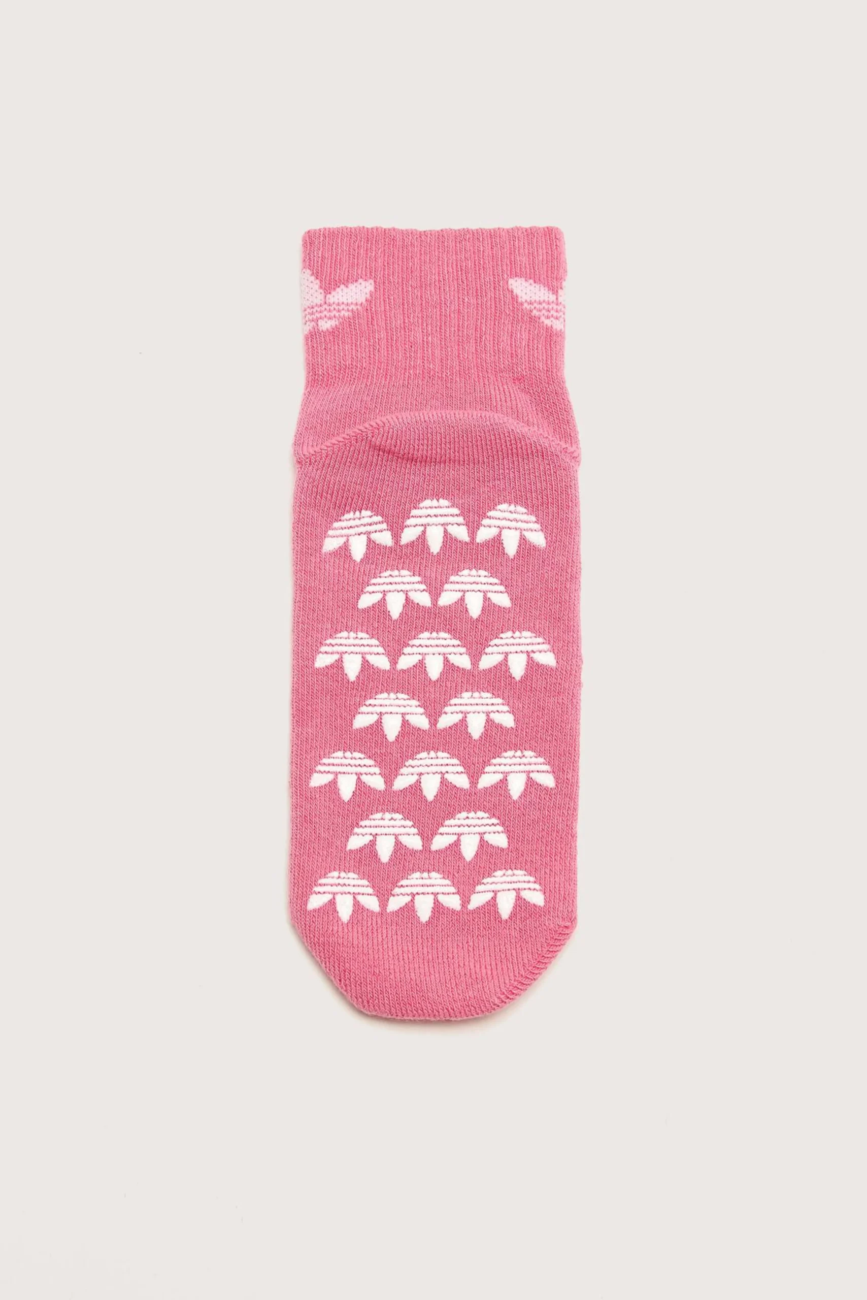 The Adidas kids’ anti-slip socks feature a trefoil pattern on the sole for secure footing and are crafted from a comfortable blend of recycled cotton.