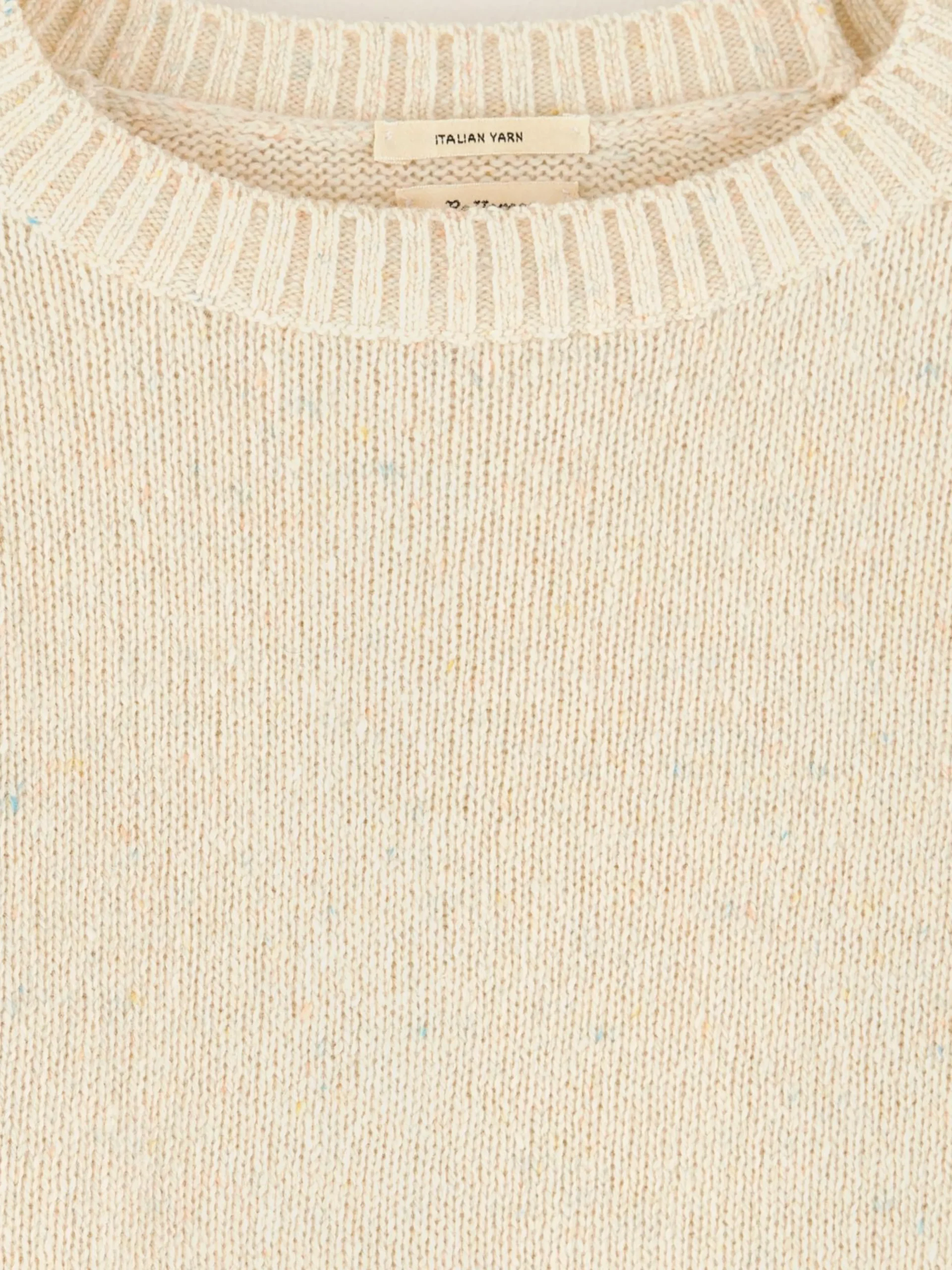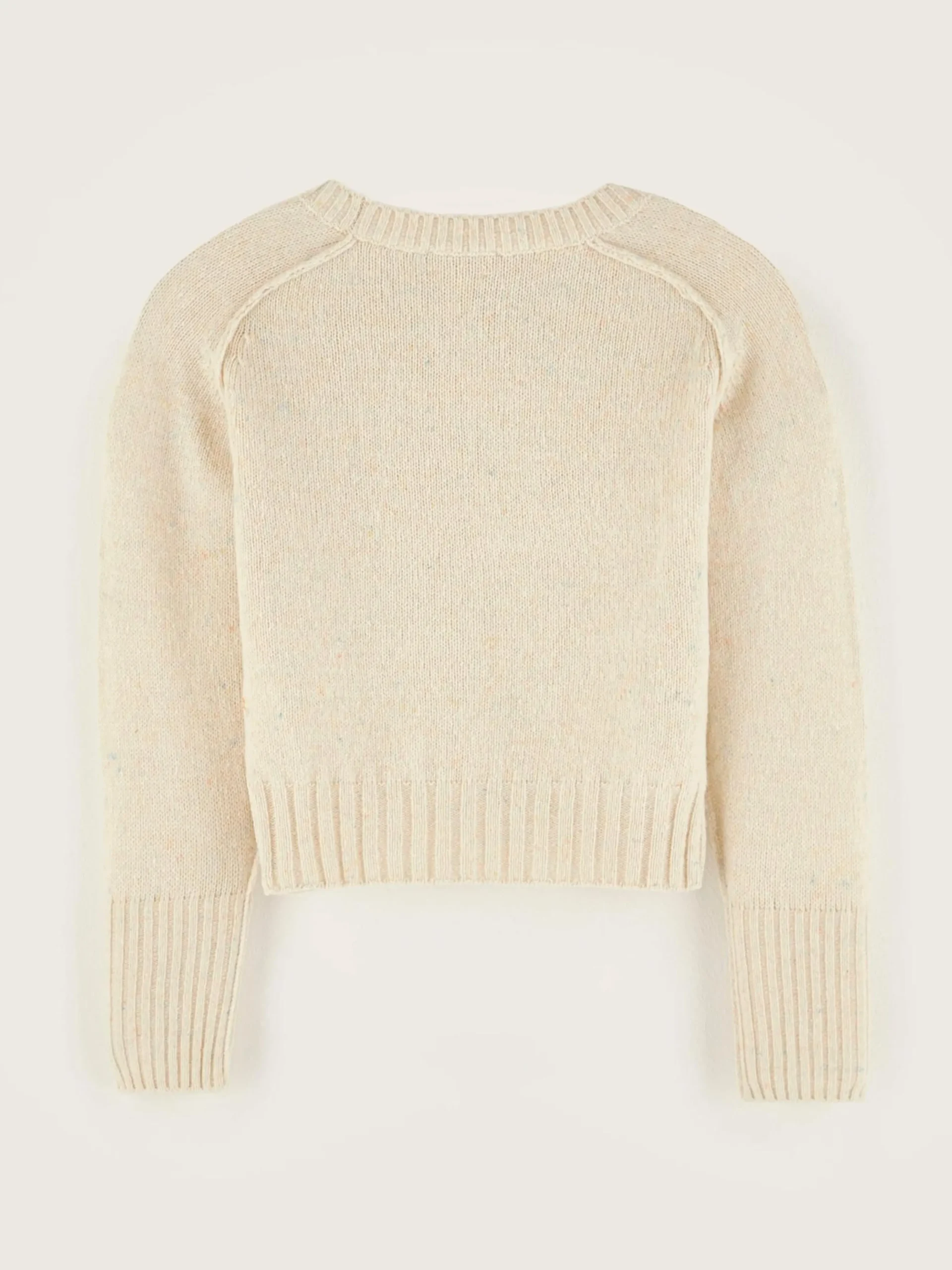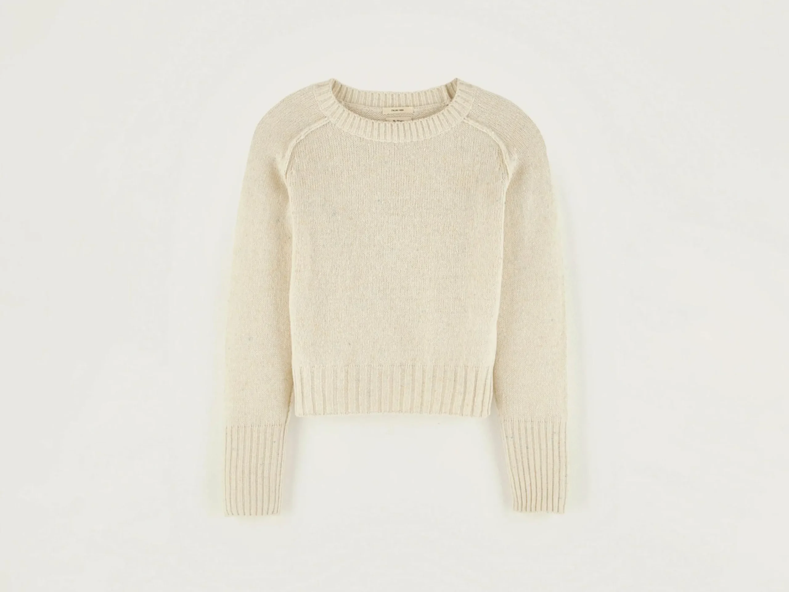 Beige, klassieke, aansluitende trui.