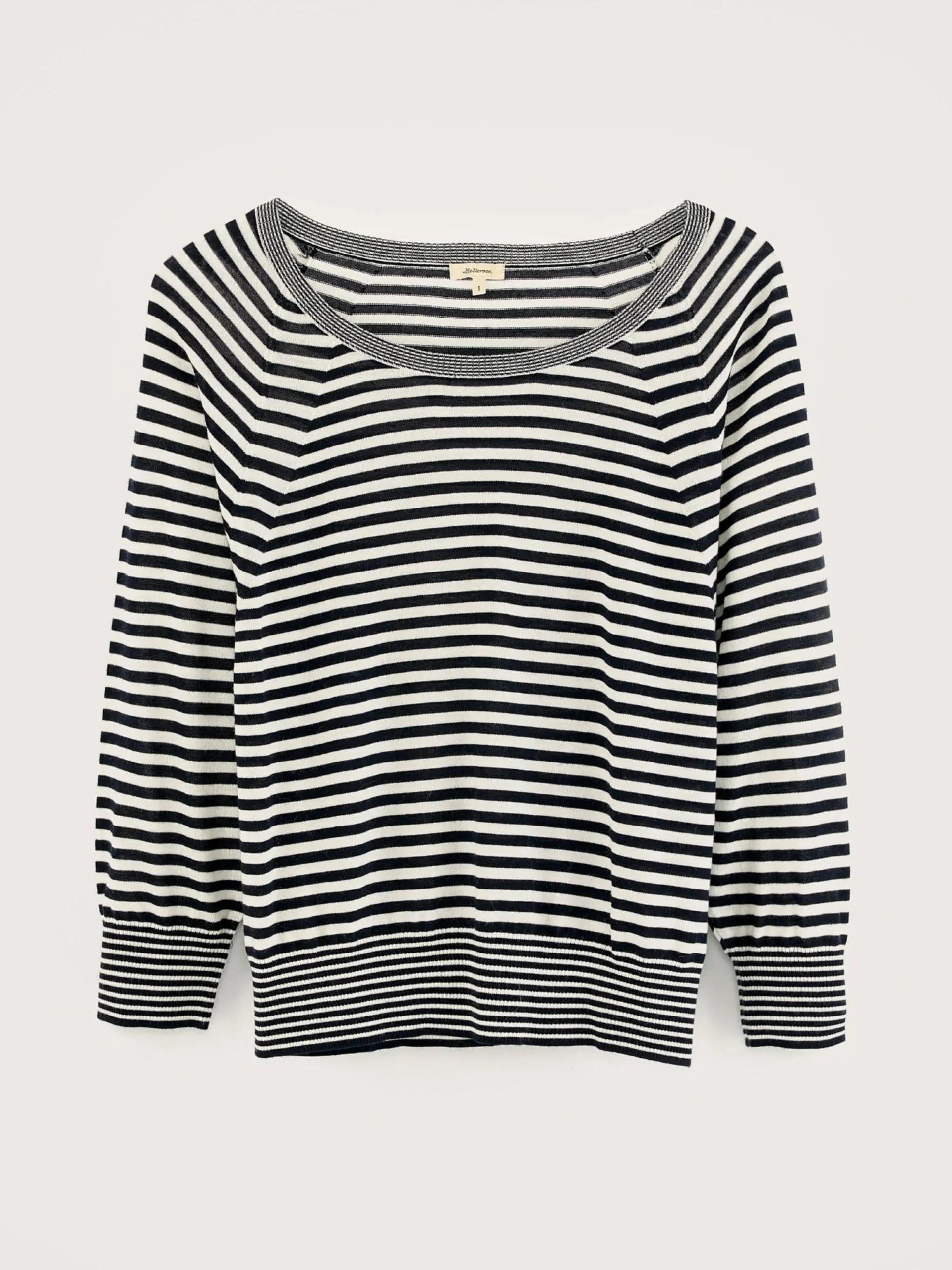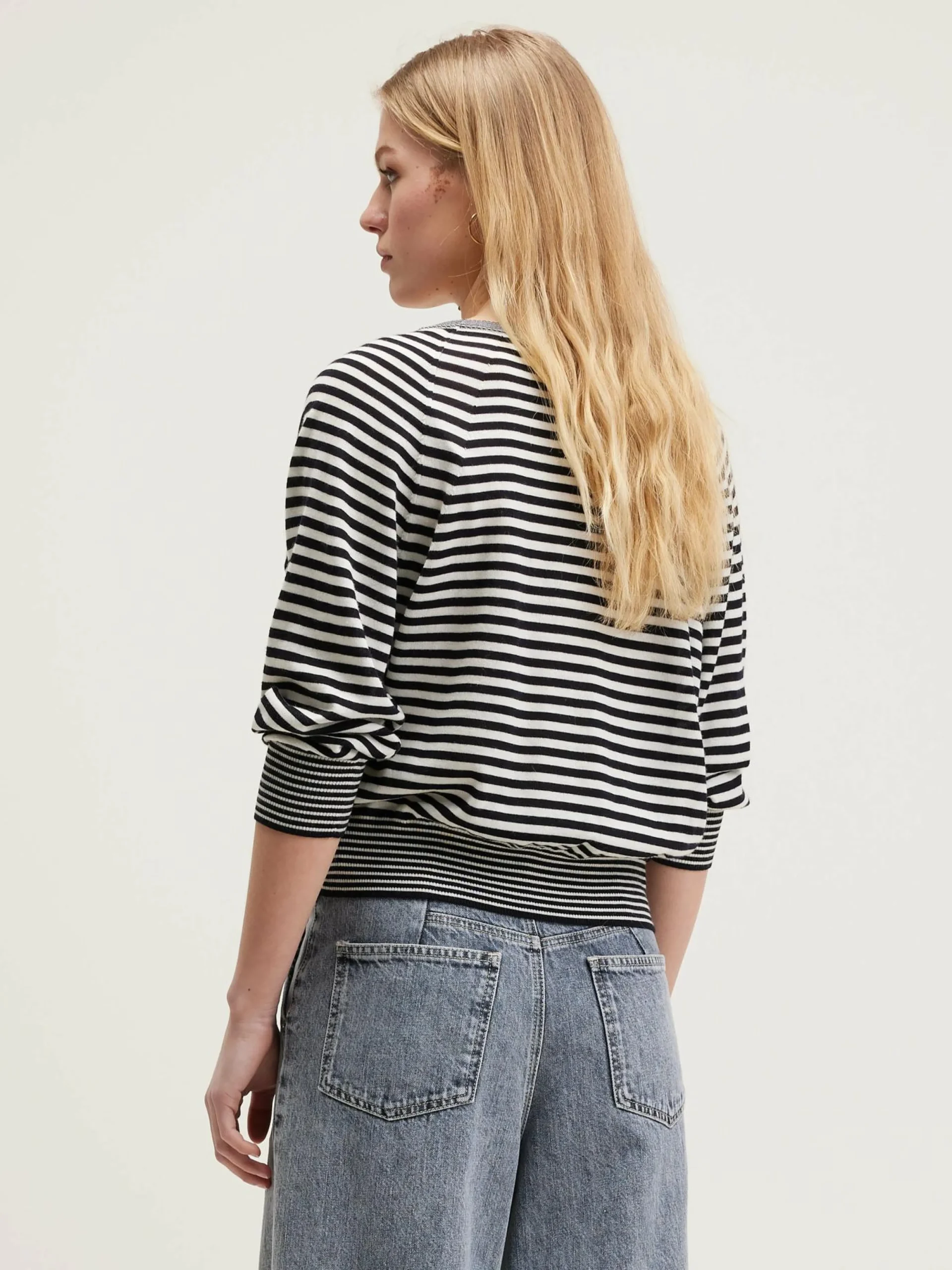Sweater met sweatshirtlook, van gestreepte merinowol.