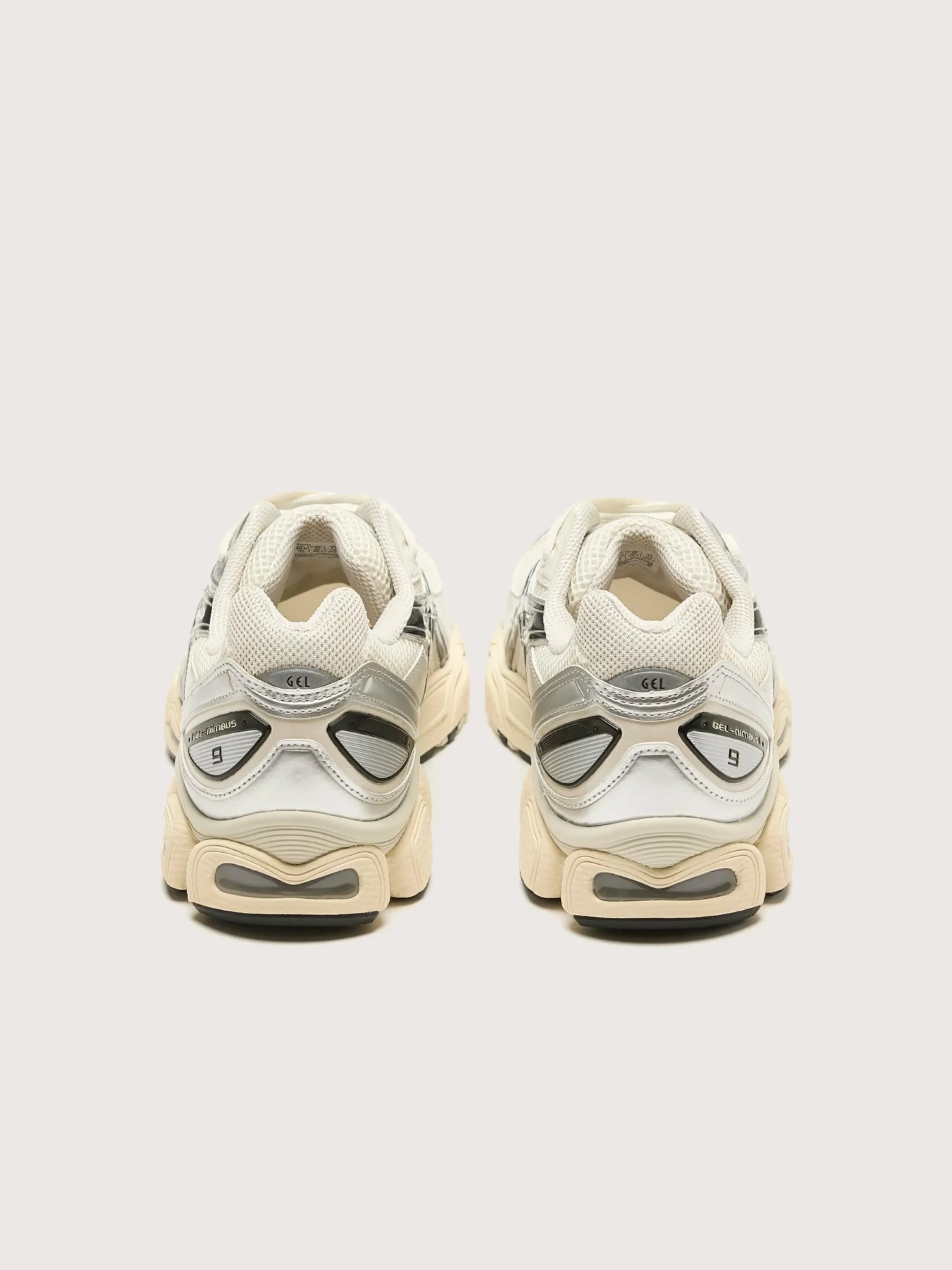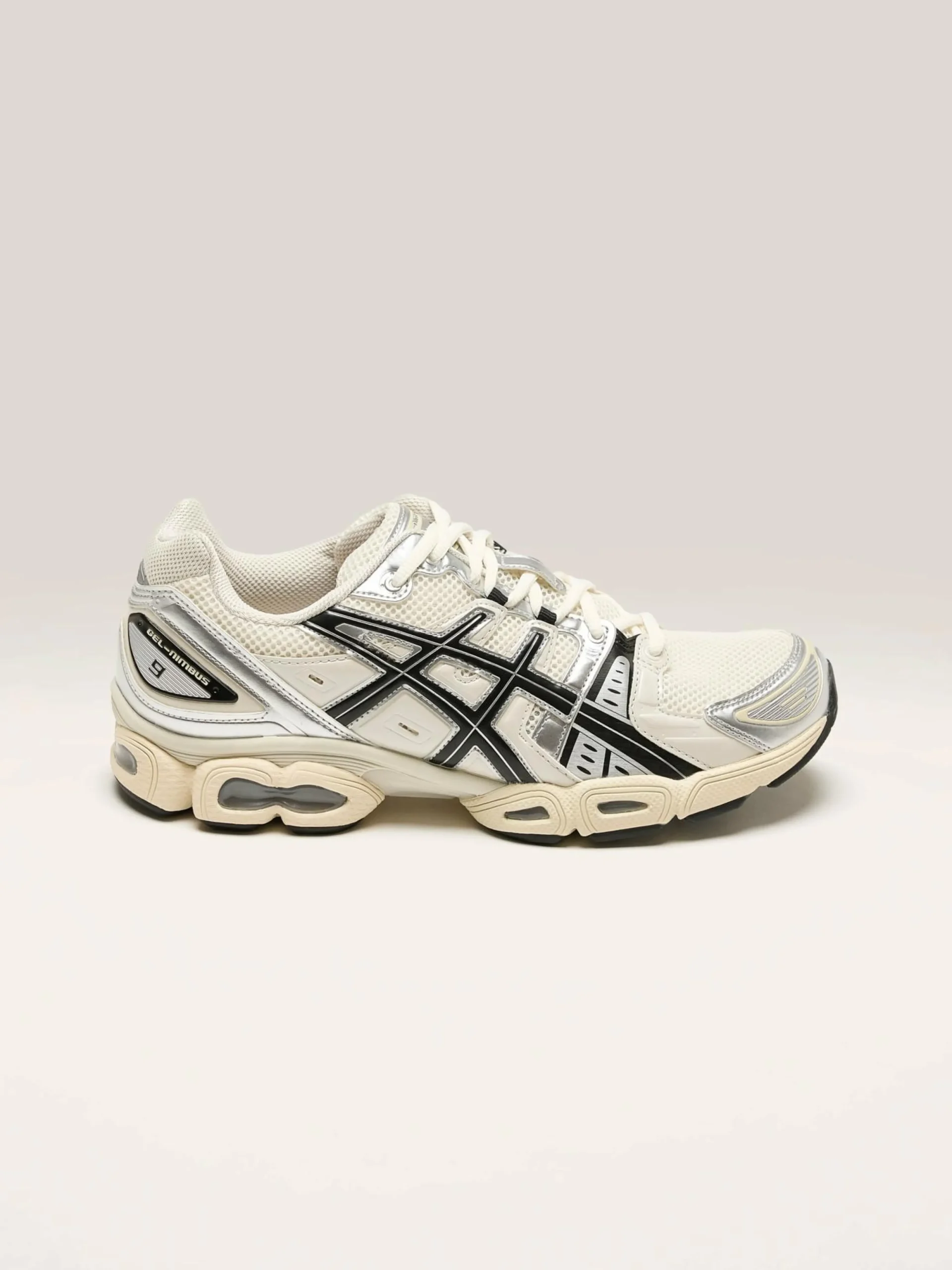 De Asics Gel-Nimbus 9 sneakers hebben een industrieel Y2K-silhouet met GEL®-technologie-inzetstukken voor een gedempte en stabiele stap.