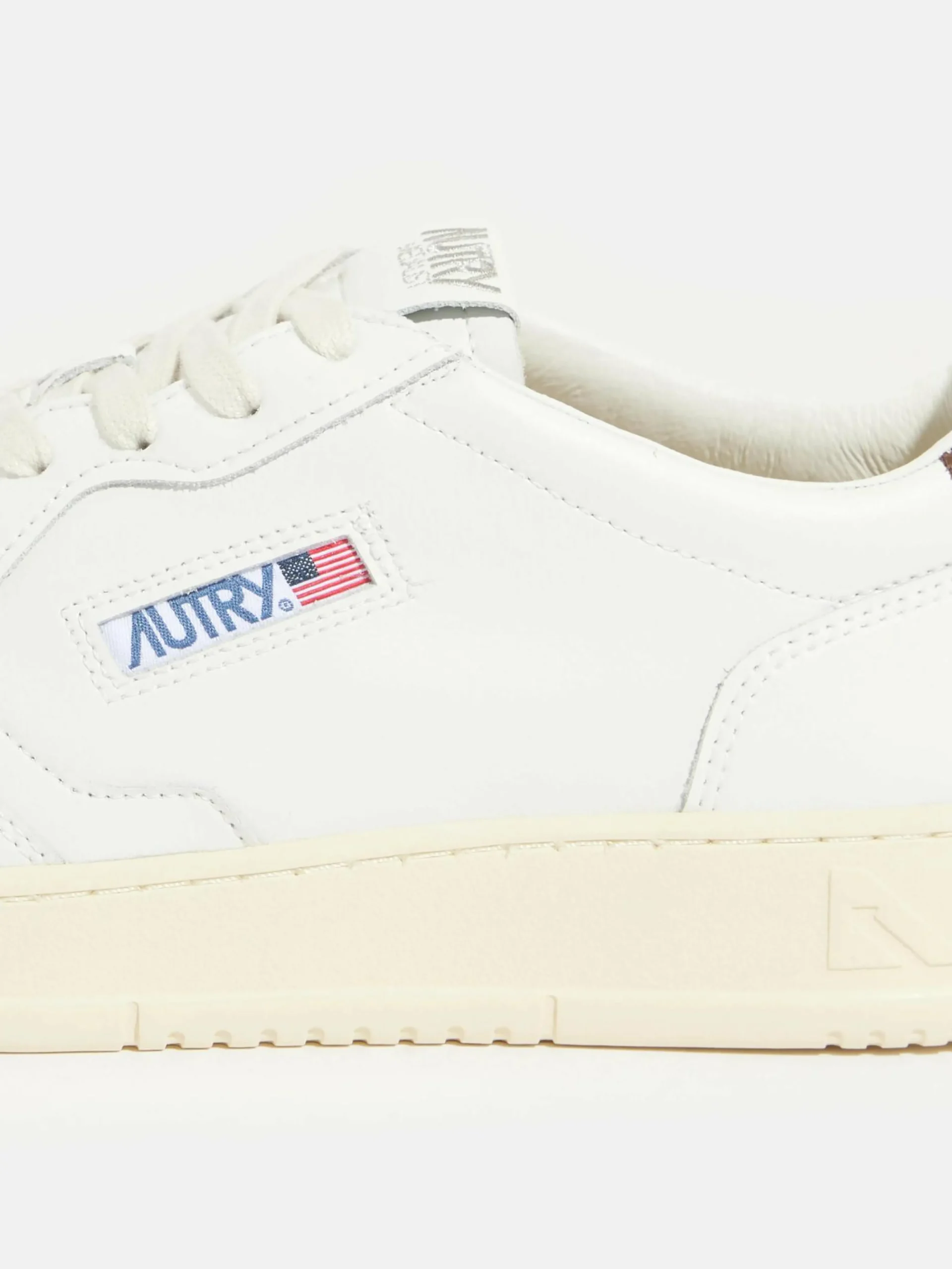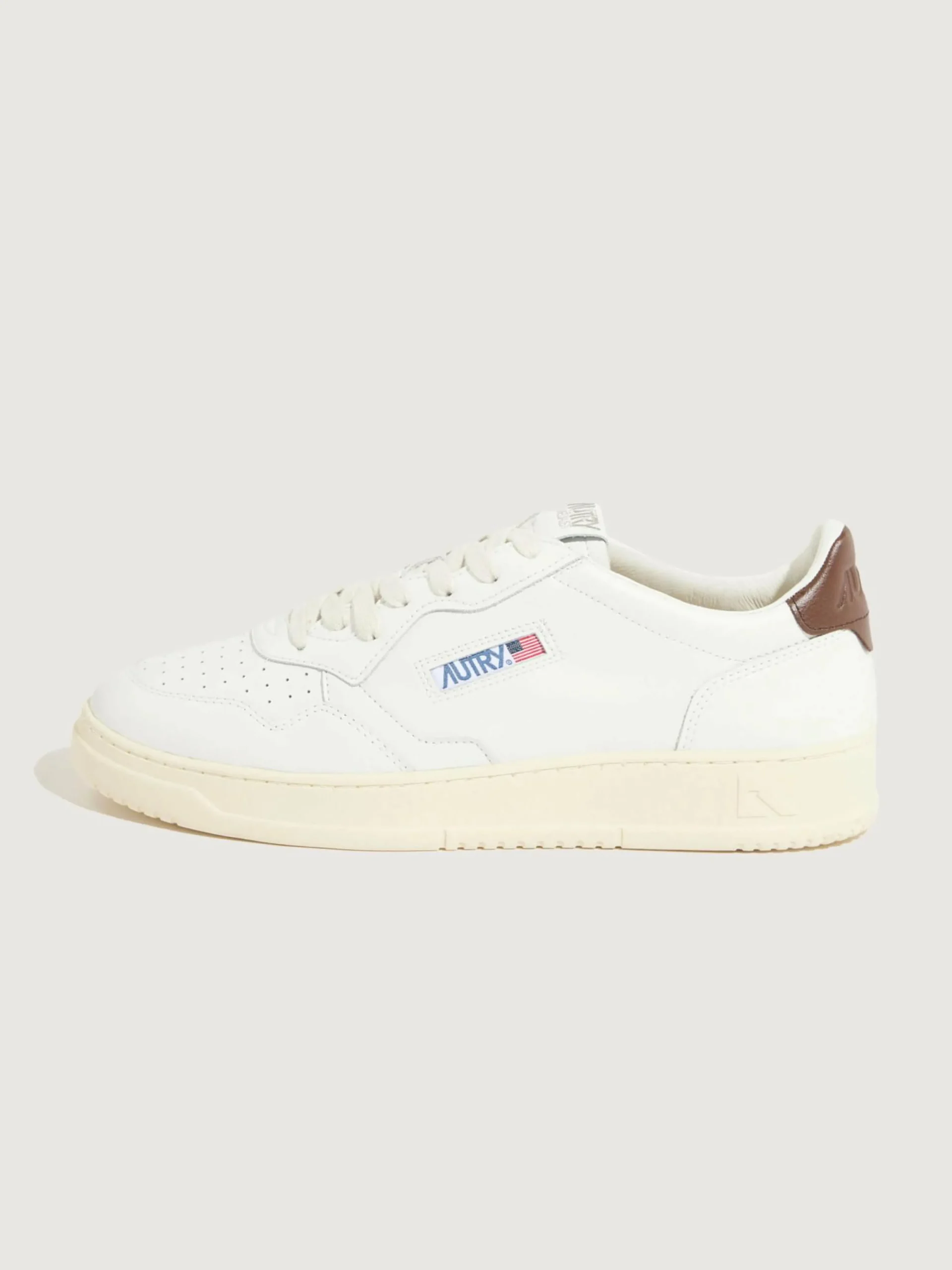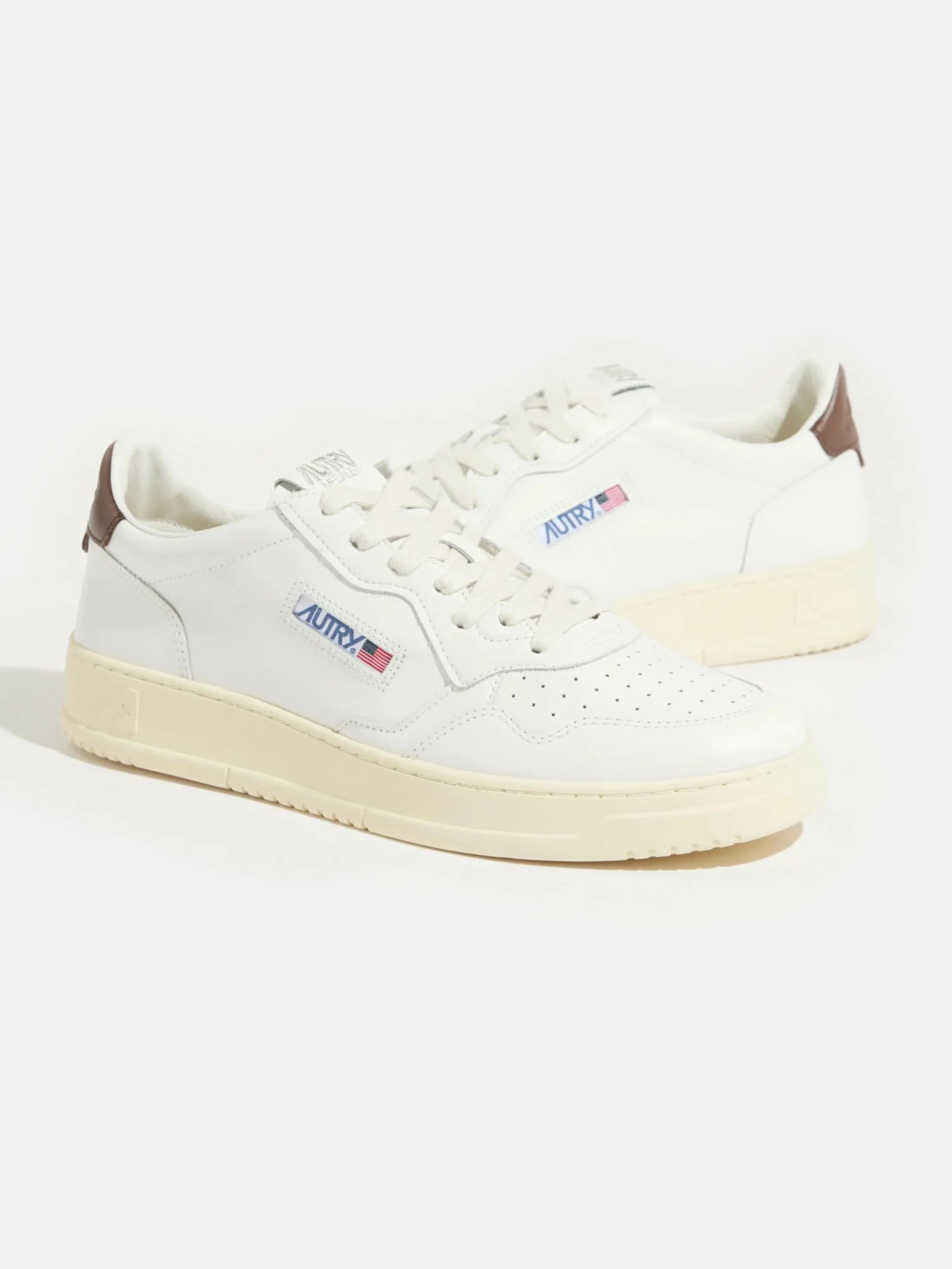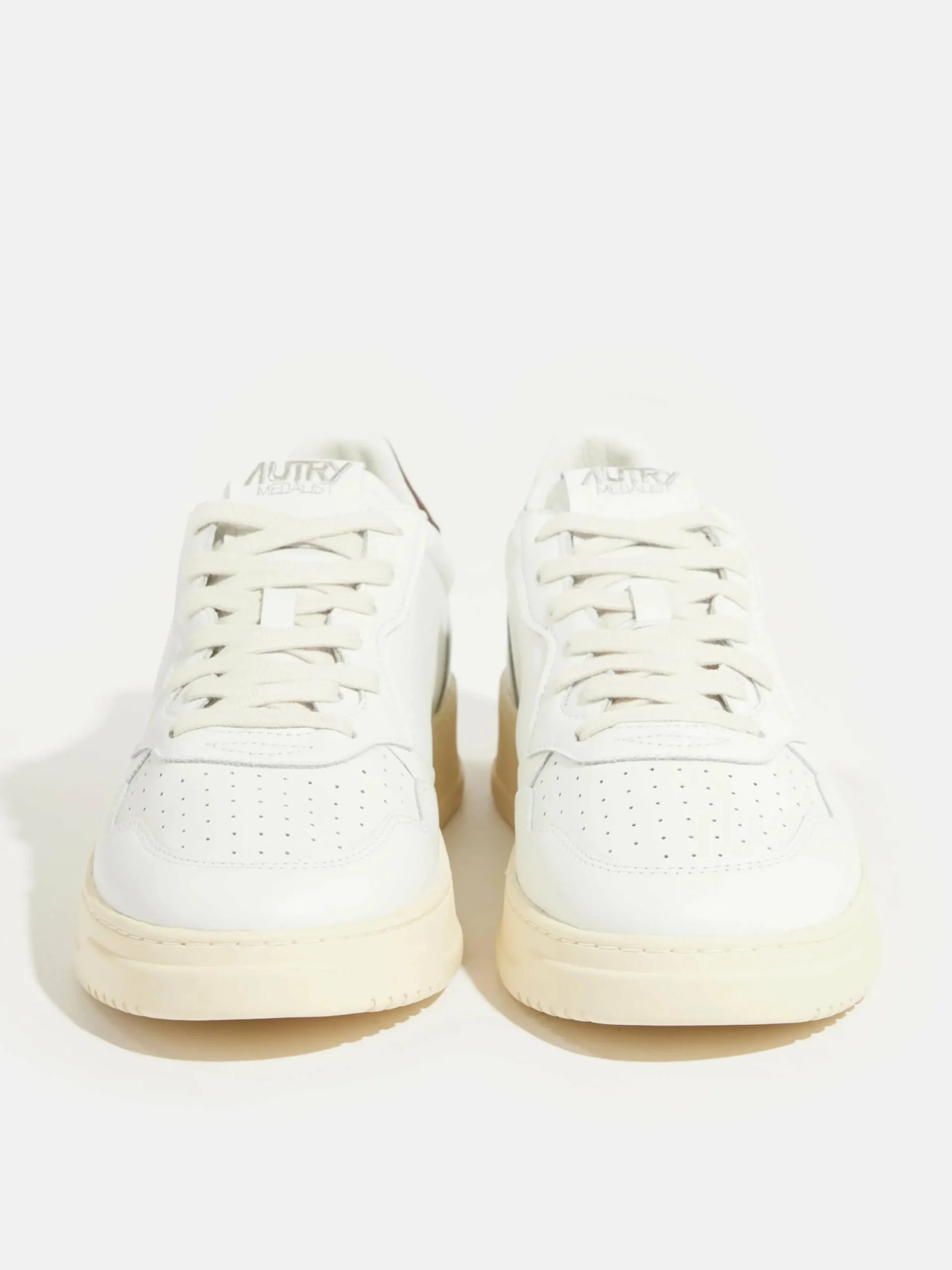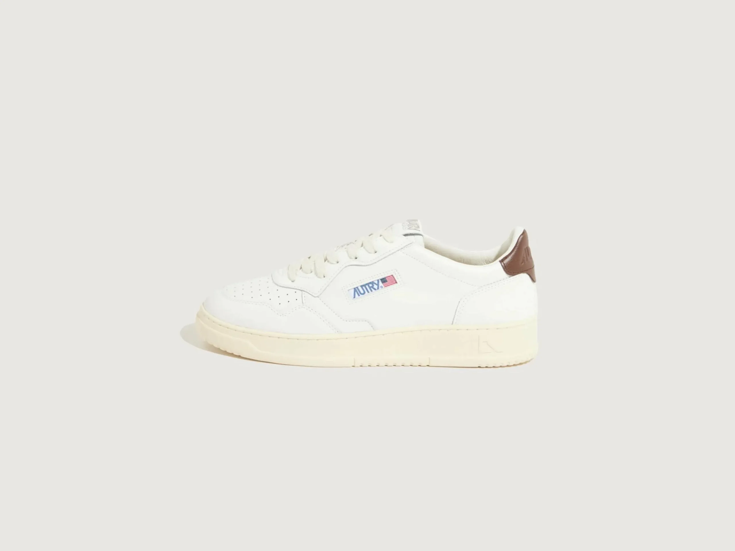 De Autry Medalist Low sneakers hebben een natuurlijk, soepel bovenwerk van wit leder met een geperforeerde neus en een bruin lederen hiellipje.