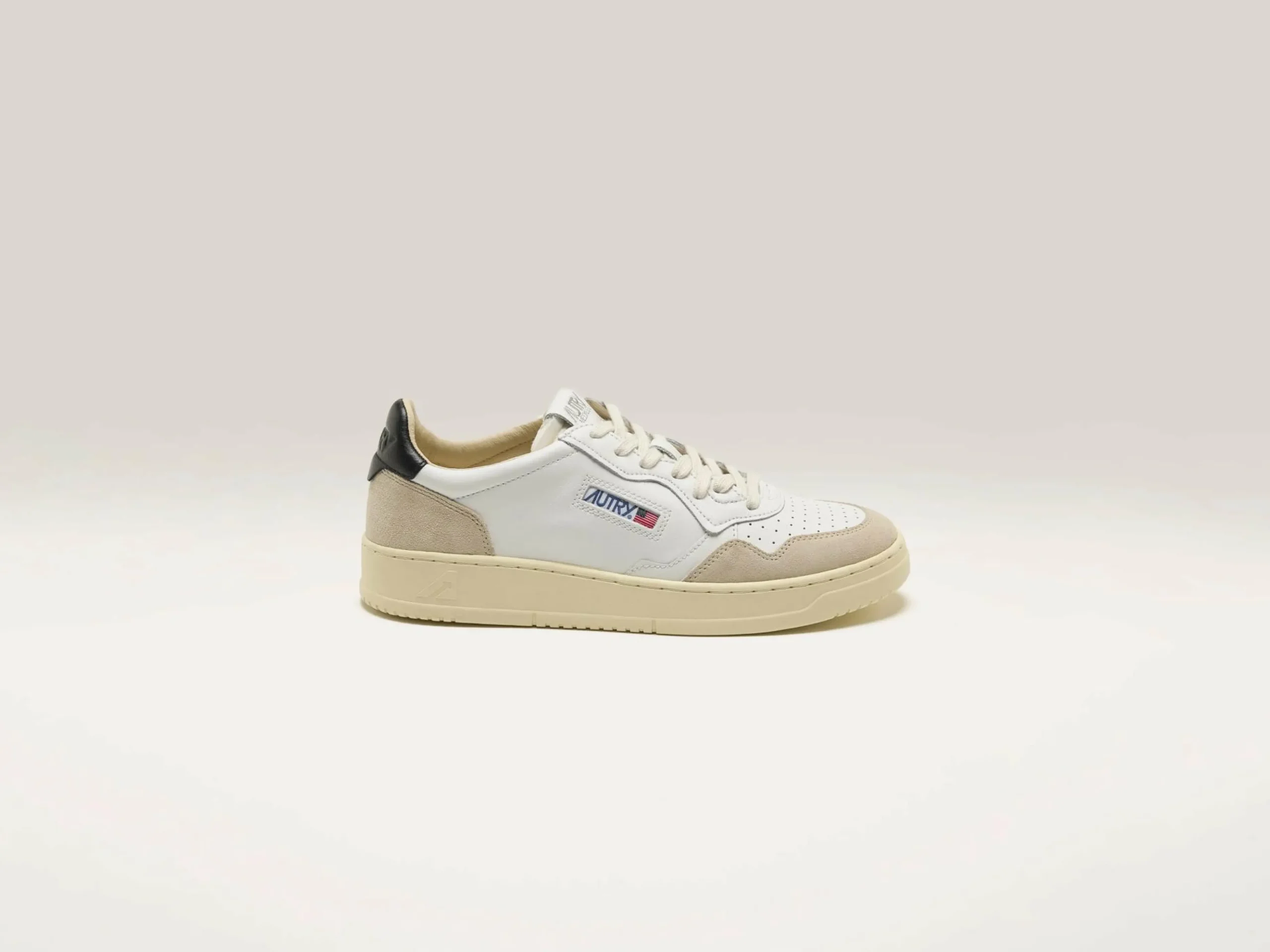 De Autry Medalist Low sneakers hebben een wit soepel lederen bovenwerk met zacht suède panelen, een geperforeerde neus en een zwart lederen hiellipje.