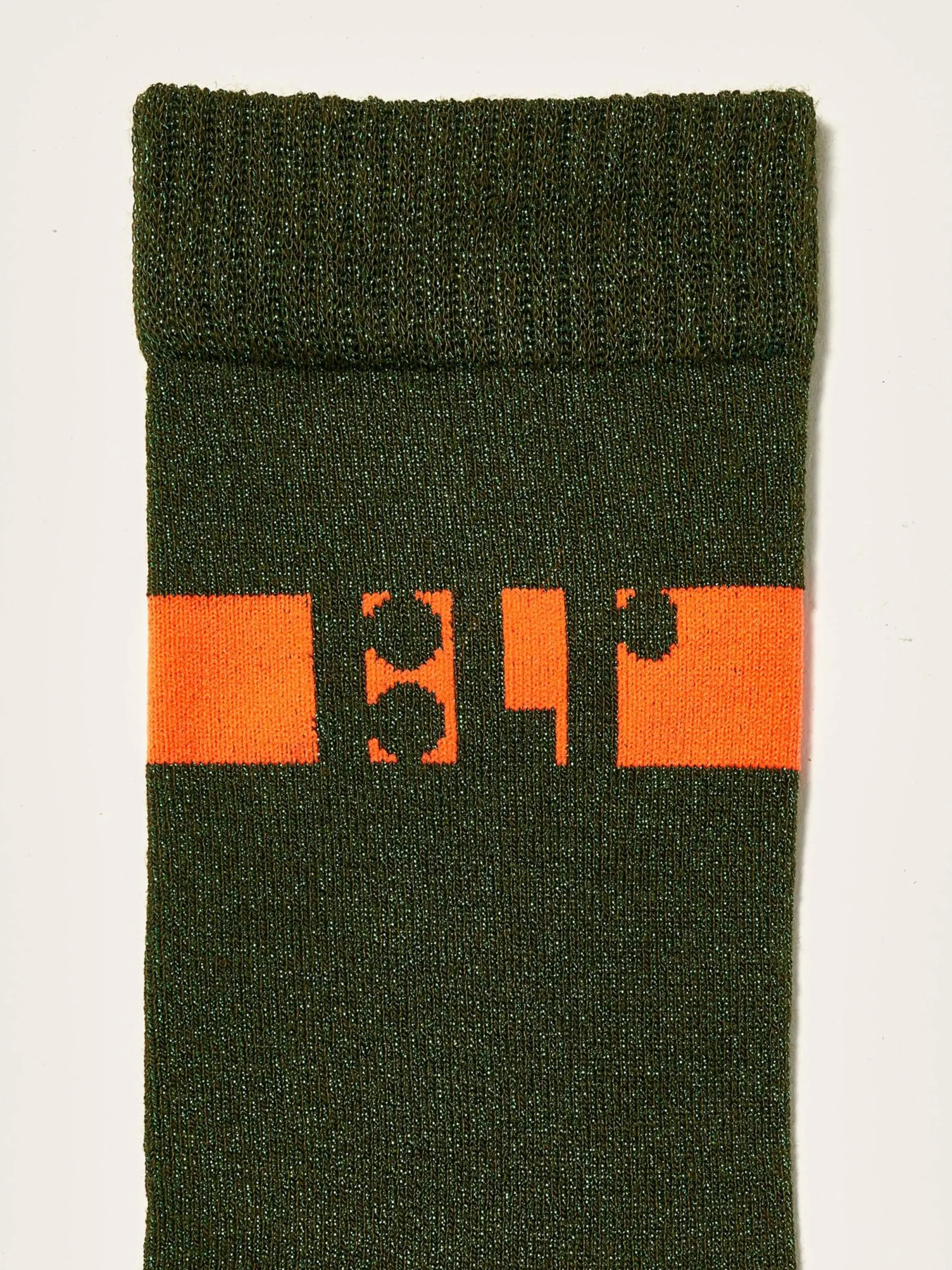 Klassieke kakigroene BLR-sokken met contrasterend logo op de enkel.