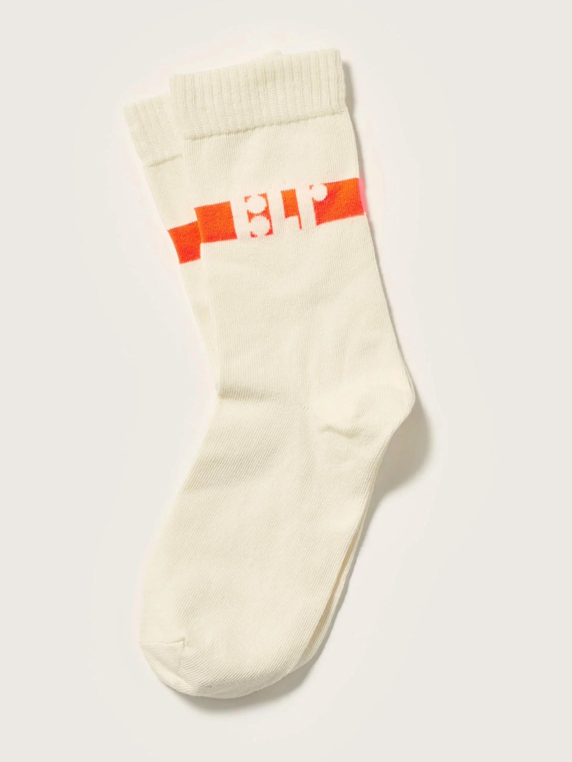 Klassieke BLR sokken in ecru met contrasterend logo op de enkel.