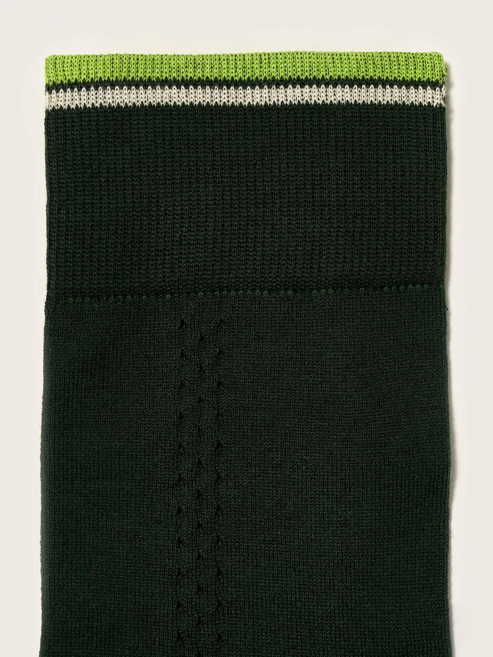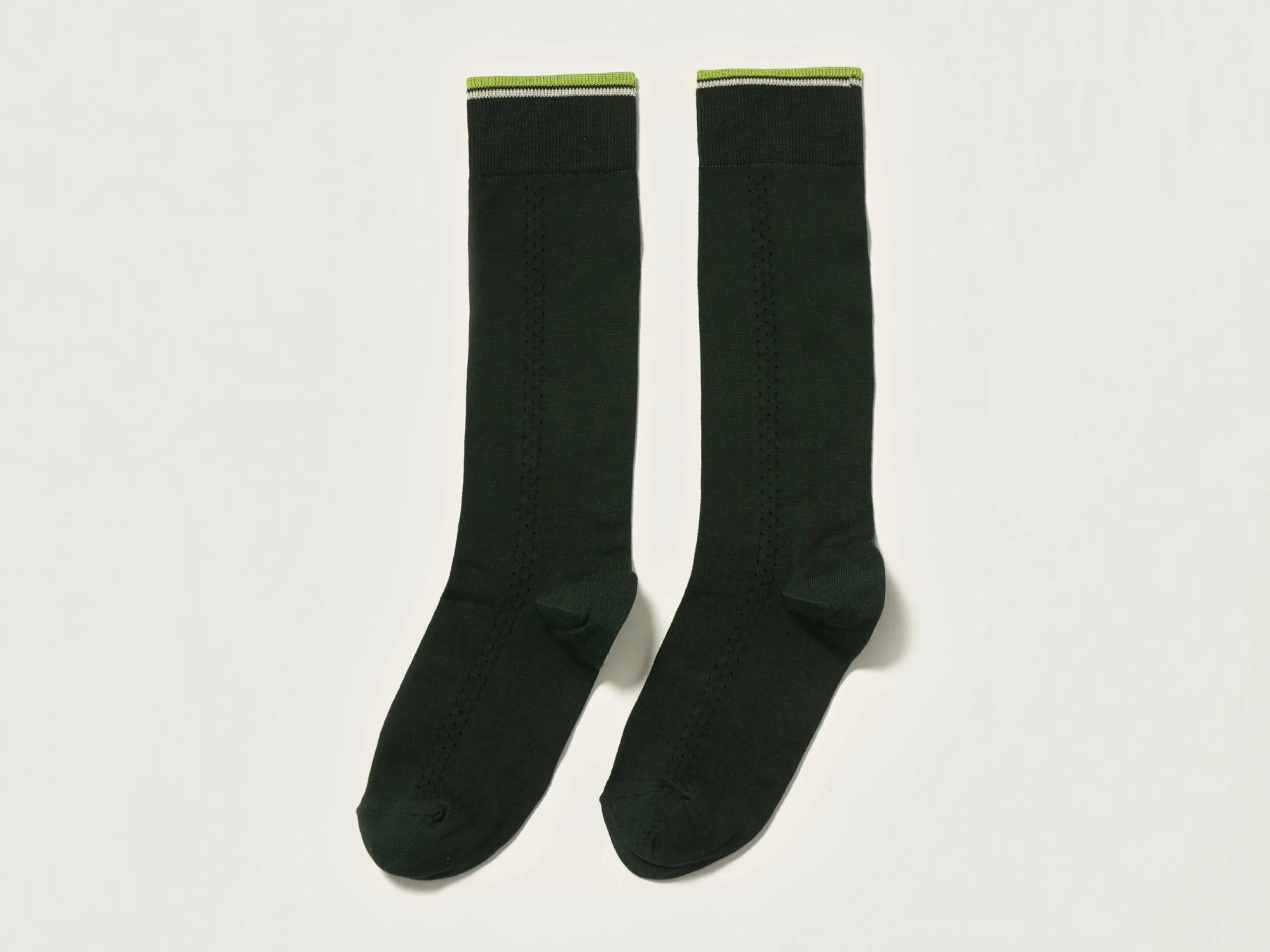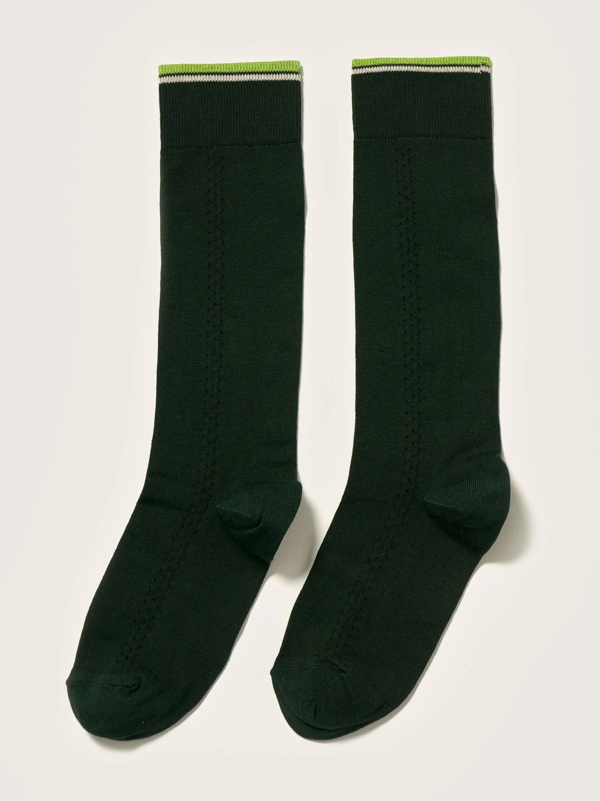 Opengewerkte, flesgroene kniekousen met traforatodetails