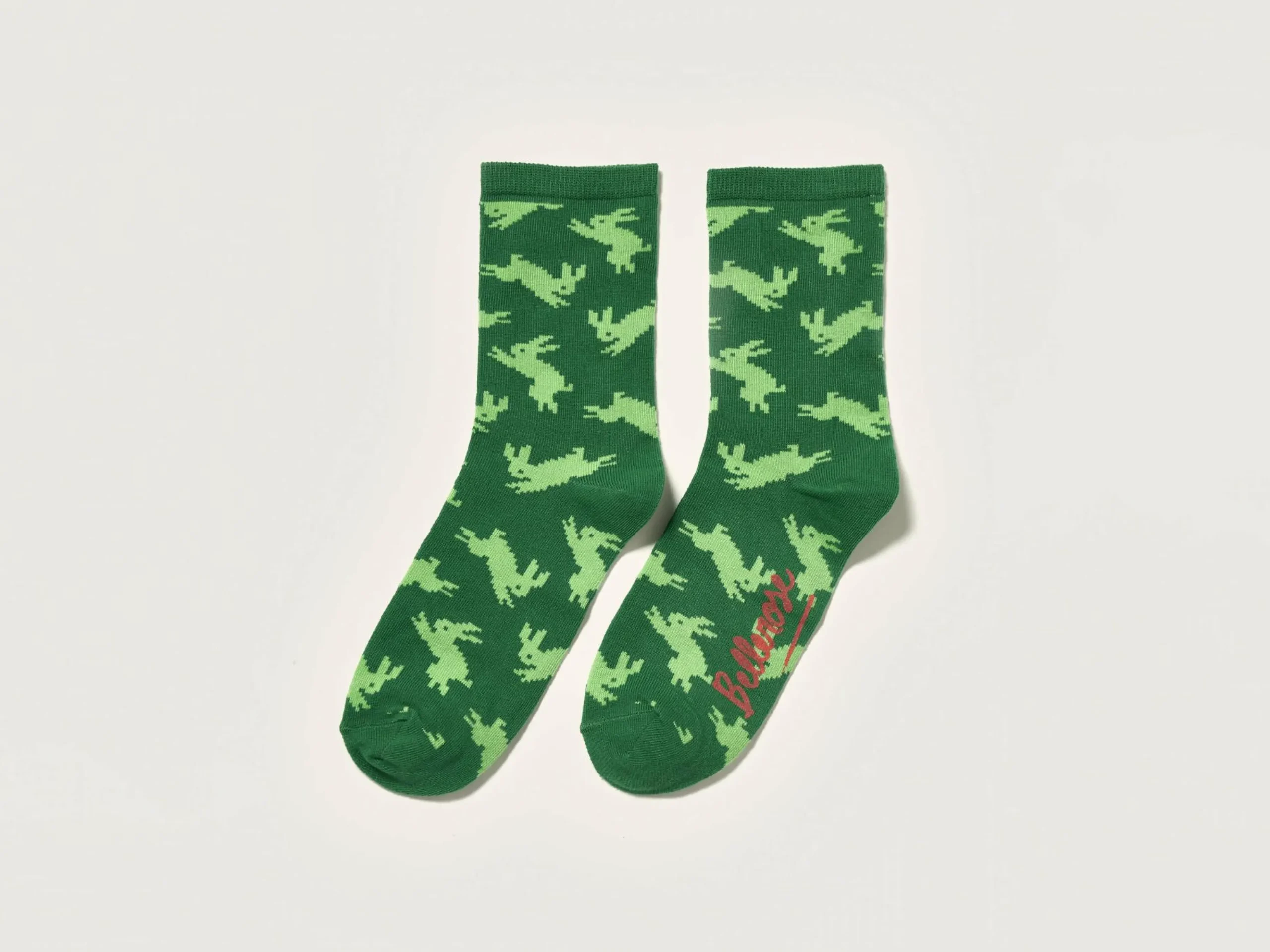 Klassieke sokken met jacquard konijnpatroon en Bellerose x The Animal Observatory-print op de voetzolen.