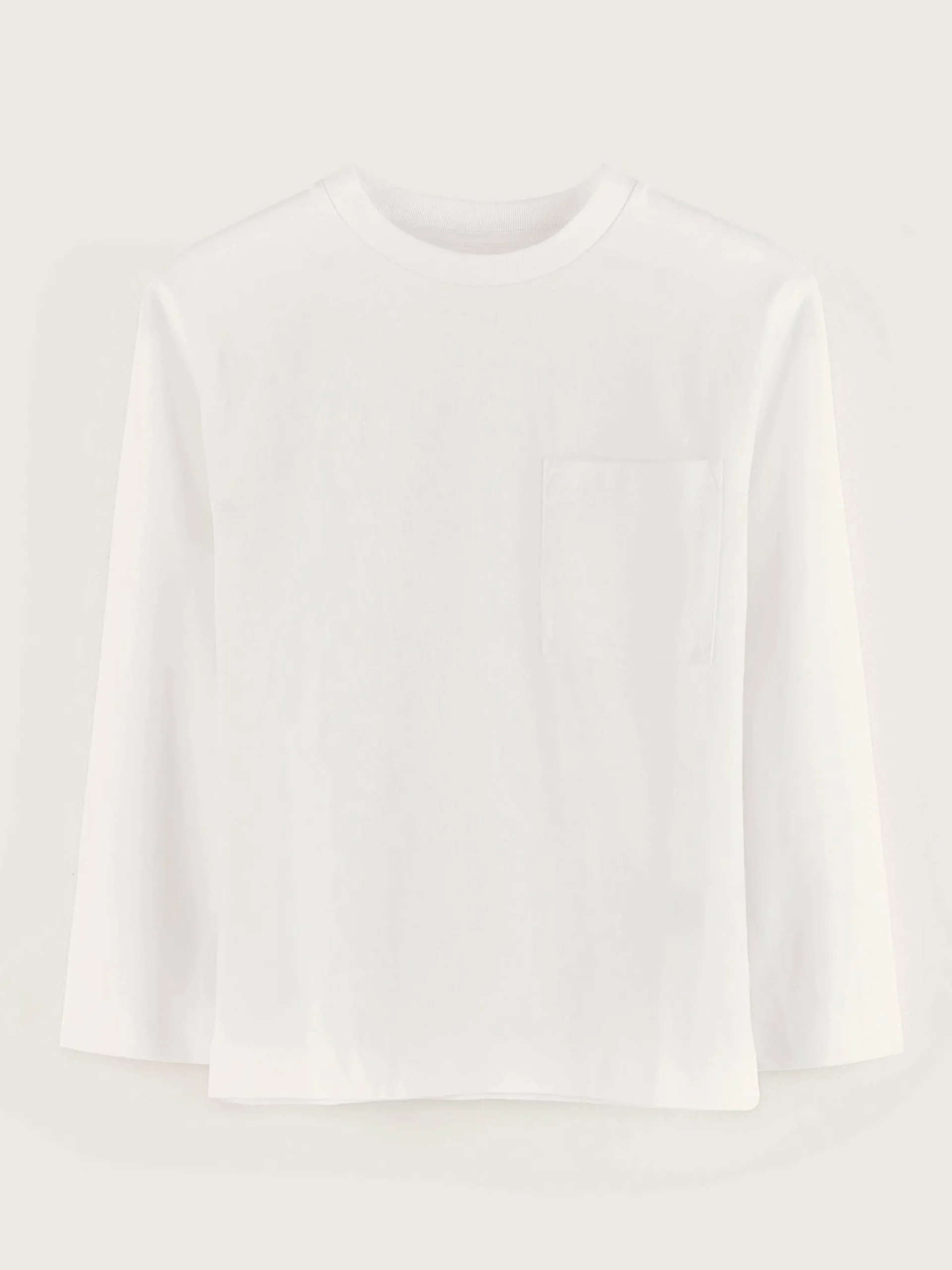 Comfortabel, cropped T-shirt met lange mouwen van witte katoenjersey.
