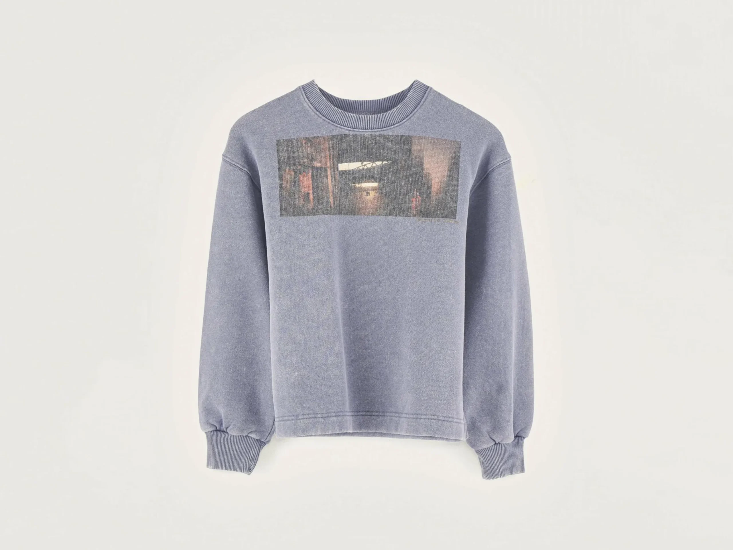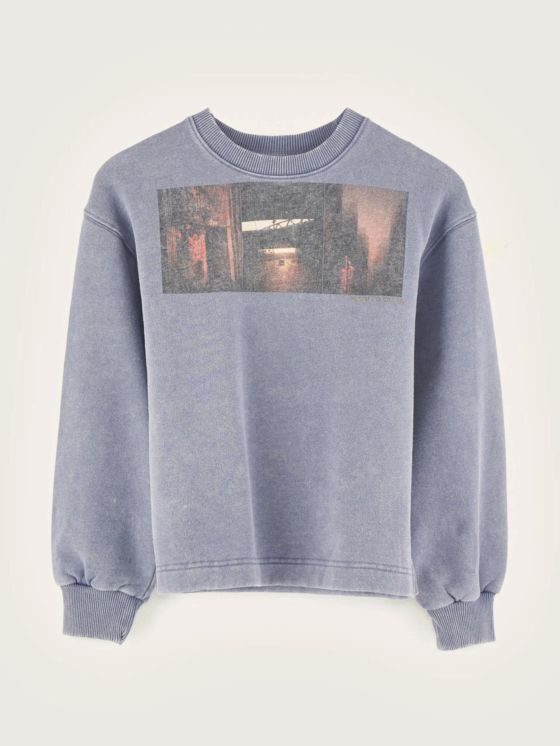 Comfortabel, grijs sweatshirt van geborstelde fleece met fototriptiek van Daniil Lavrovski.