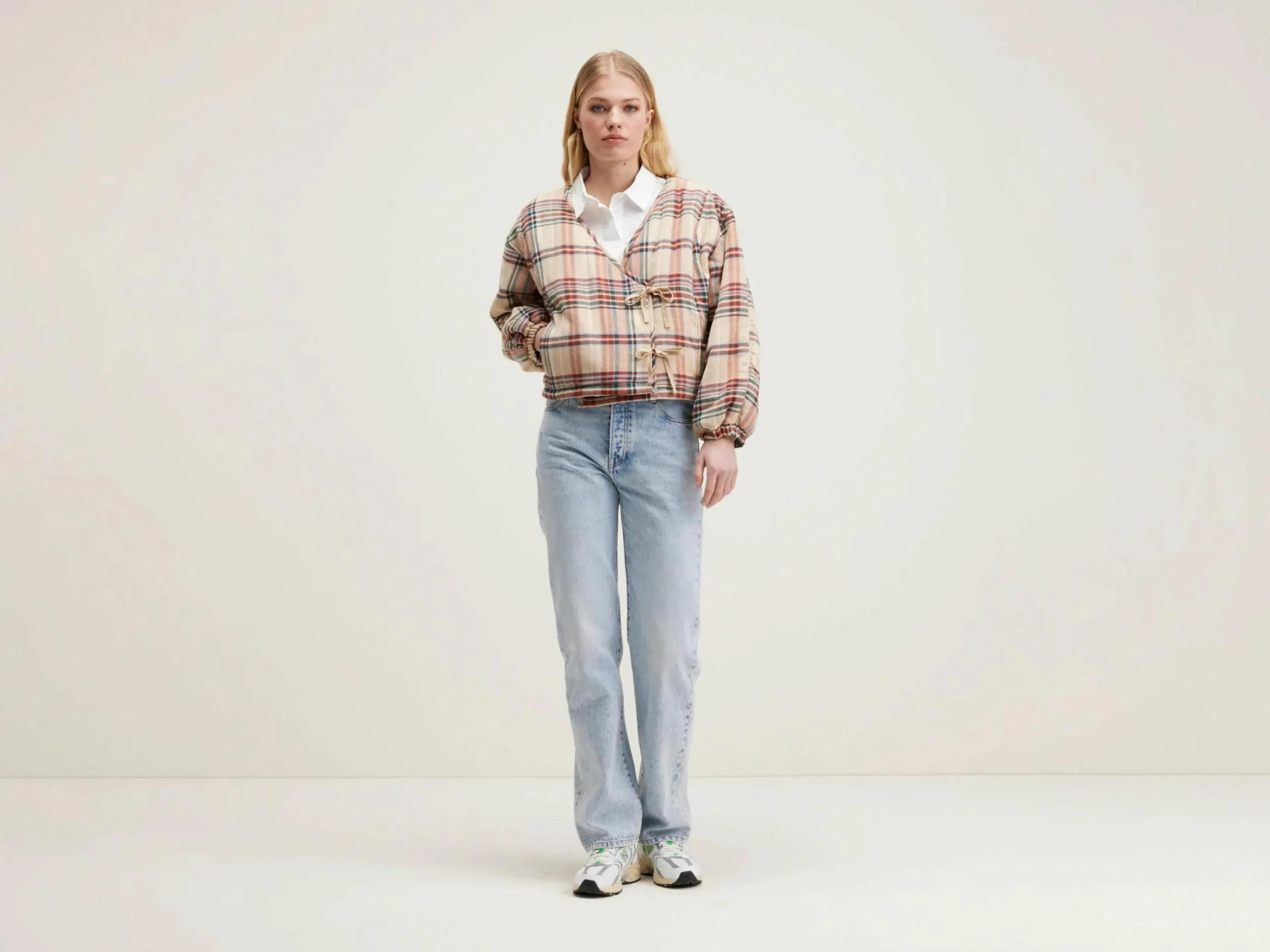 Geruit overshirt in kimonostijl met lintjes als sluiting.