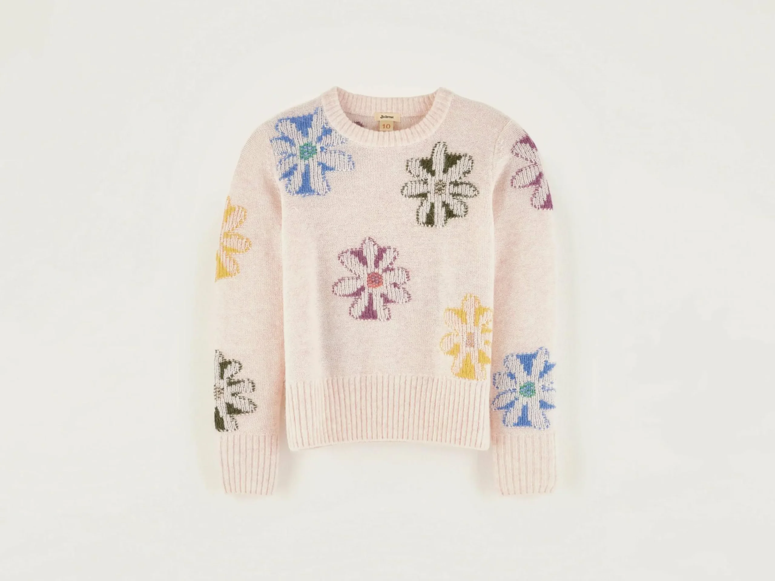 Klassieke trui met ronde hals, van dubbele jacquard en met bloemenmotief.
