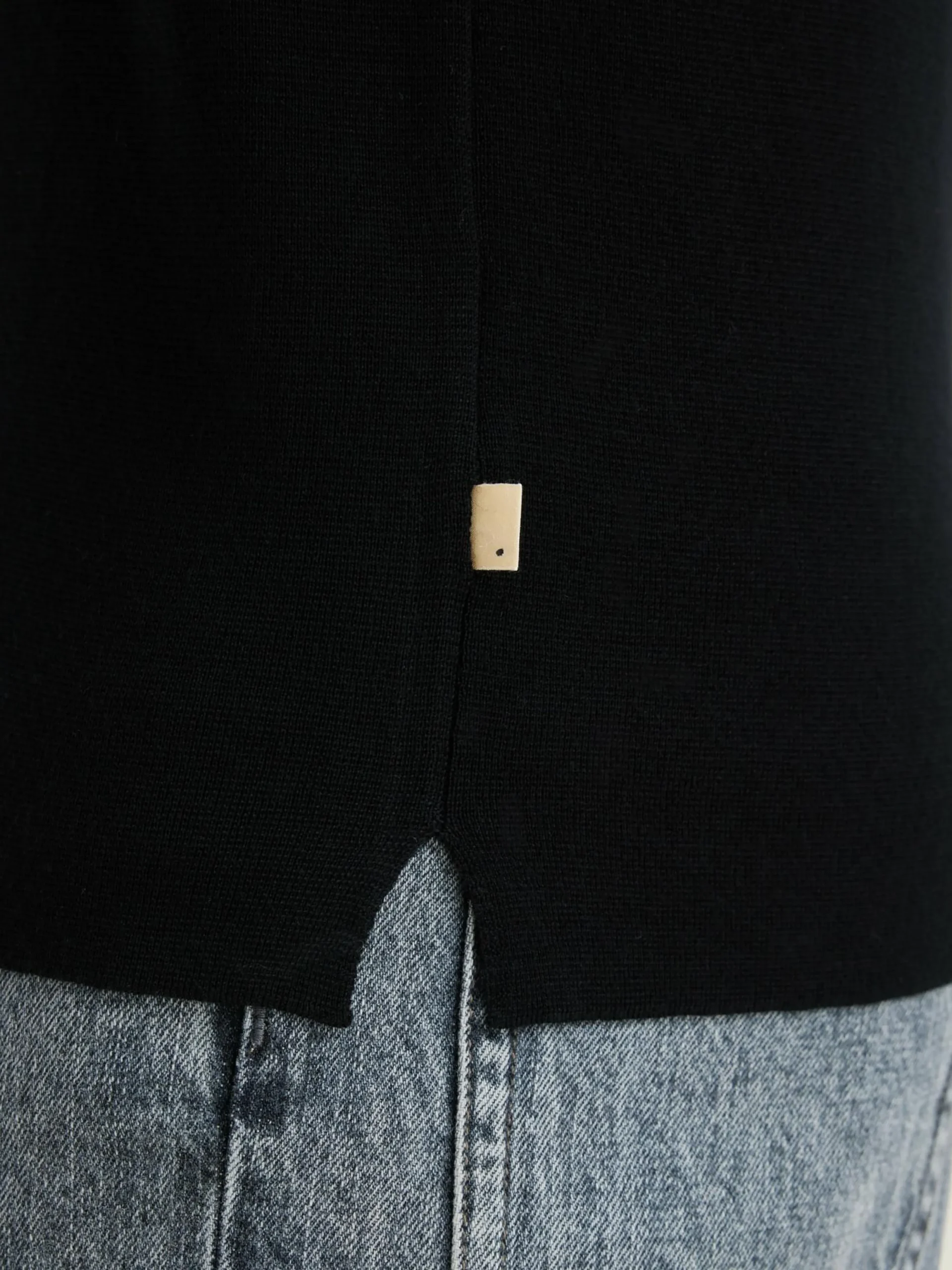 Klassieke, zwartblauwe sweater in polostijl, van extrafijne merinowol.