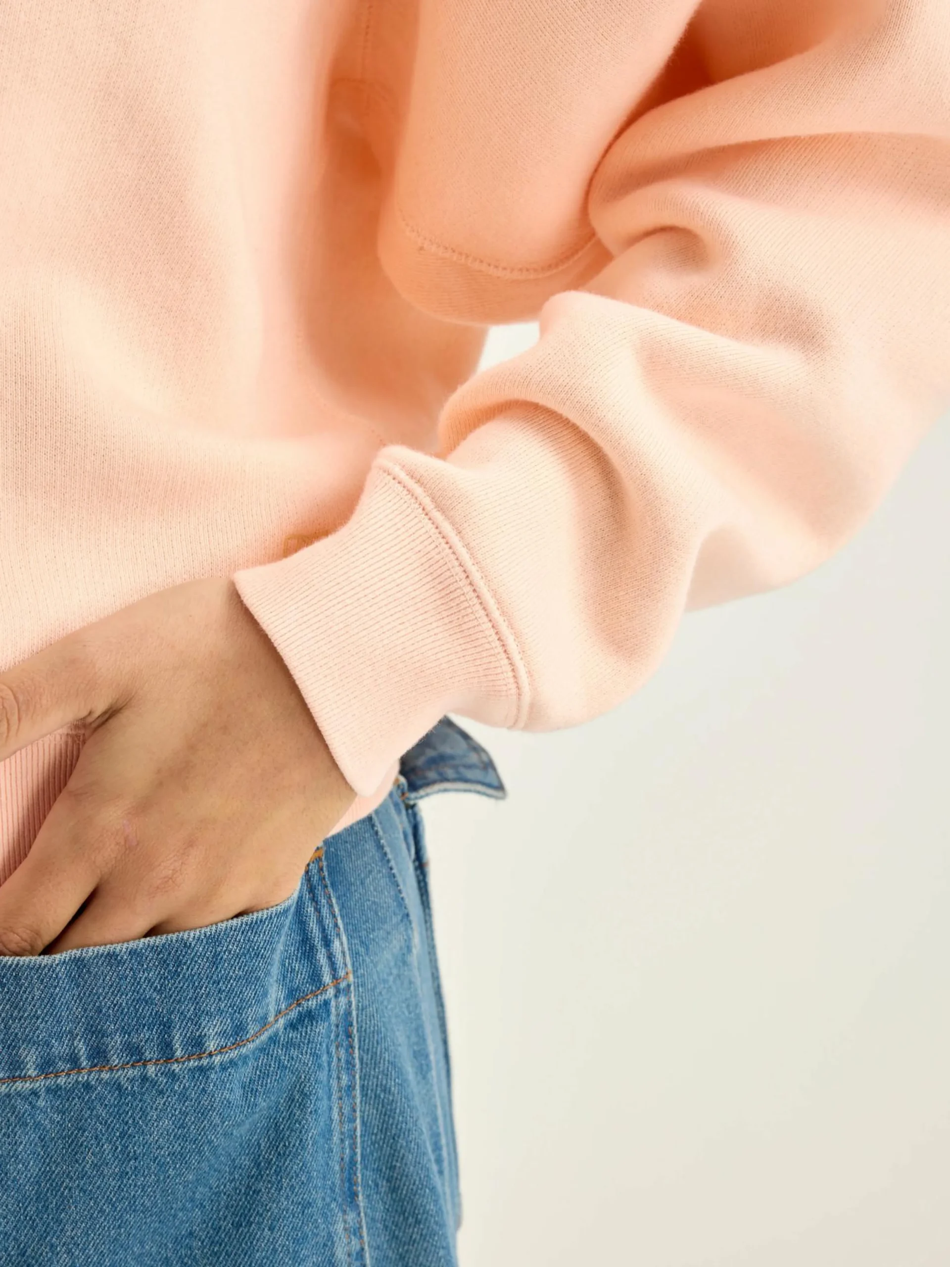 Relaxed sweatshirt van lichtroze fleecestof, met raglanmouwen.