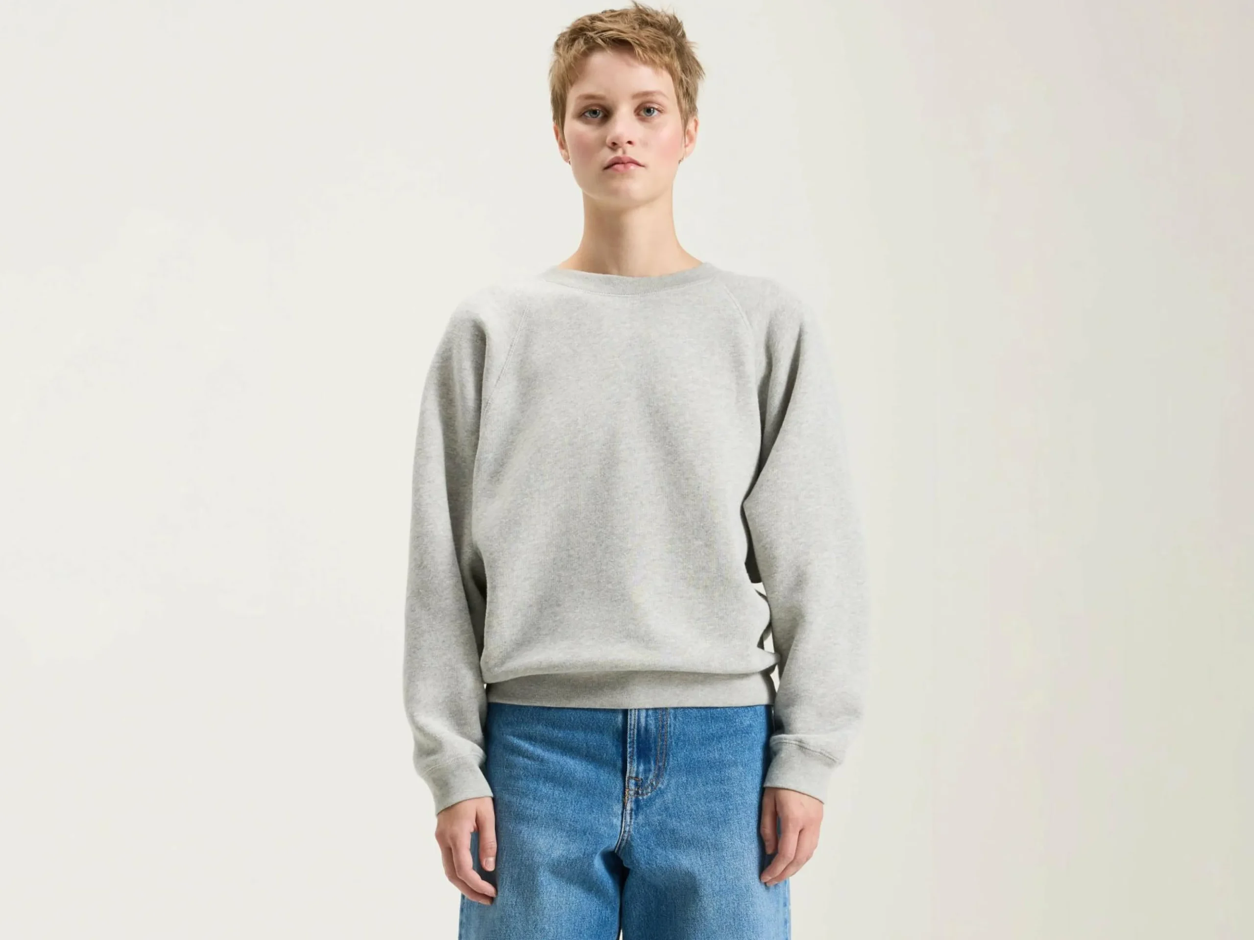 Relaxed sweatshirt met raglanmouwen in heidegrijze lichte fleece.