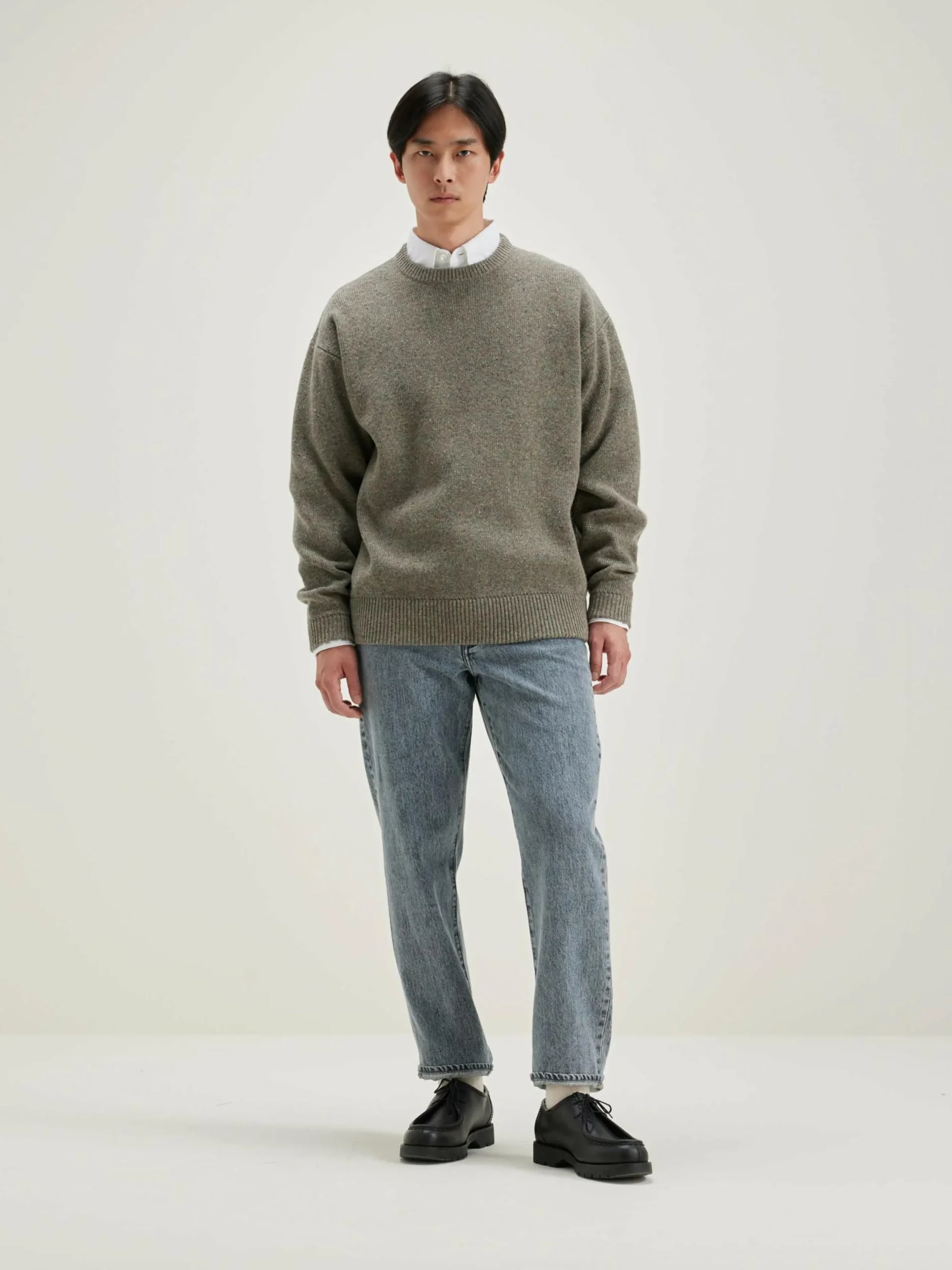 Oversizede, heidegrijze sweater met ronde hals, van merinowol.