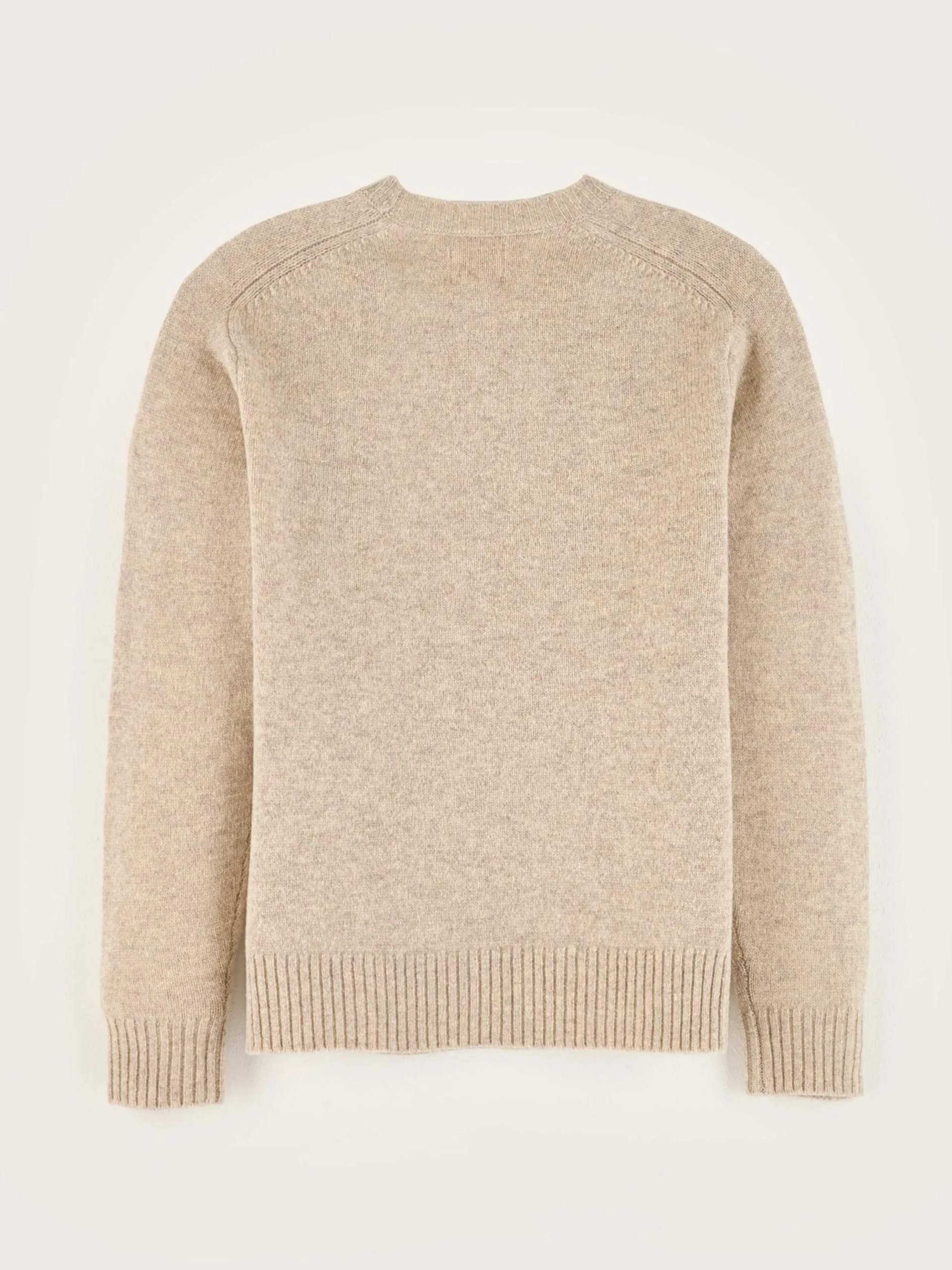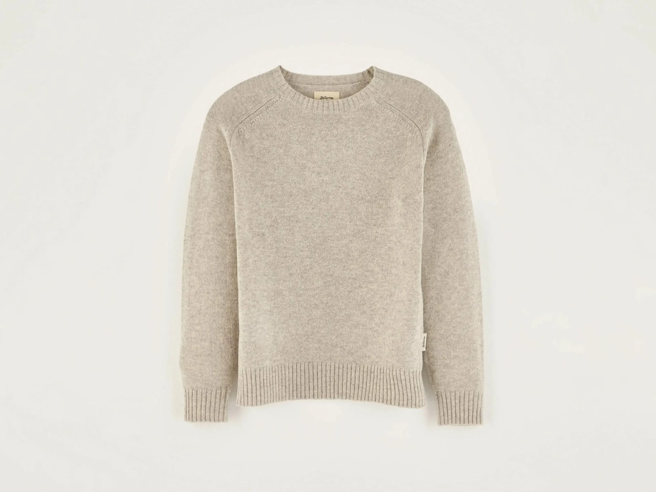 Comfortabele, klassieke sweater met ronde hals, van lichtgrijze merinowol.