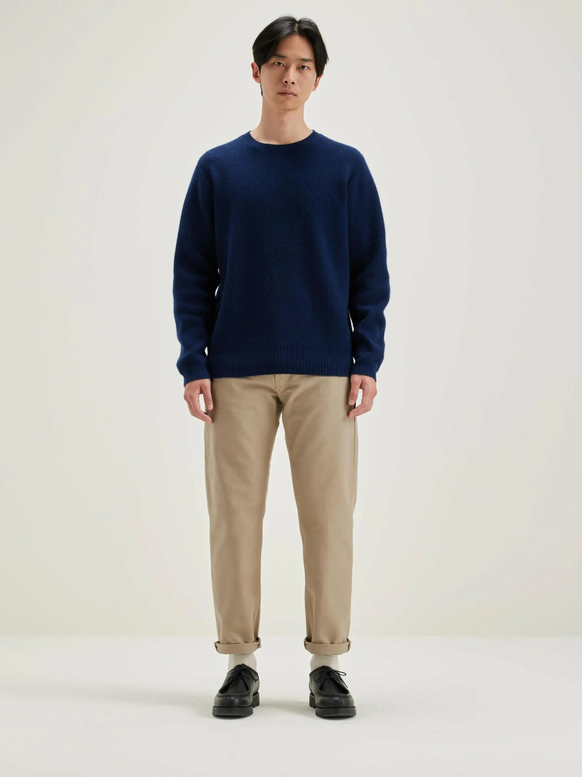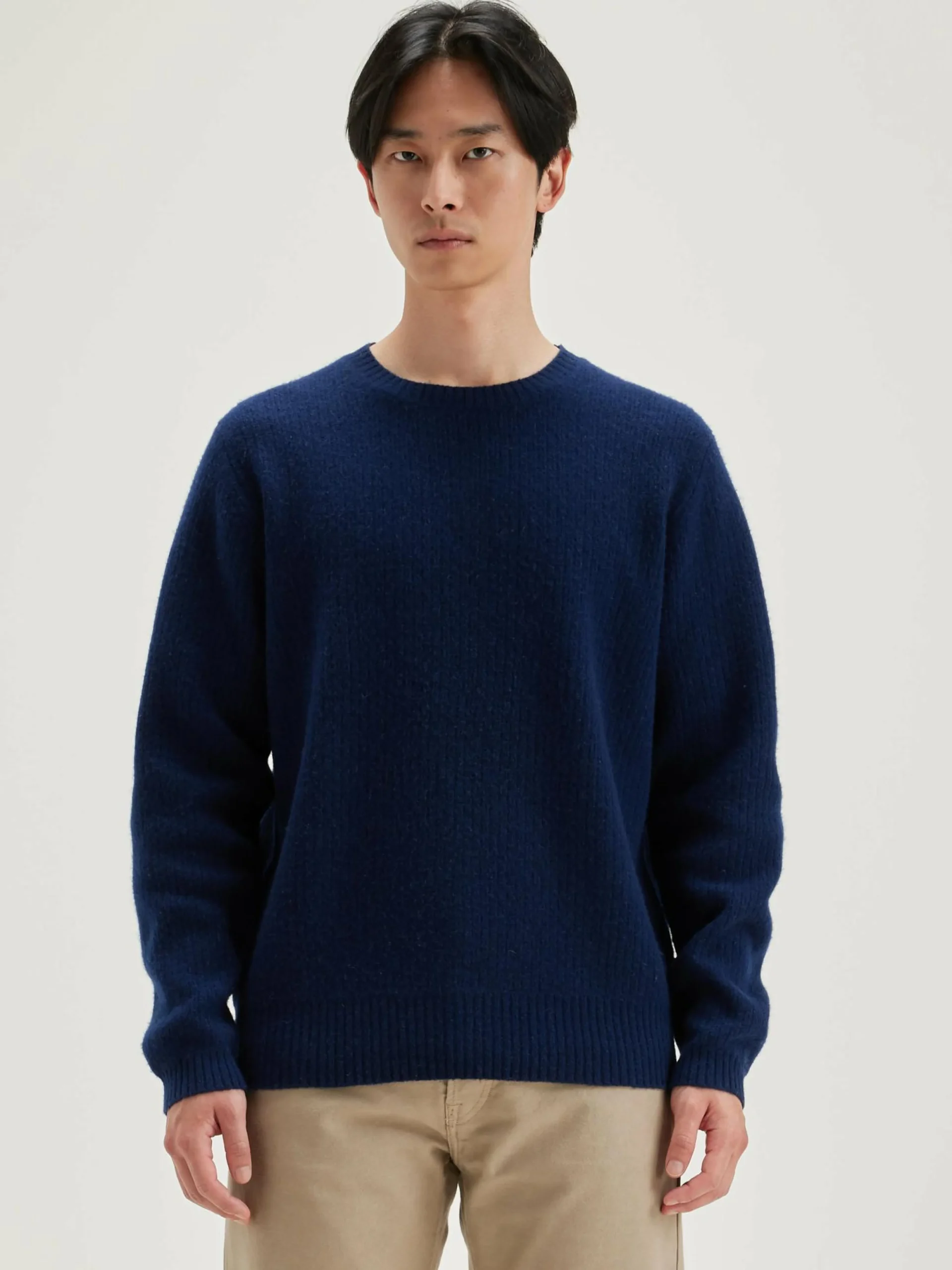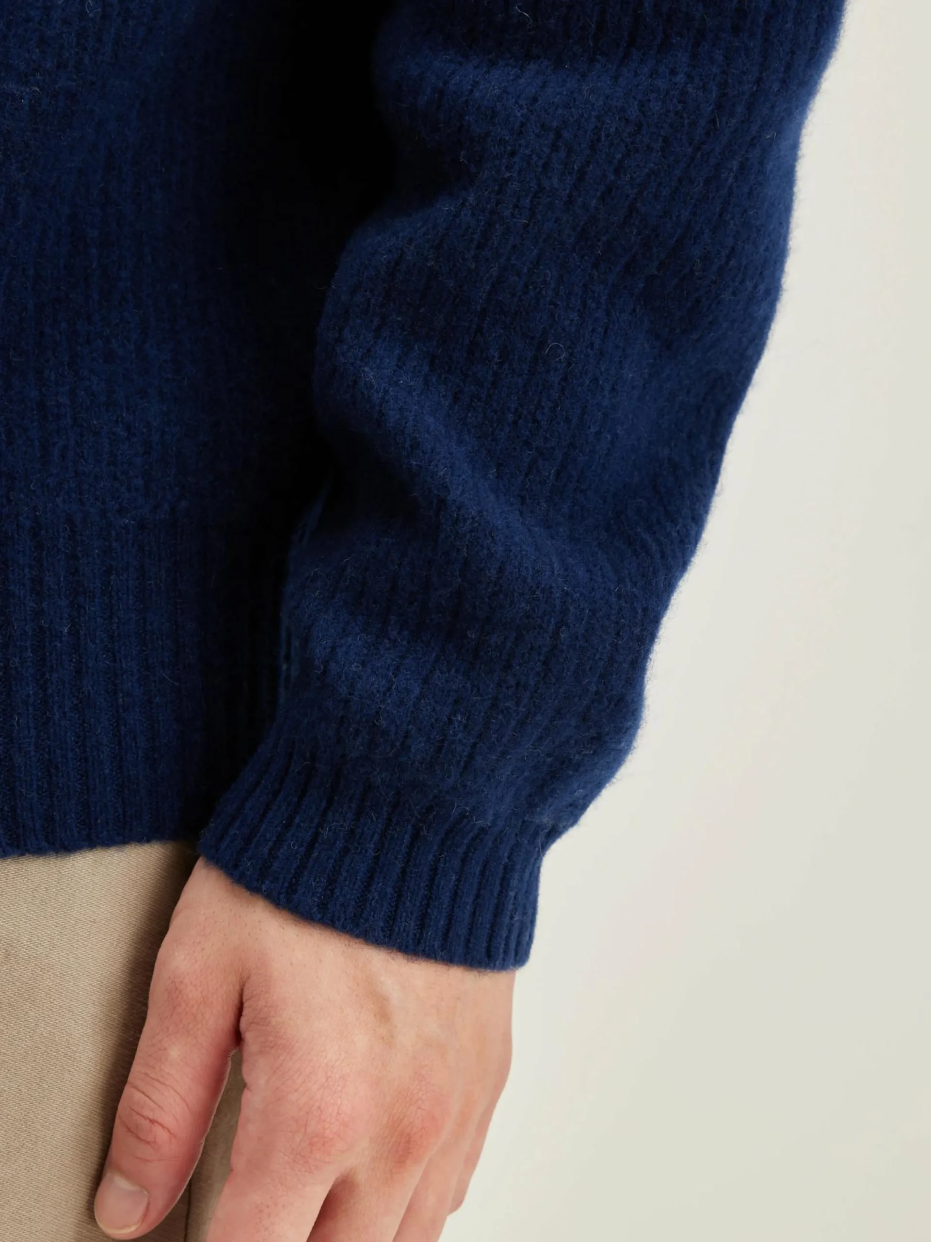 Classic fit, geribde, marineblauwe sweater van merinowol.