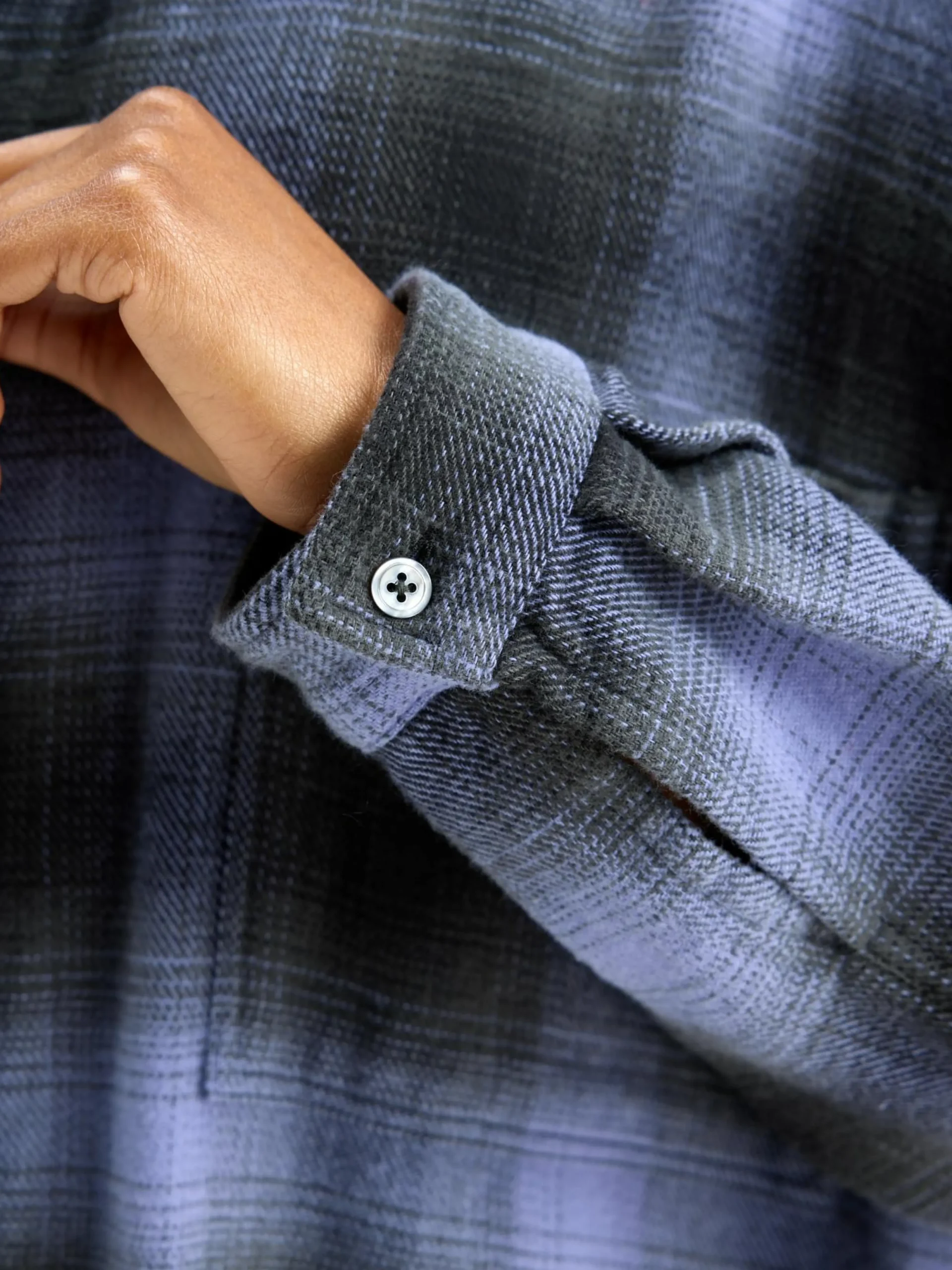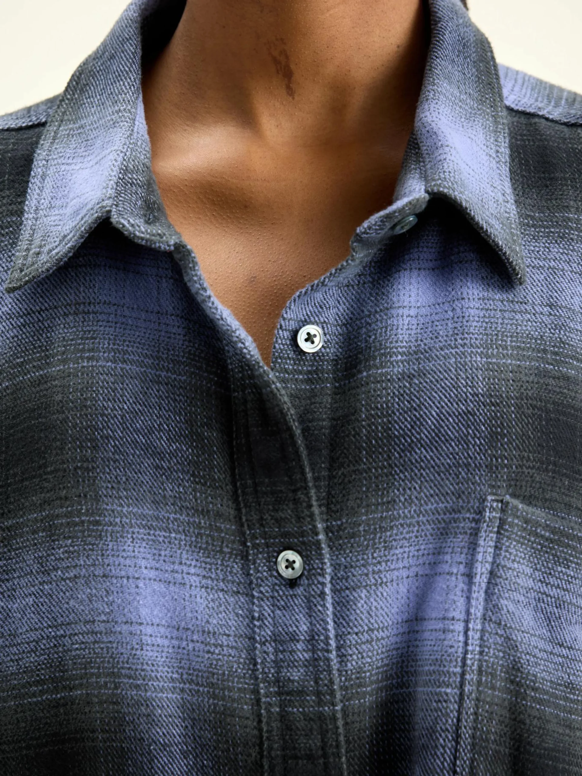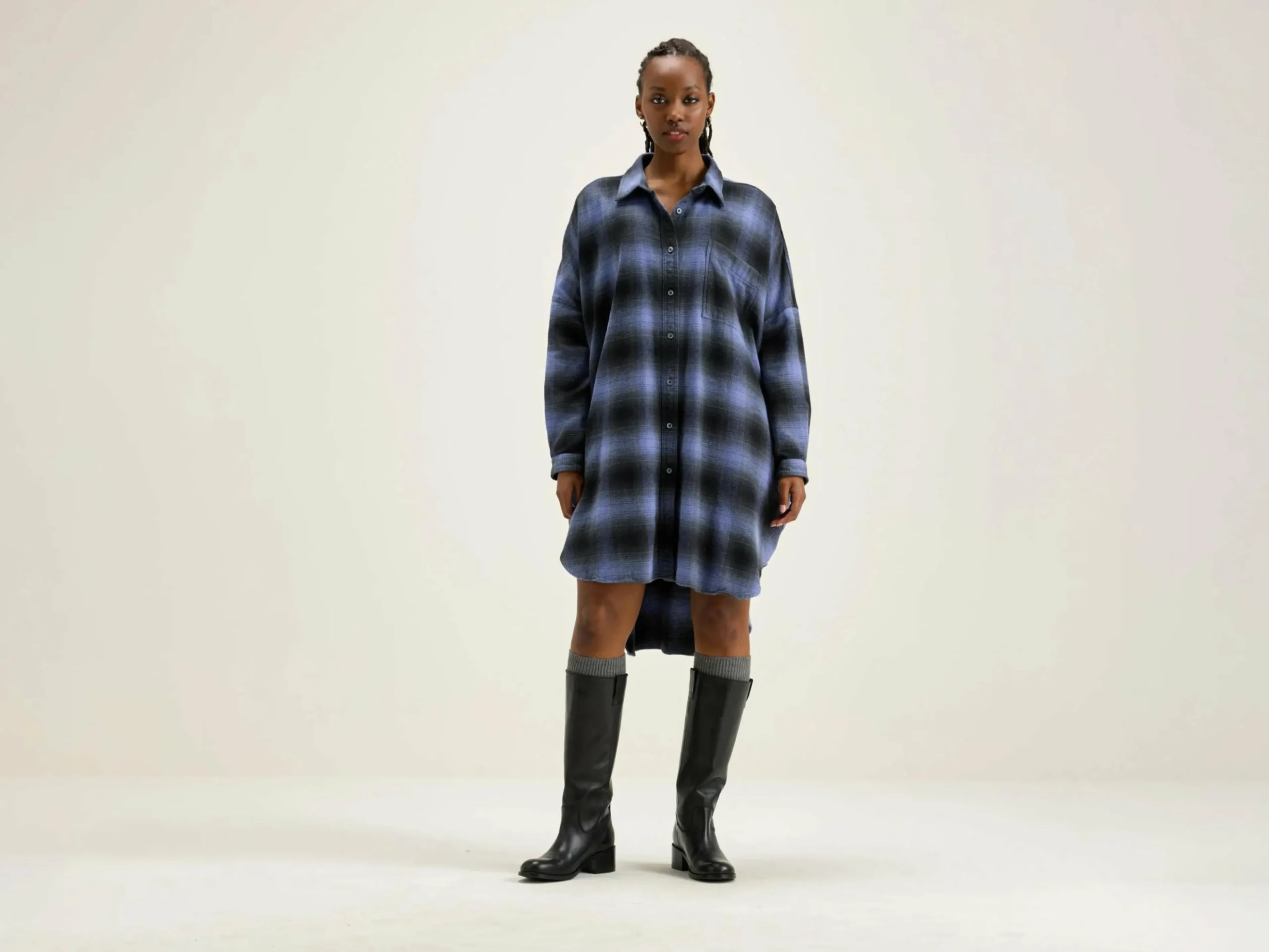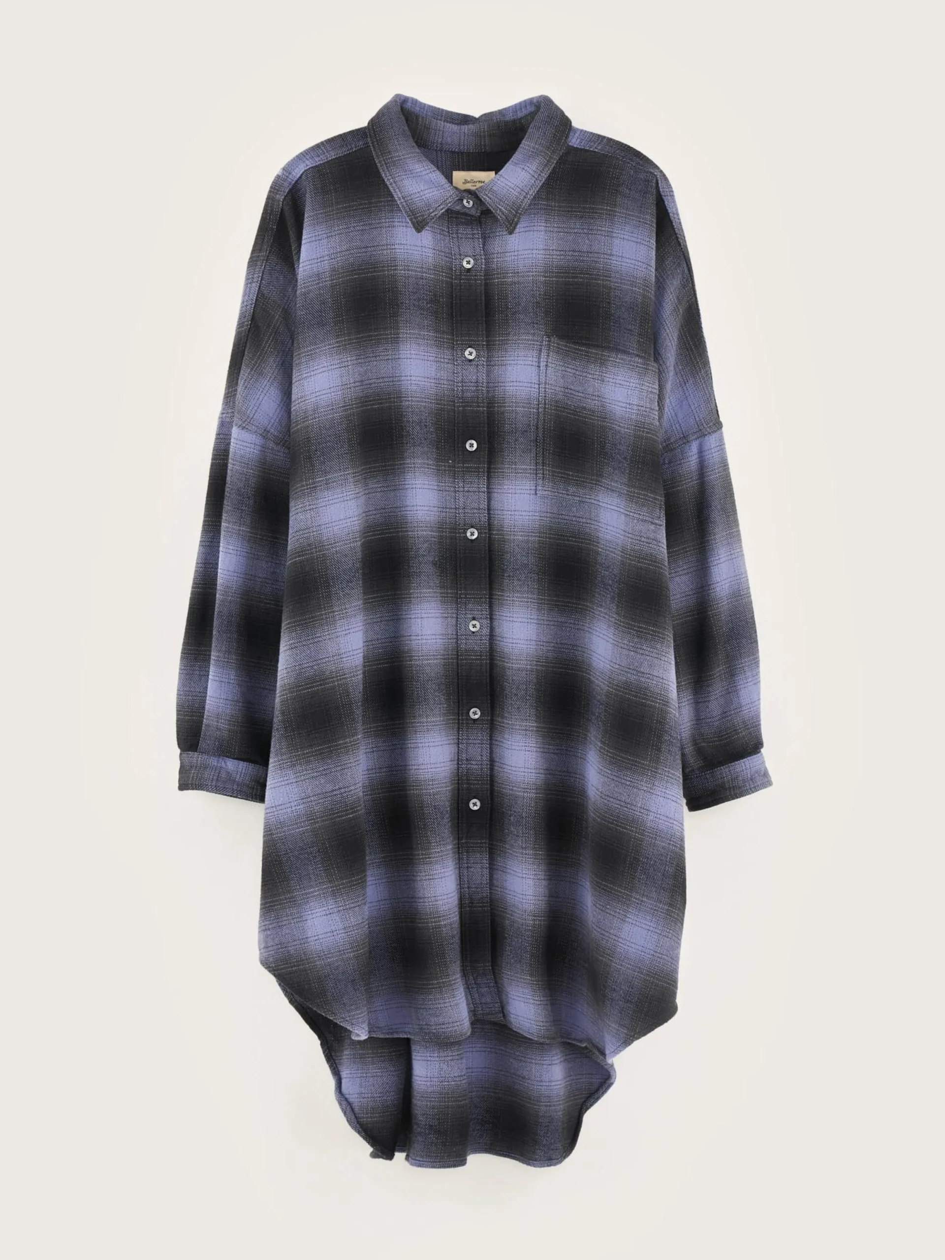 Oversizede hemdjurk van geborsteld katoen, met paars ruitpatroon met schaduw.