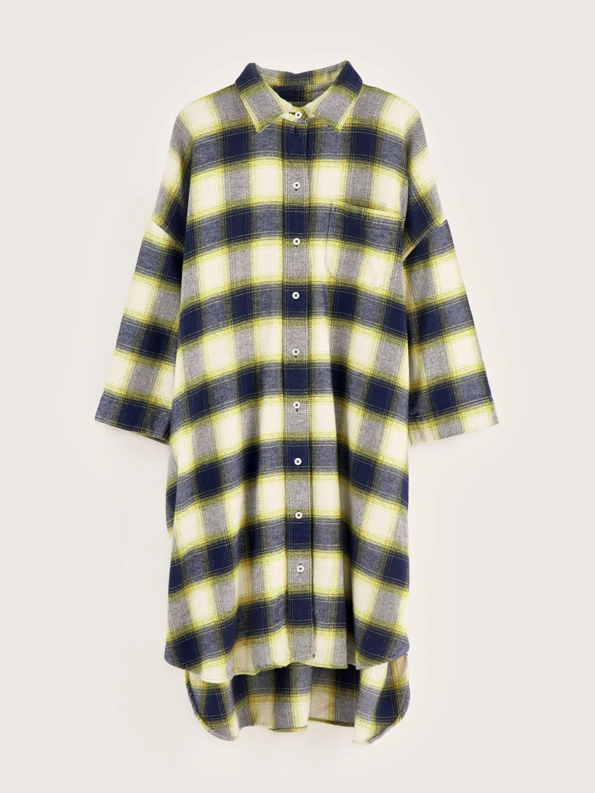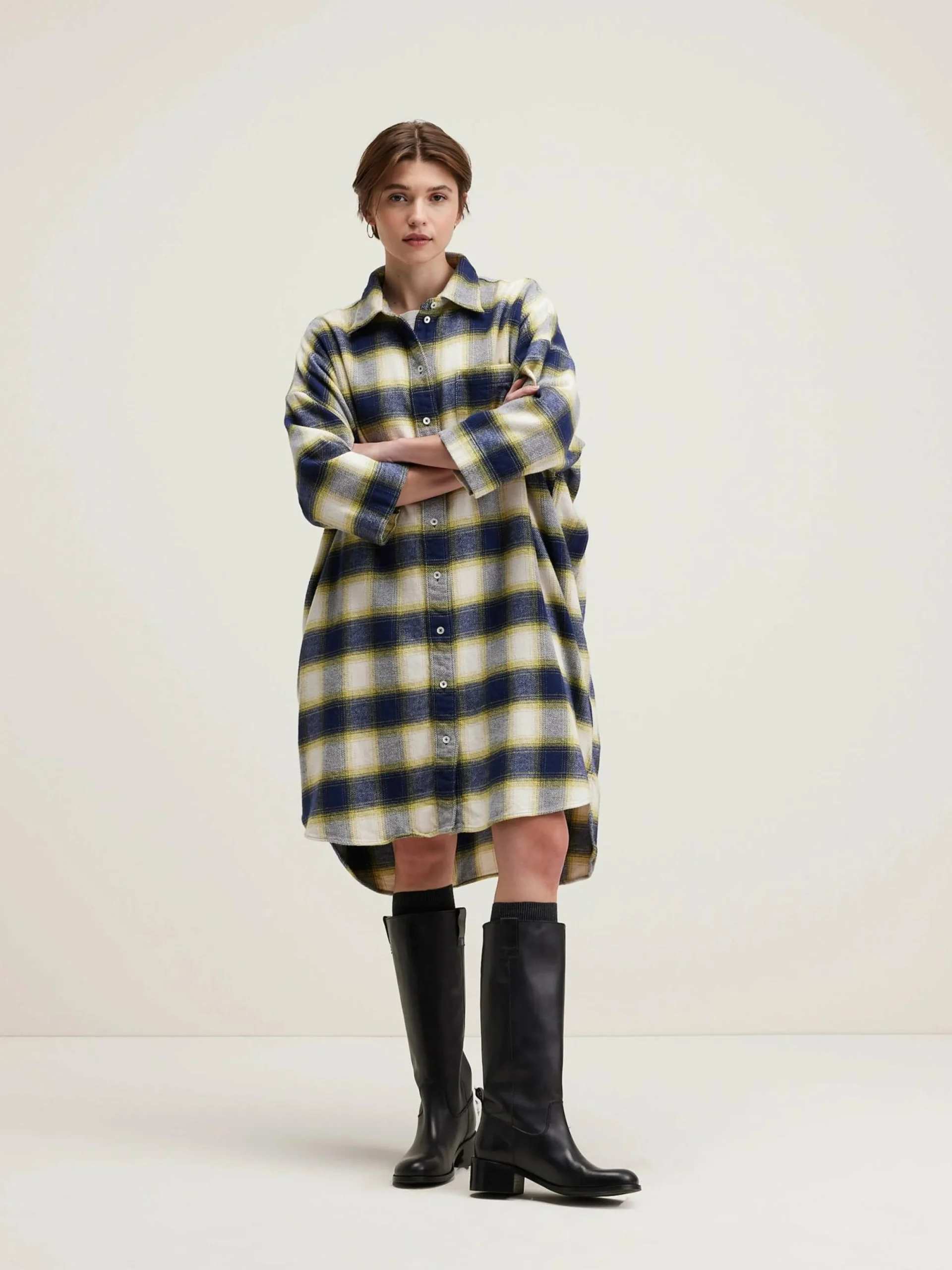 Oversizede hemdjurk van geborsteld katoen, met grijze en gele ruiten