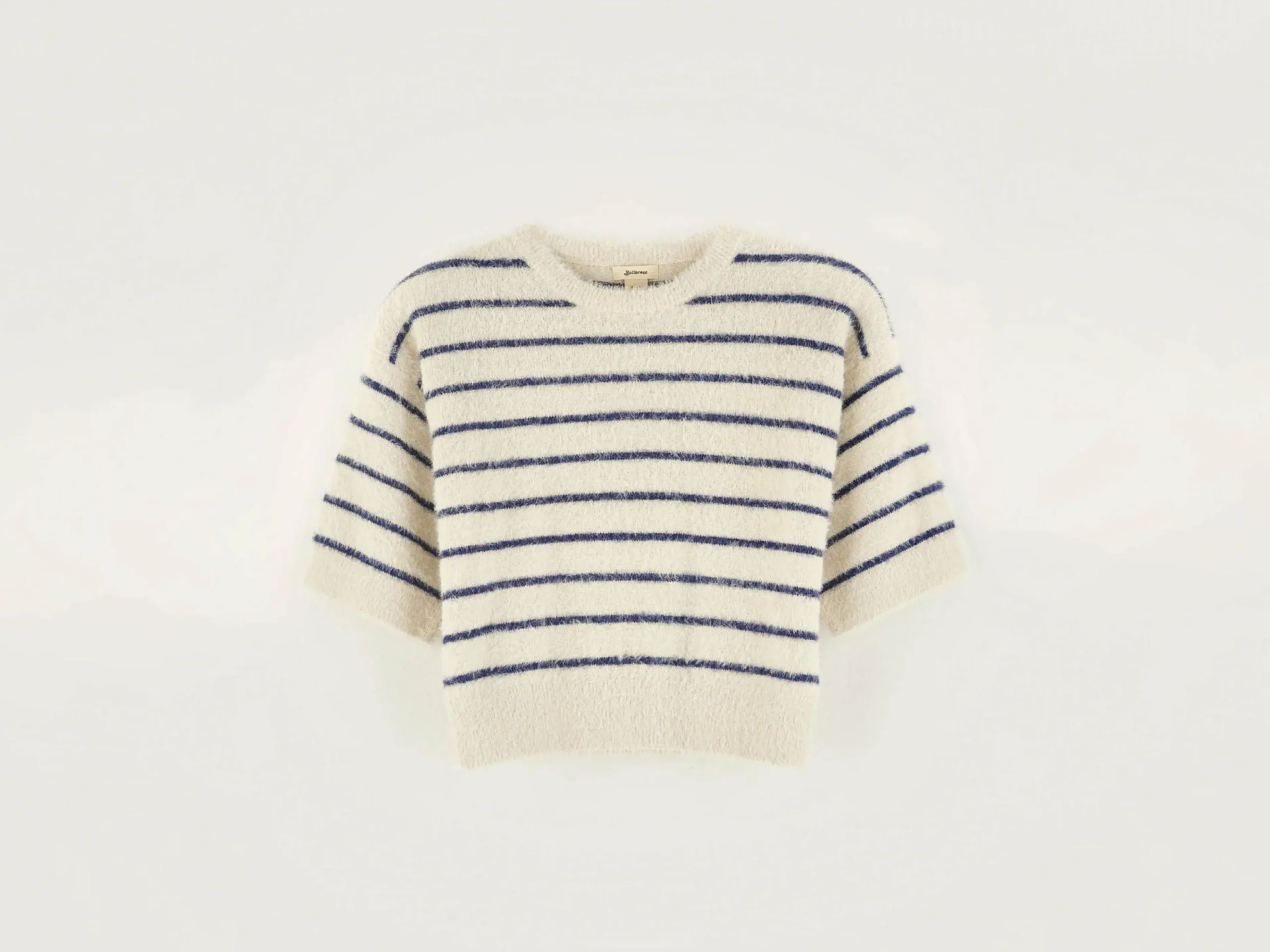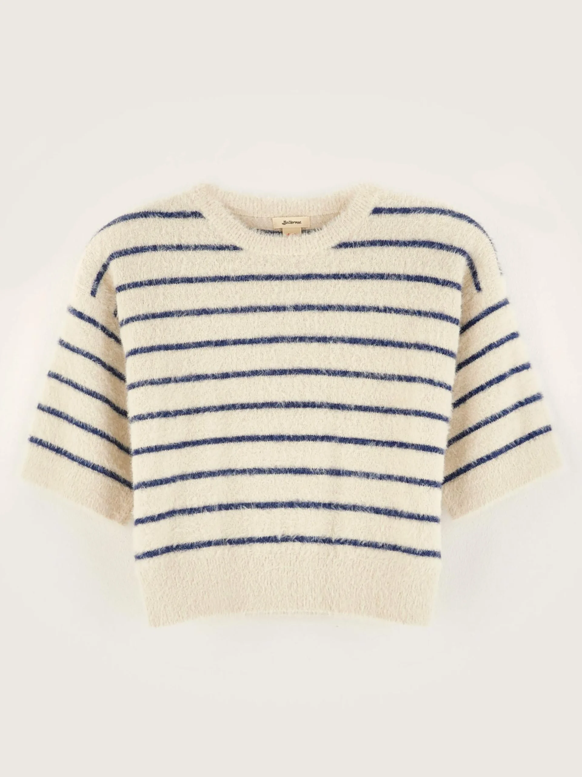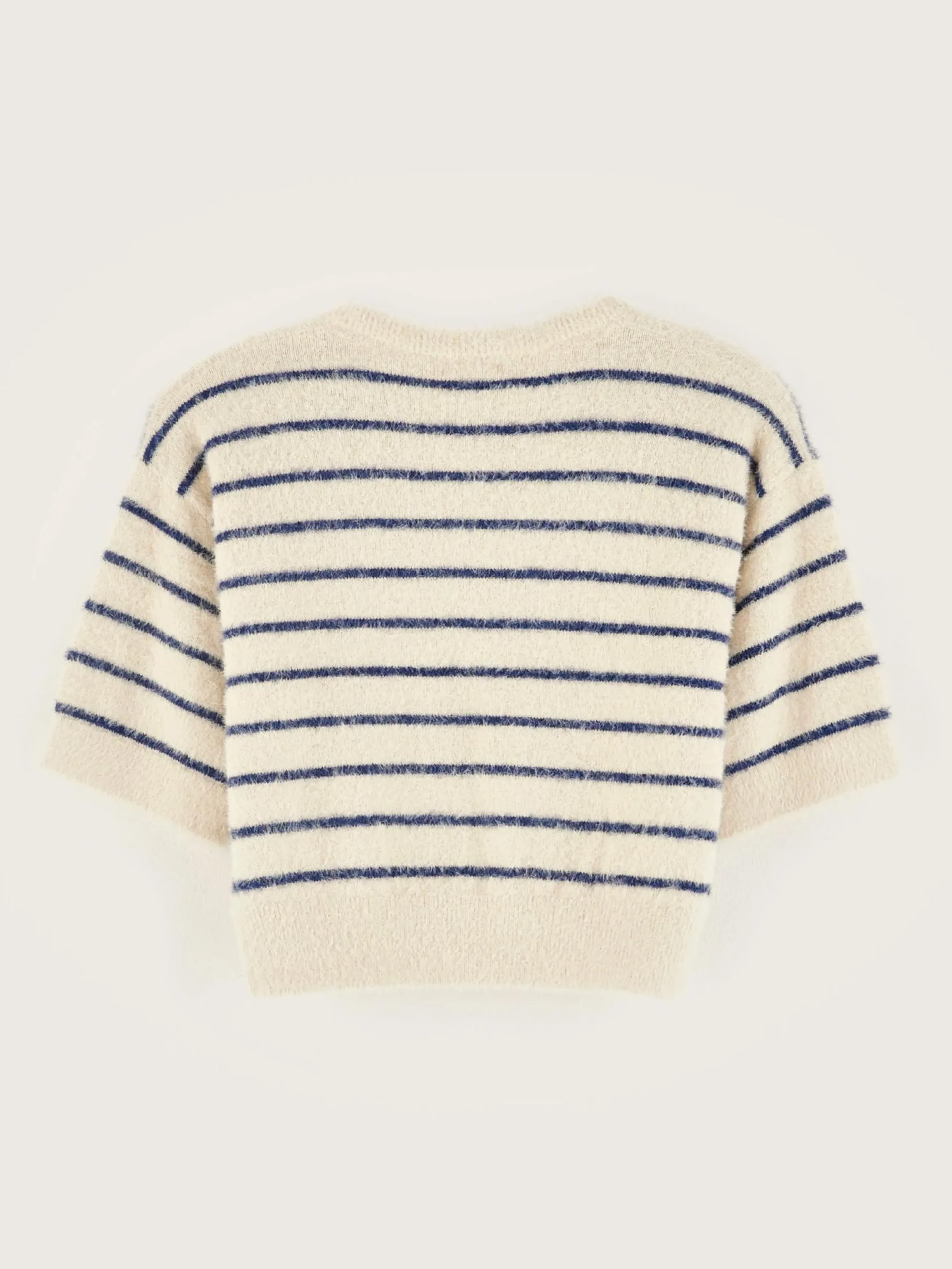 Cropped trui met korte mouwen en marinestrepen.