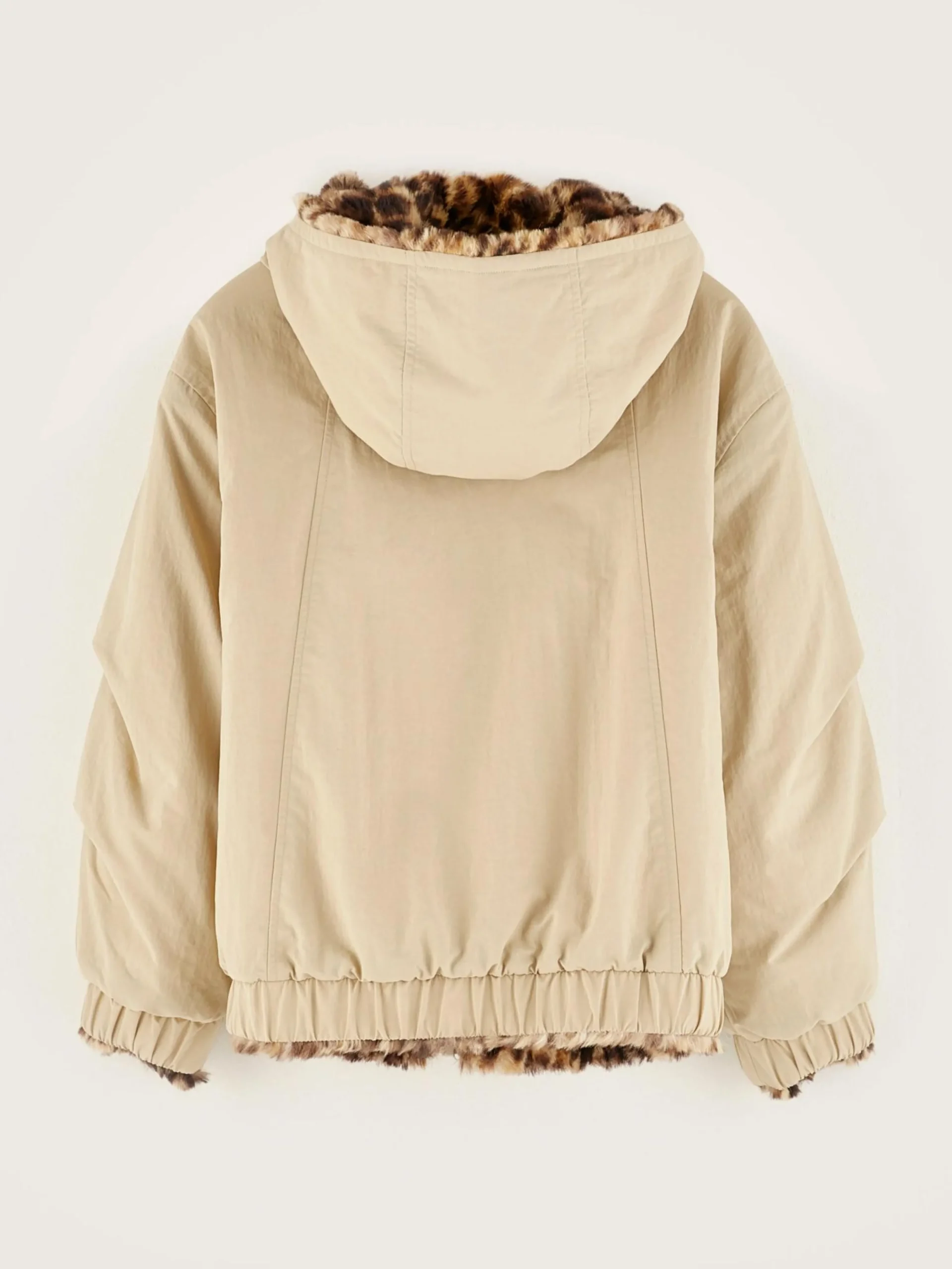 Omkeerbaar bomberjack in ecru met voering van imitatiebont.