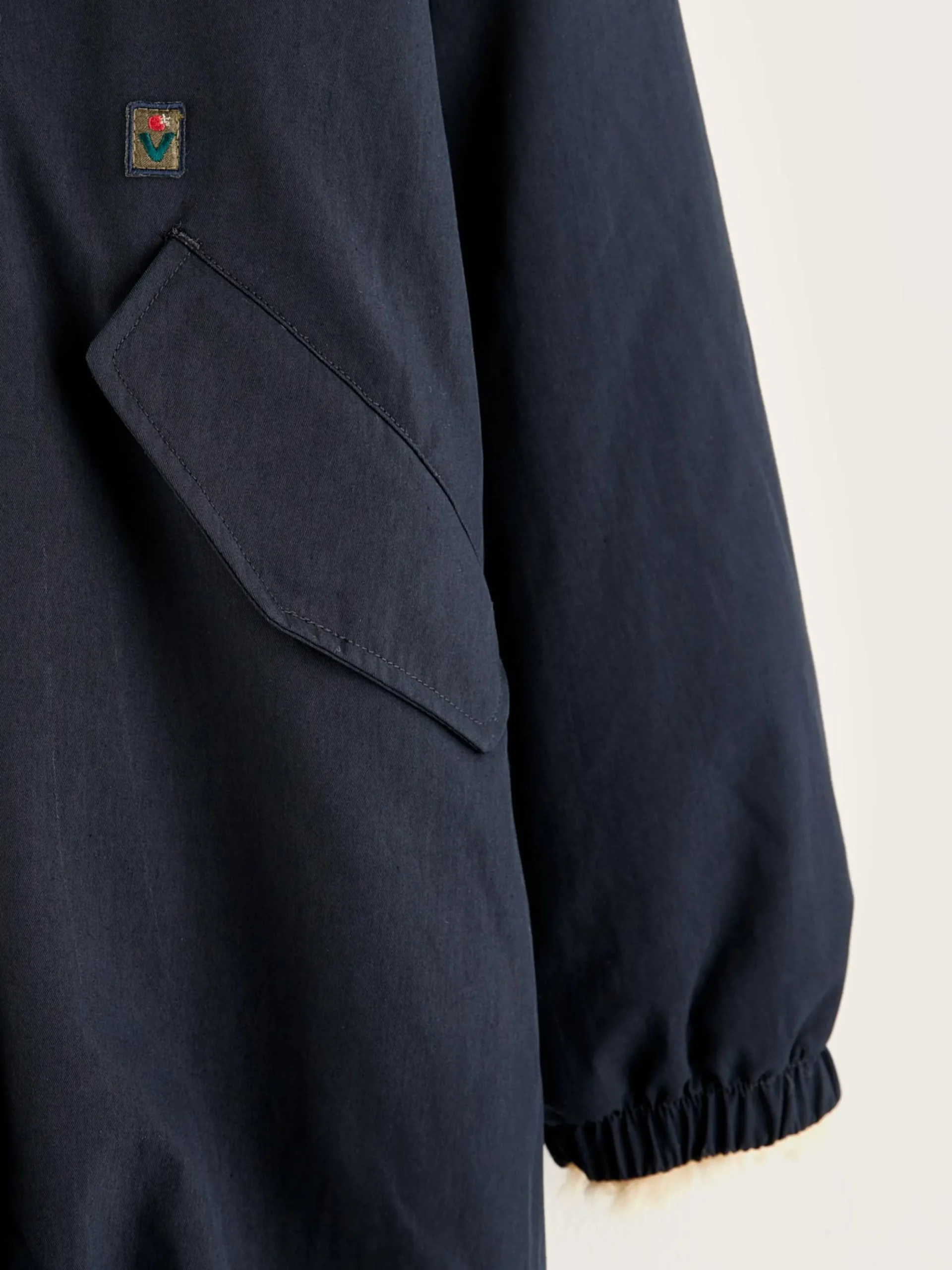 Oversized parka met capuchon in marineblauw met voering van imitatiebont.
