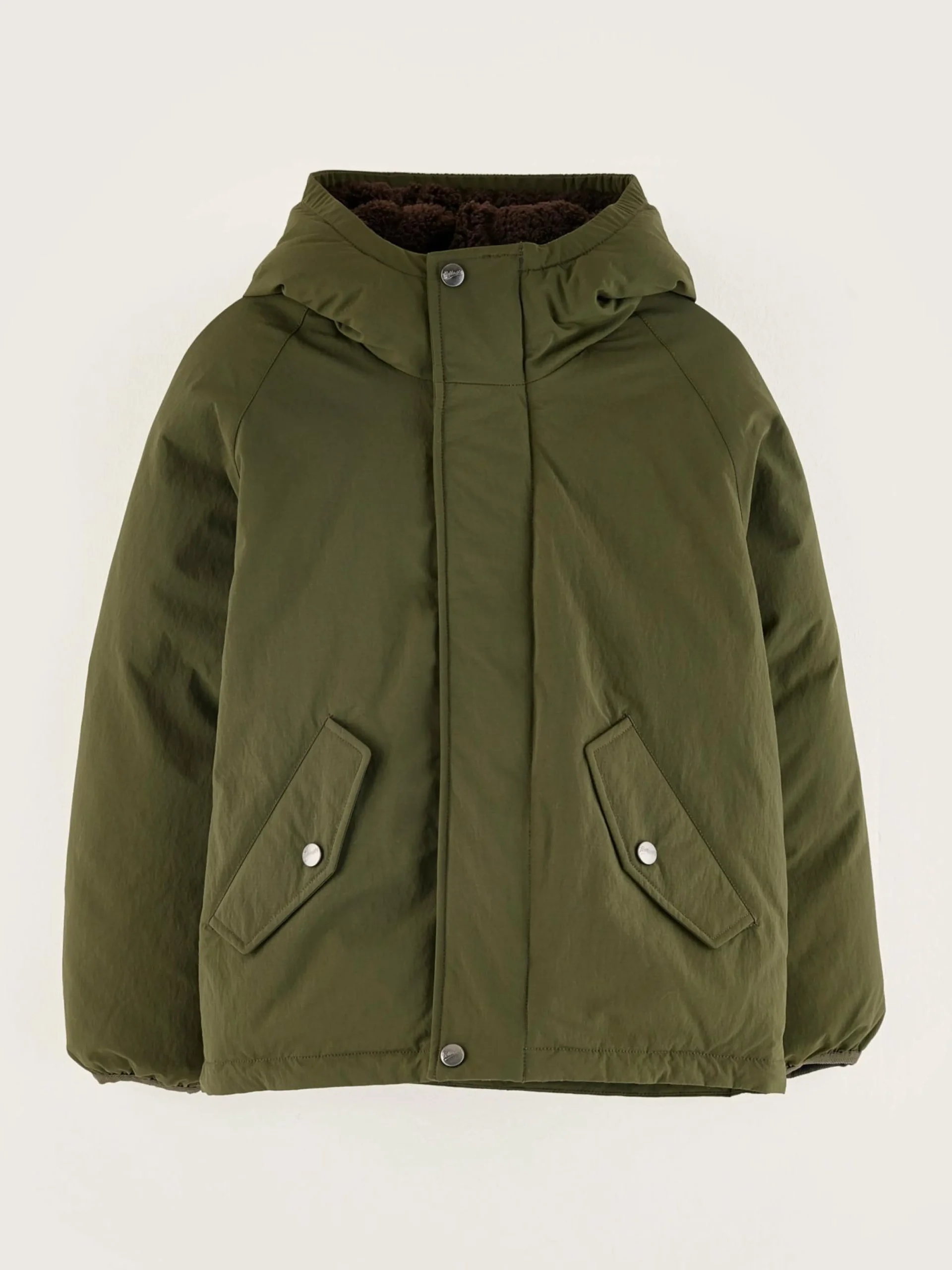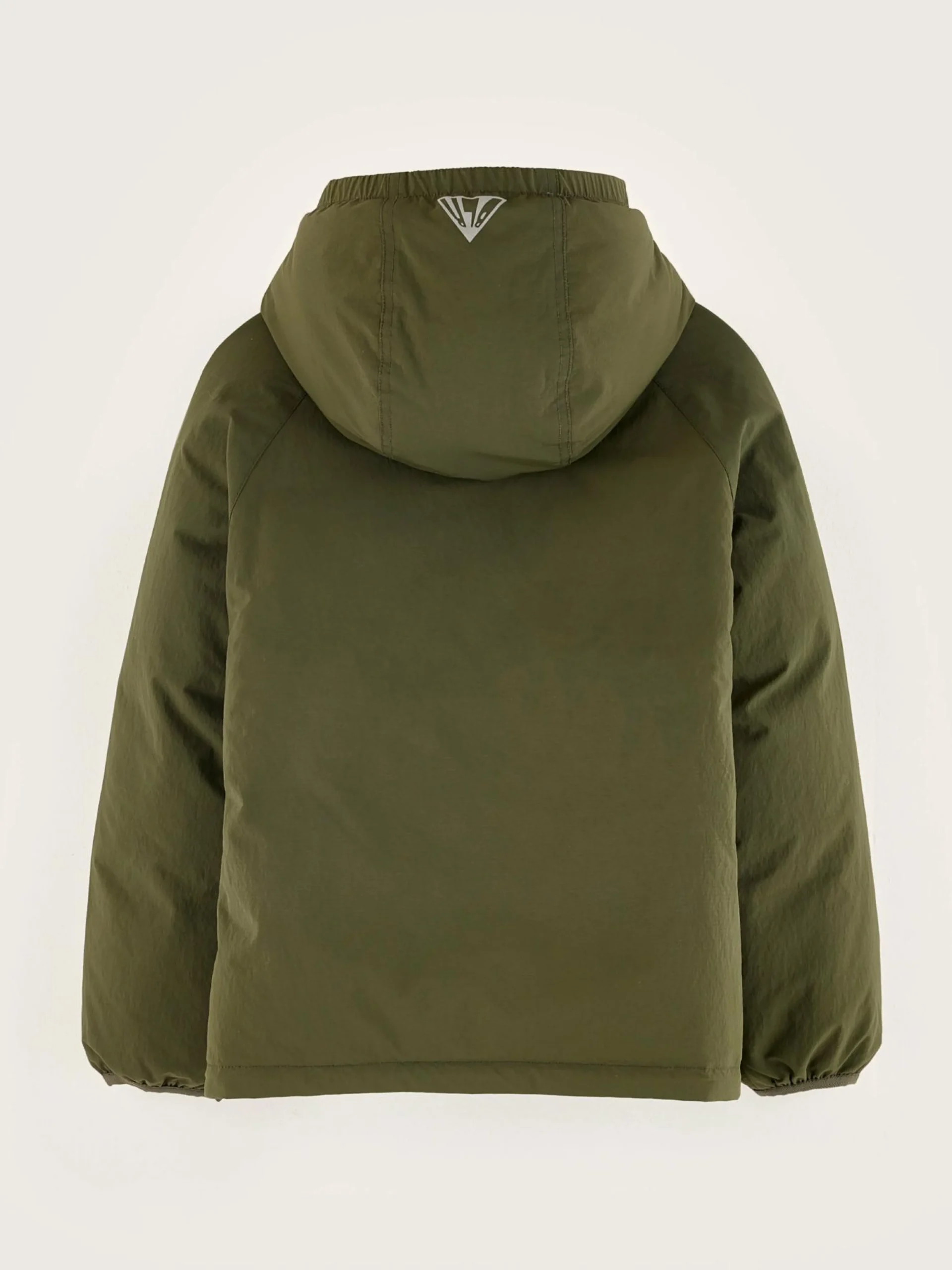 Klassieke, mosgroene parka met een rechte pasvorm, capuchon en raglanmouwen.