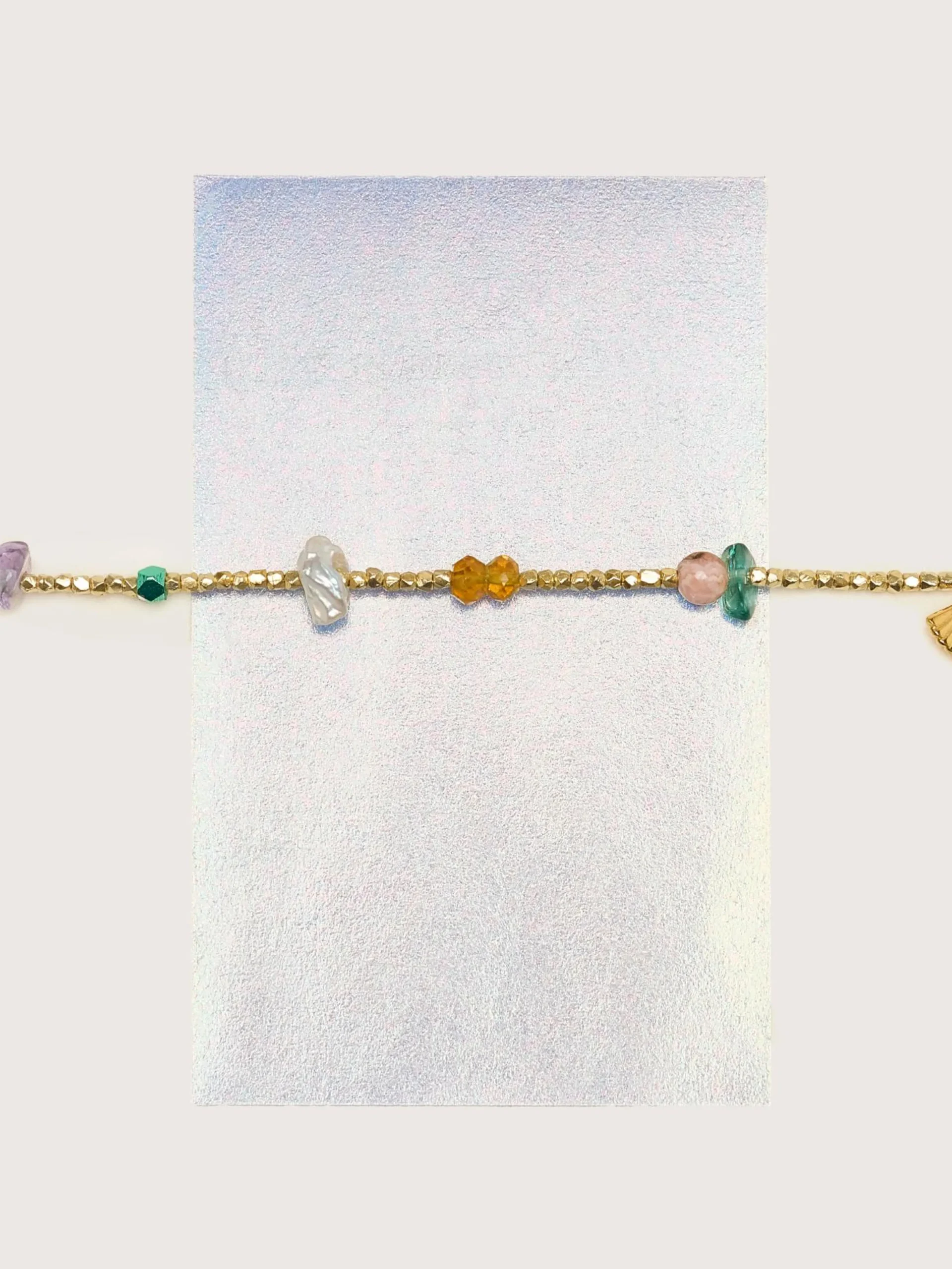 De Blondi armband is een handgemaakte, verstelbare gevlochten armband versierd met kleurrijke edelstenen, kralen en bedels.