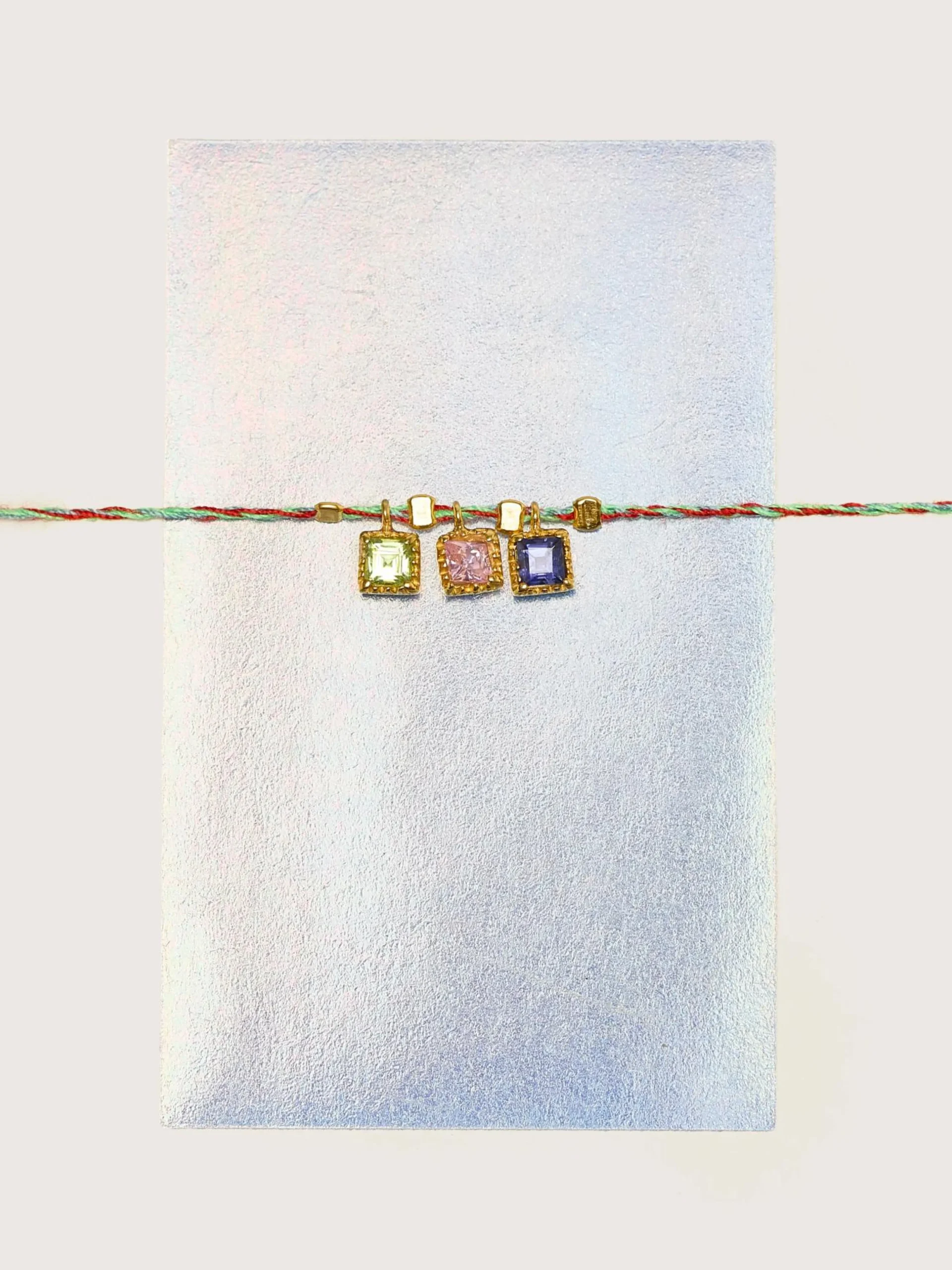 De Sage armband is een handgemaakte verstelbare vlecht van fijn koord versierd met toermalijn facet bedels gezet in verguld zilver.