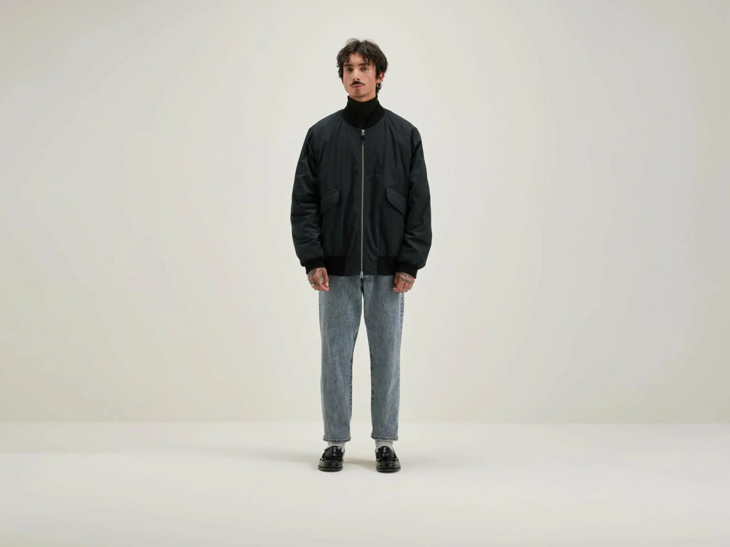 Oversizede jas in bomberstijl, met raglan mouwen en ritssluiting, van zwart canvas katoen.