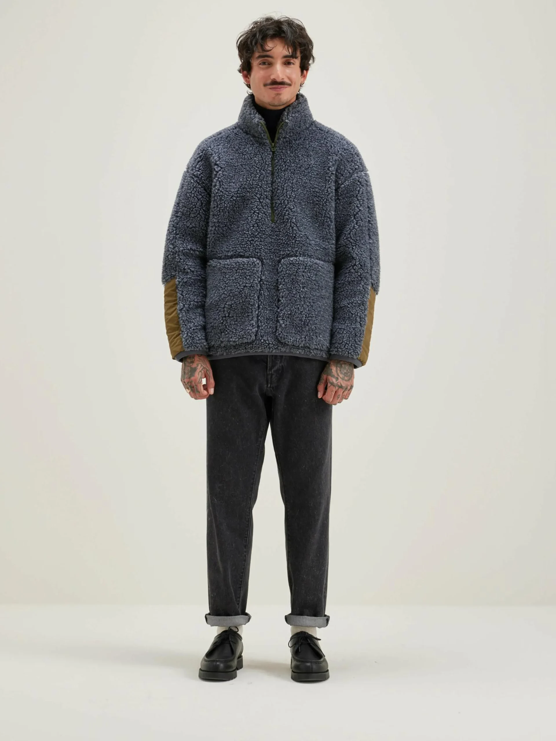 Comfortabele sweatshirt met opstaande kraag en halve ritssluiting, van chiné antracietkleurige teddy.