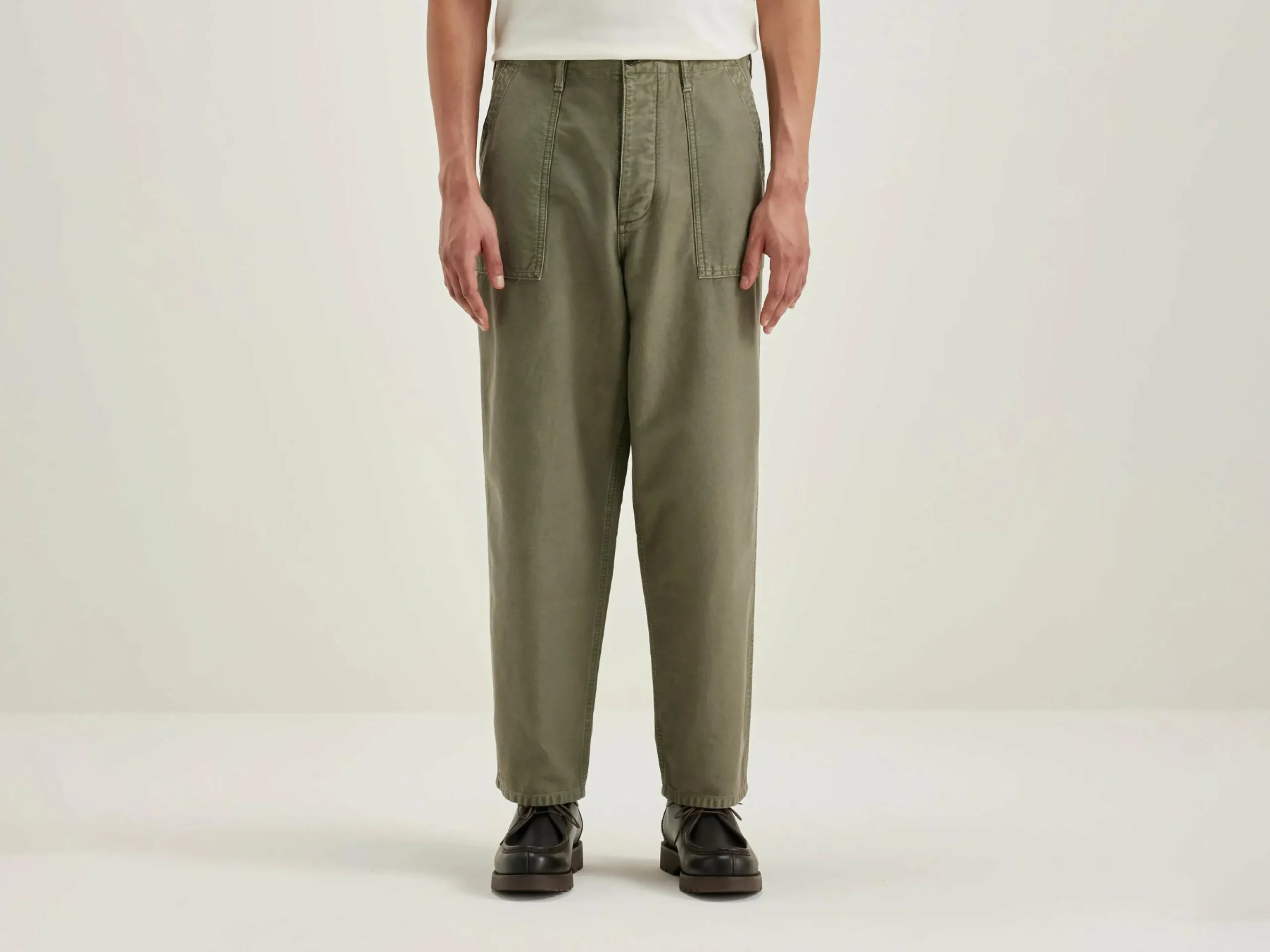 Relaxede broek in fatigue-stijl, van olijfgroen katoencanvas.