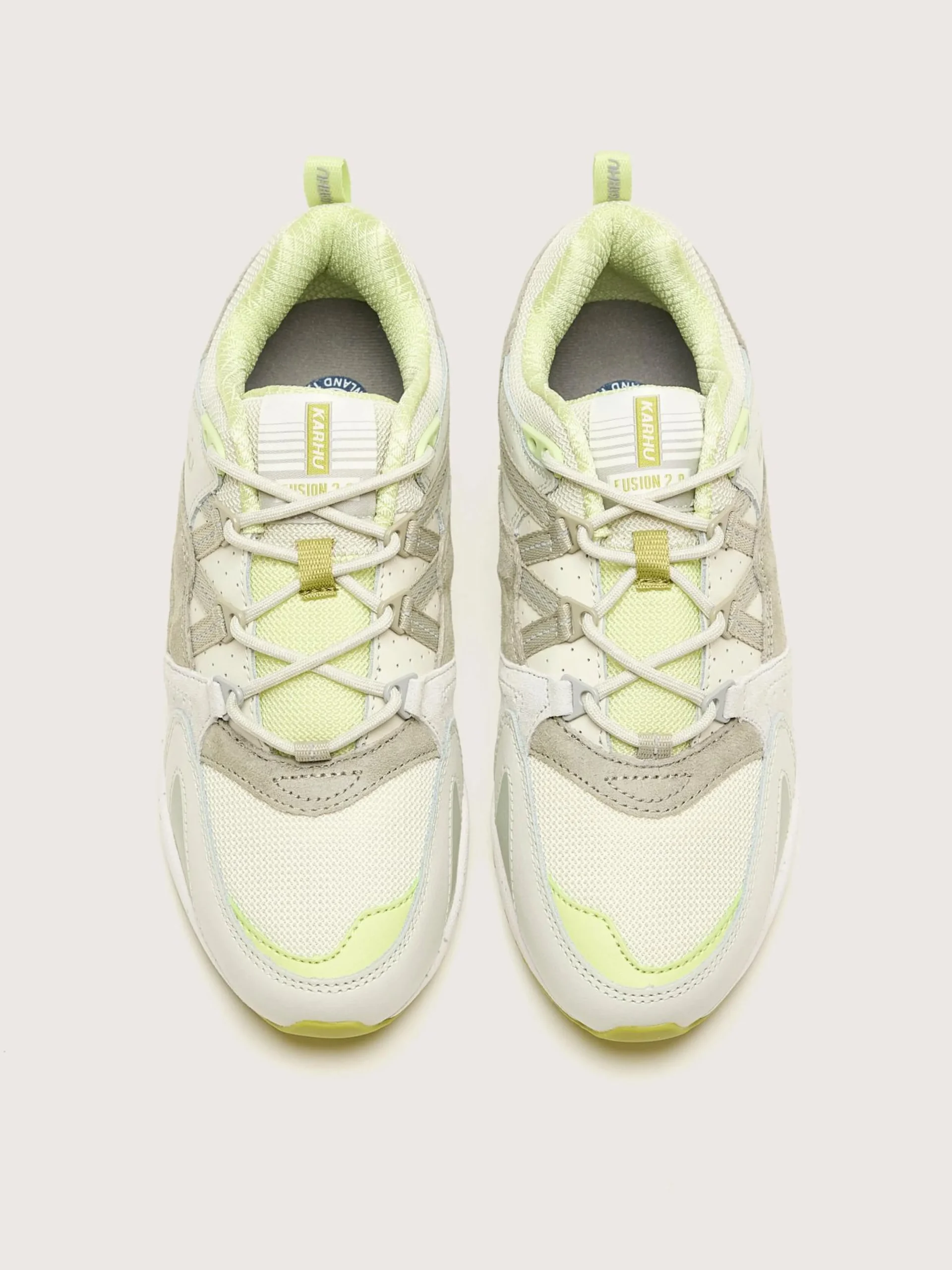 De Karhu Fusion 2.0 lifestyle sneakers hebben een bovenwerk van lederen, suède en waterafstotend mesh met iconische ontwerpdetails.