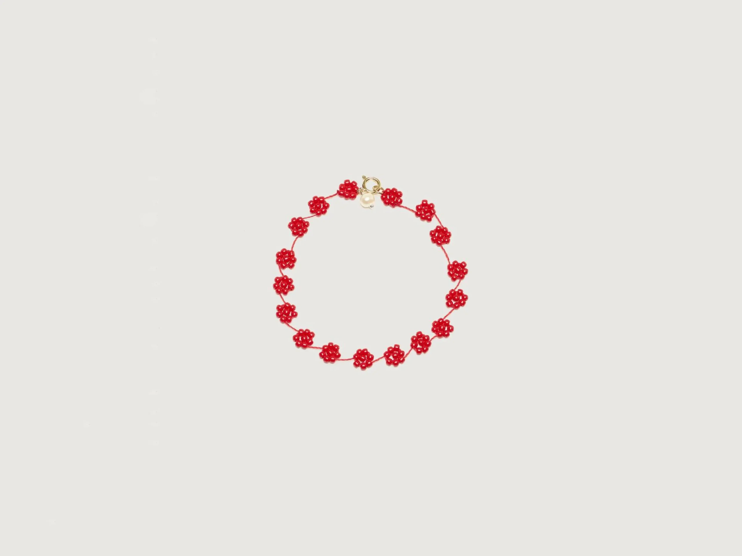 De prachtige Labro Fiori armband heeft glaskralen op een duurzaam nylondraad met een stevige sluiting.