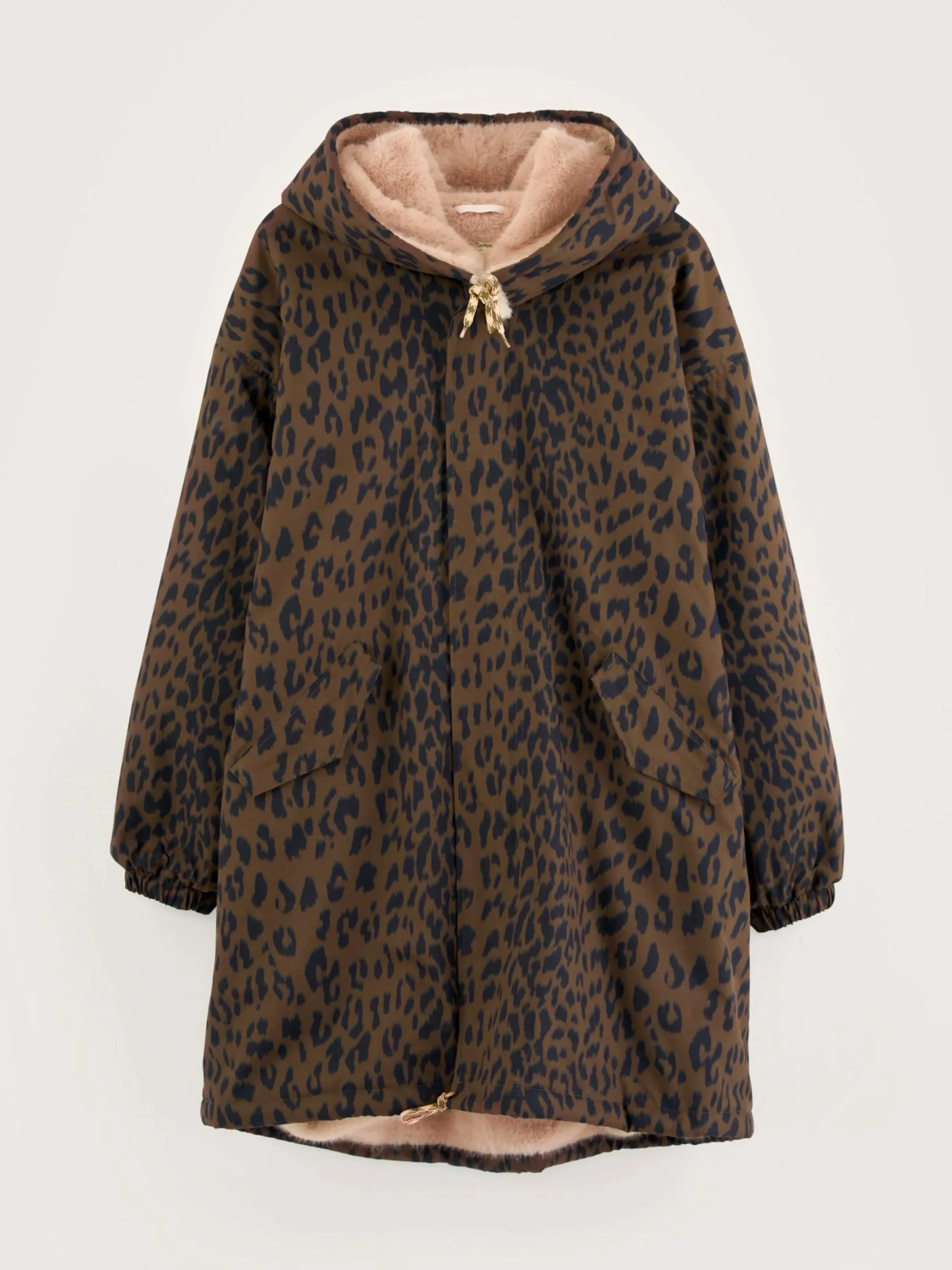 Oversizede parka met luipaardprint, van canvas met voering van nepbont.