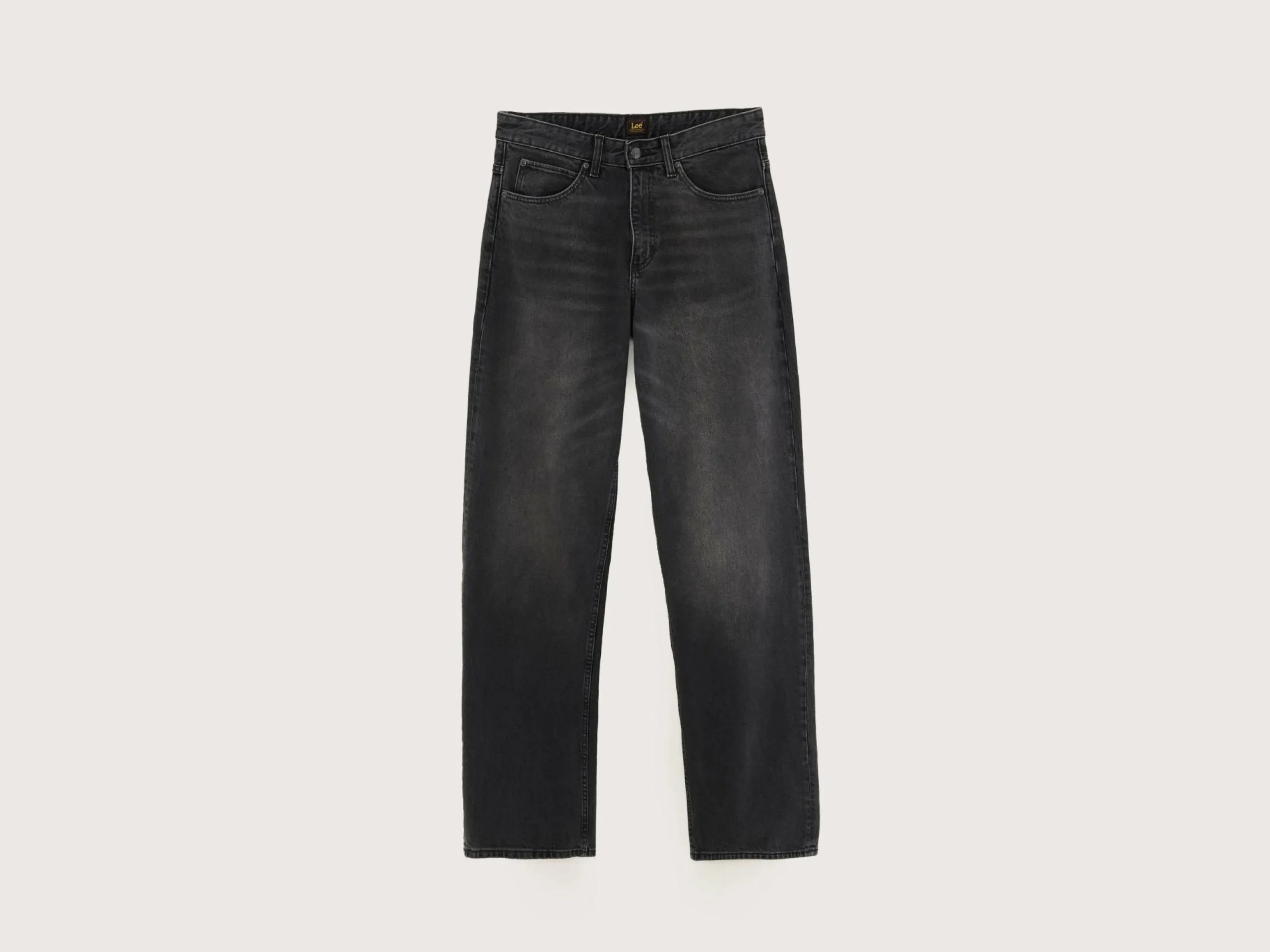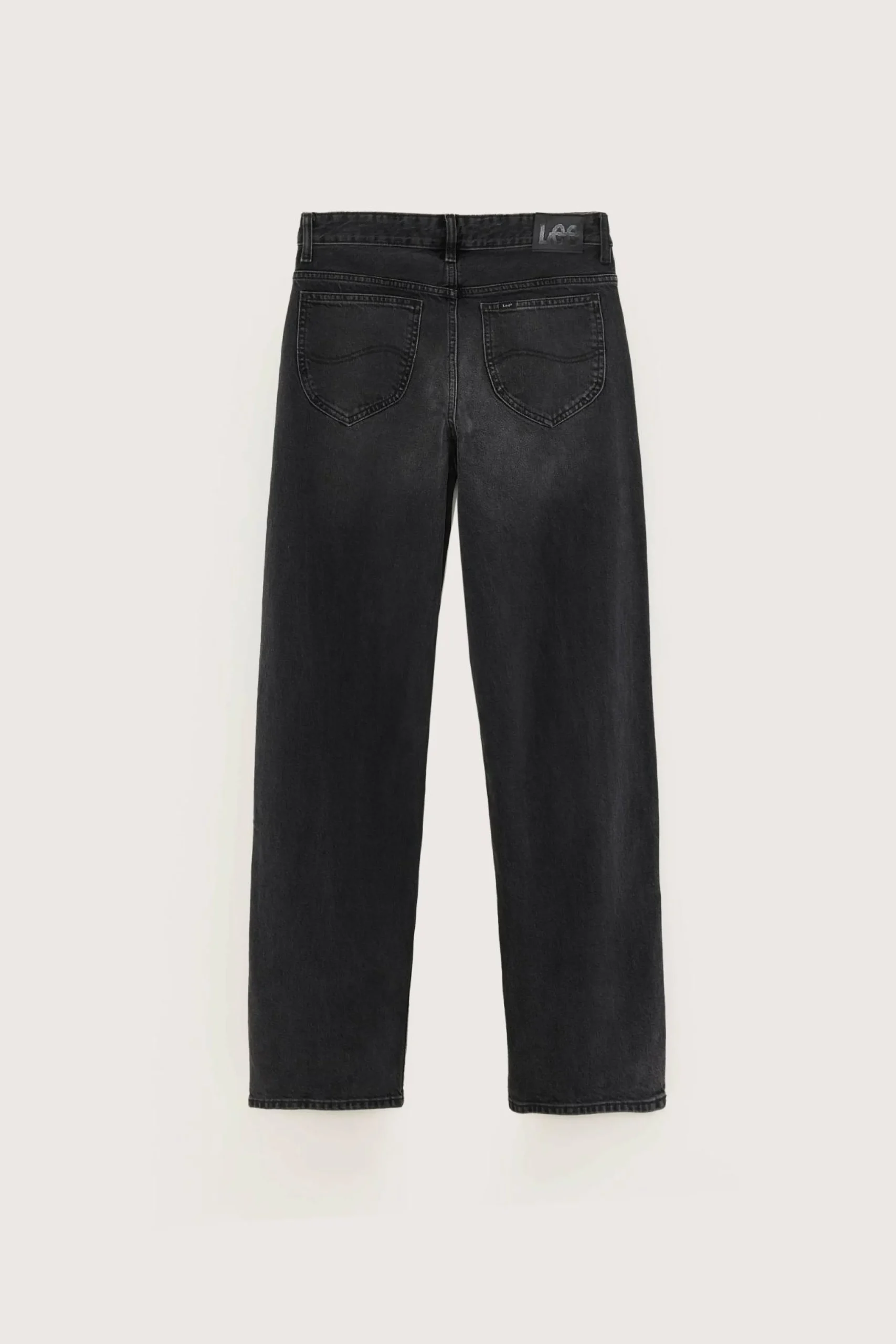 The Lee Rider Loose jeans feature a low-stretch cotton-lyocell blend in Charred Black with a loose fit.