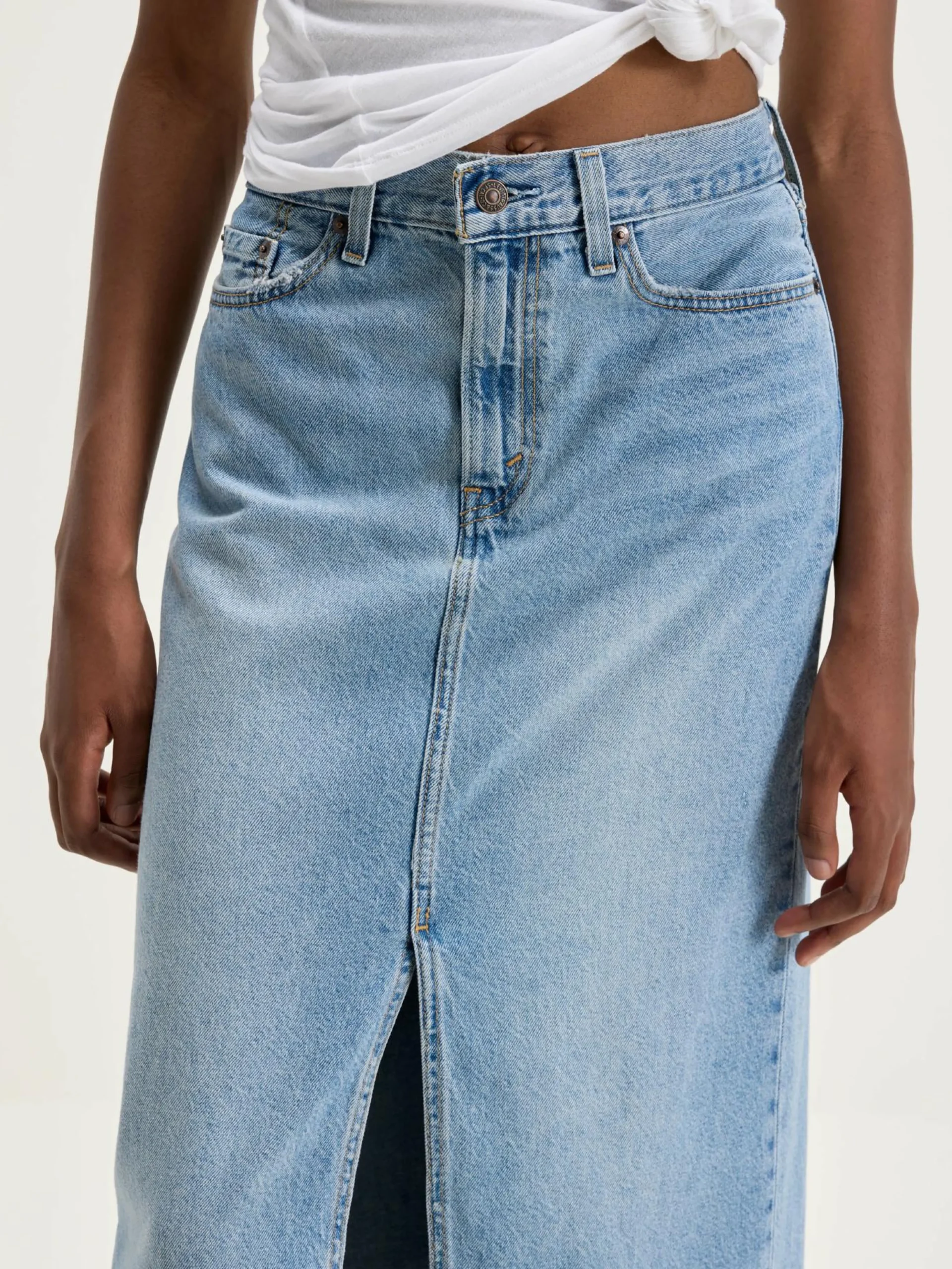 Levi’s® Ankle Column rok is een chique, een beetje jaren 90, midi rok met een midi-lengte taille en een speelse split in het midden.