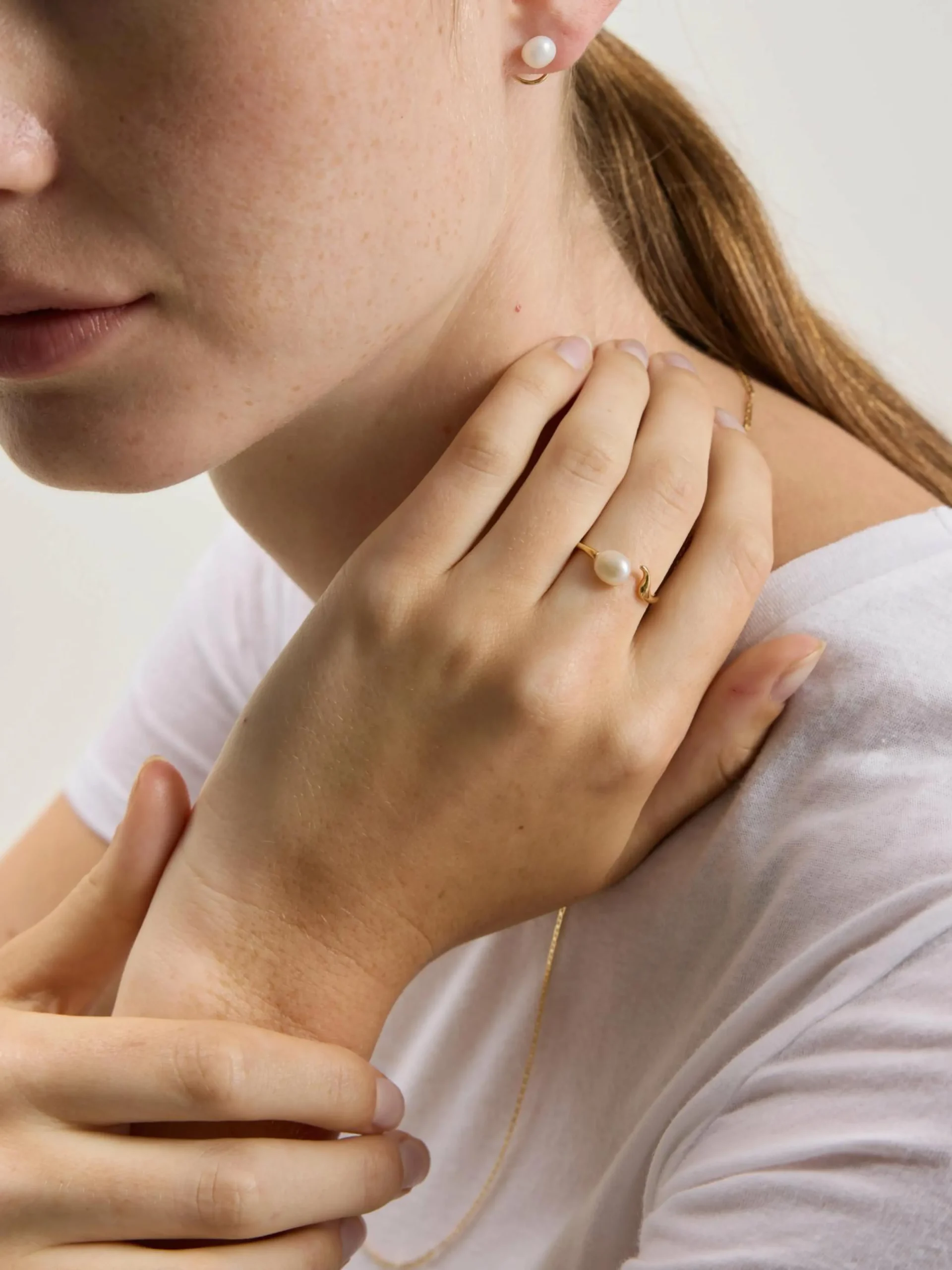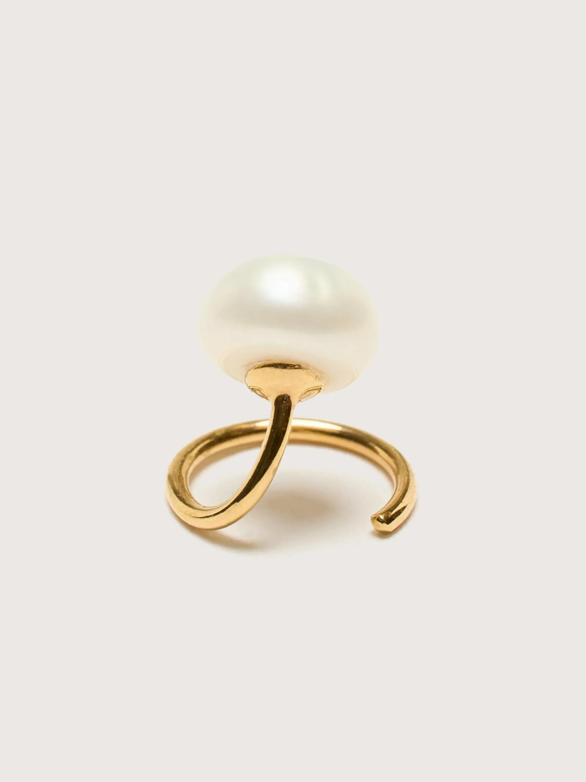De Maria Black Baroque Twirl oorbel heeft een uniek 18k verguld gerecycled zilveren ontwerp met een zoetwaterparel.