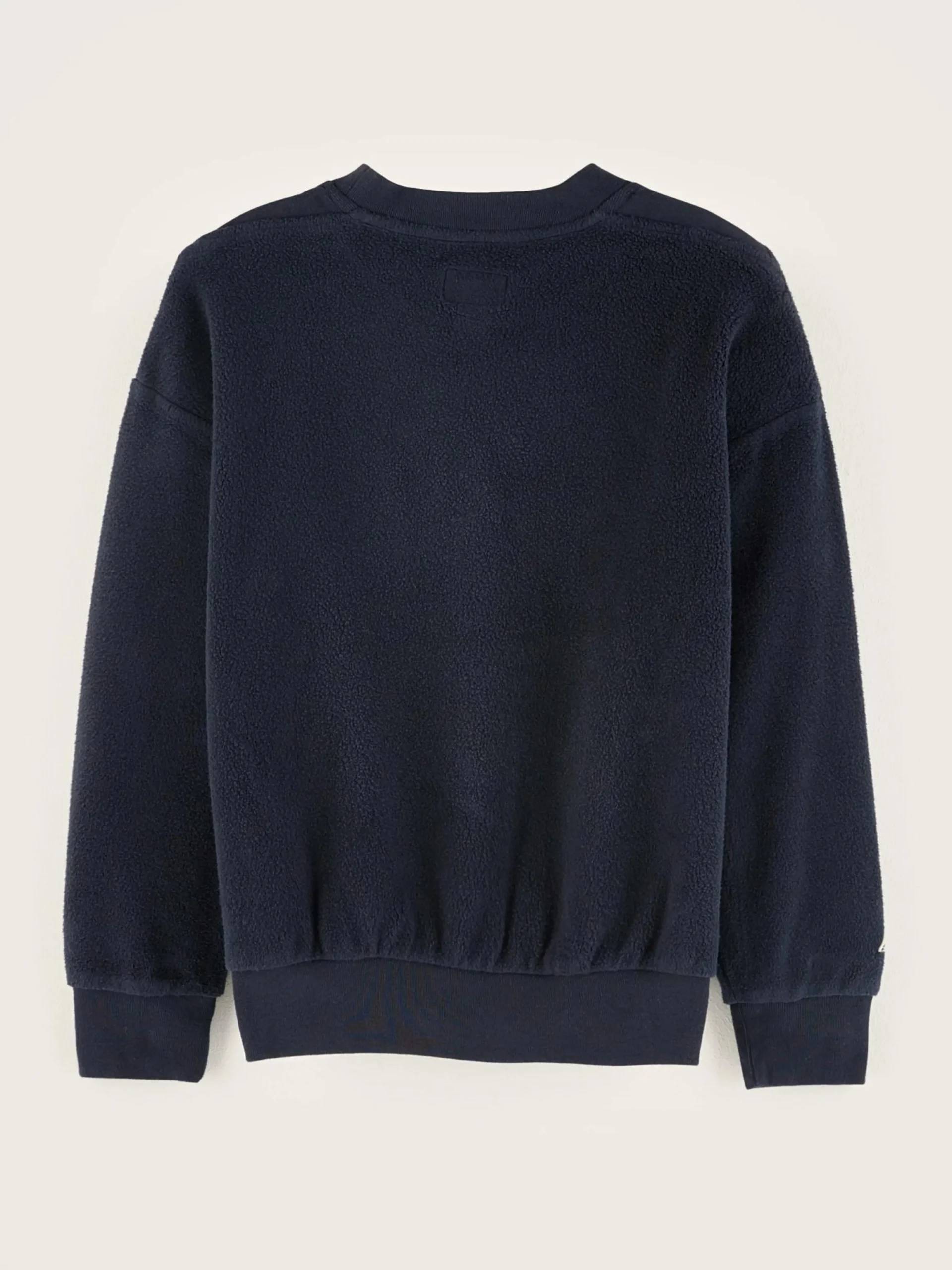 Klassiek, donkerblauw sweatshirt van teddyachtige katoenfleece.