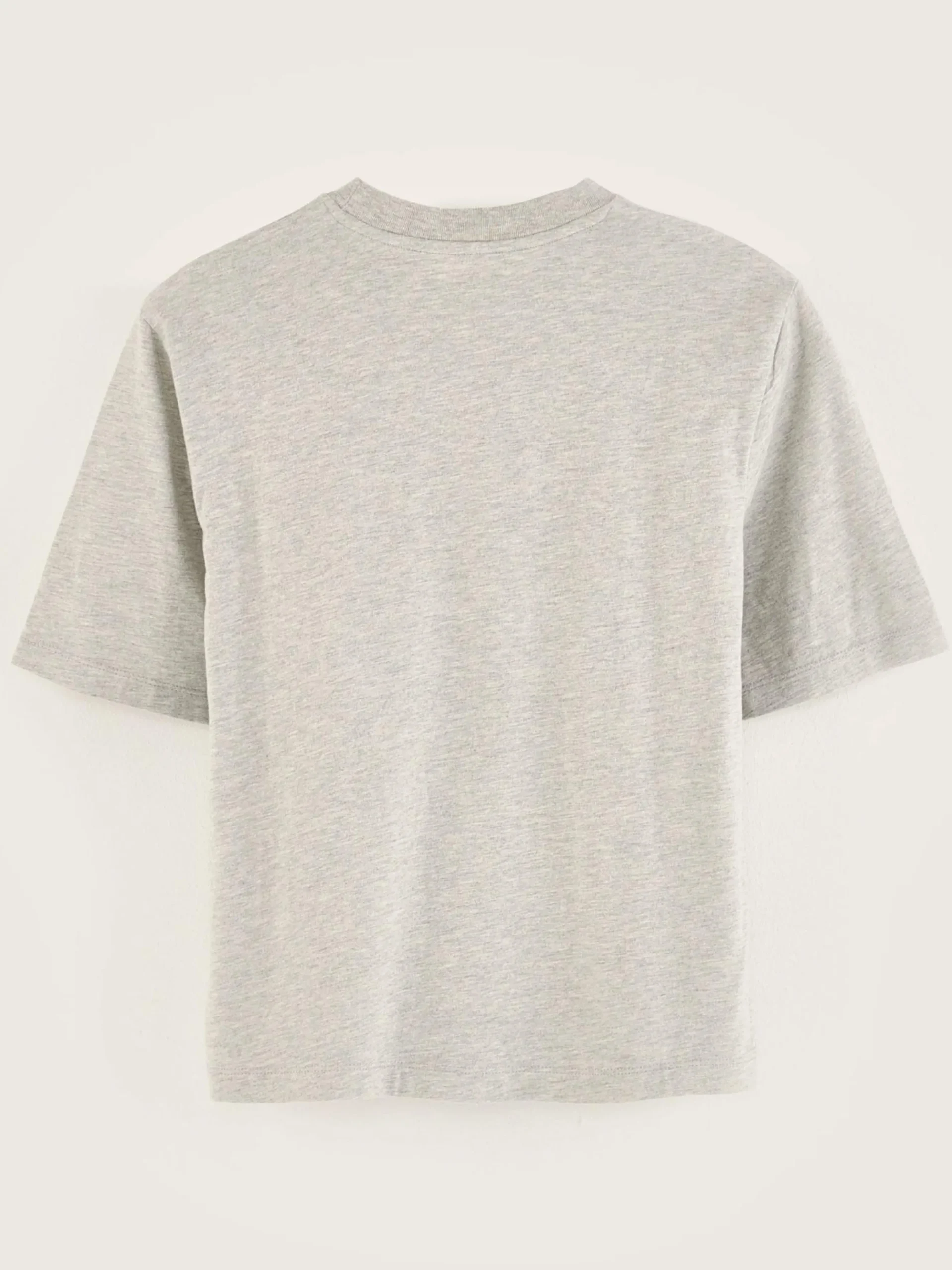Klassiek, unisex T-shirt van heidegrijze katoenjersey en met “Spirit”-print op de voorzijde.