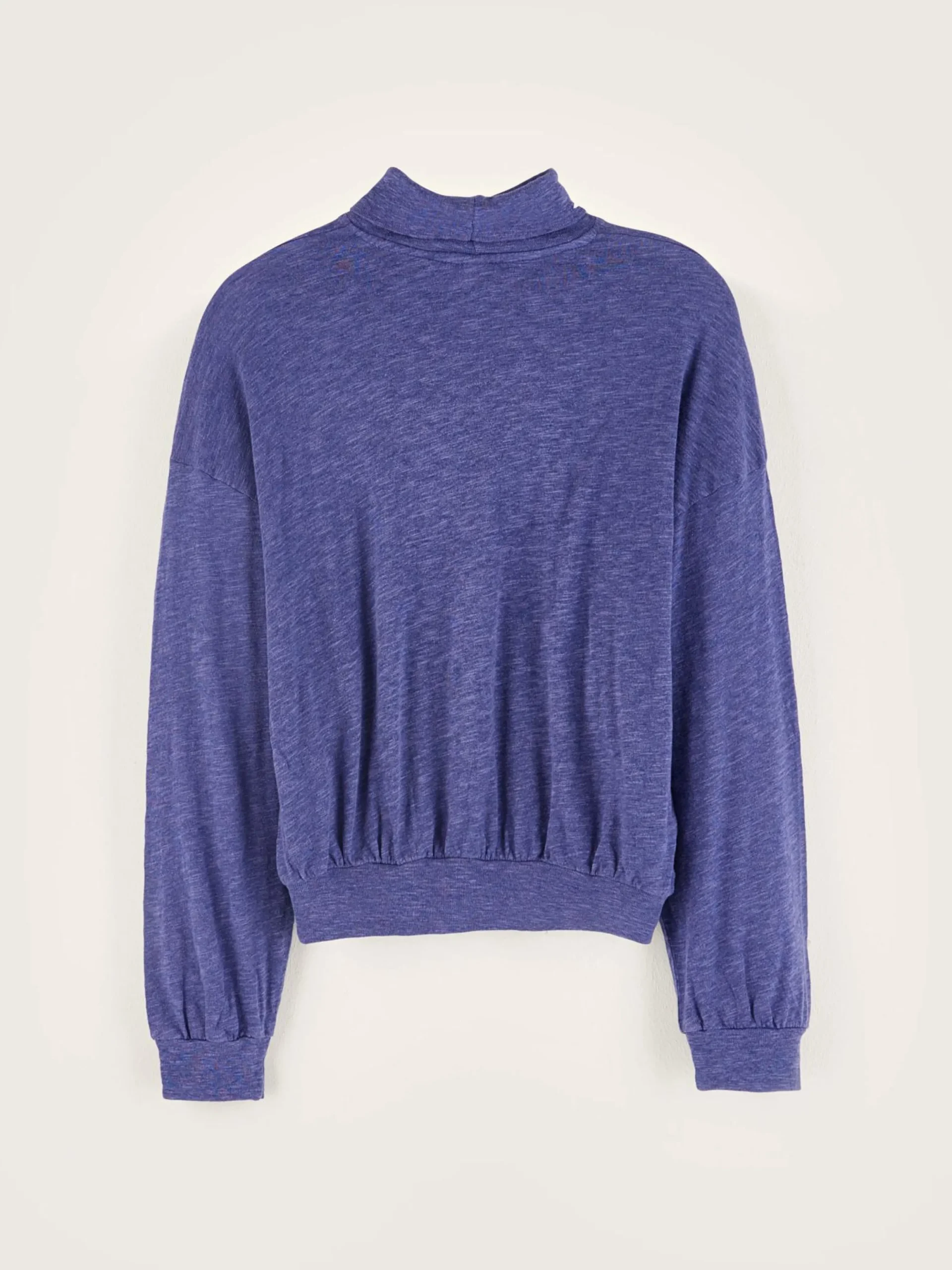Blauw, comfortabel T-shirt met lange mouwen en een rolkraag.