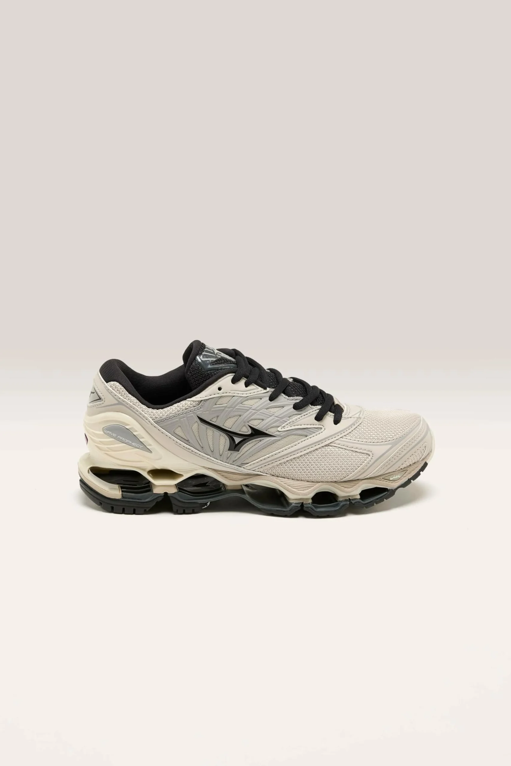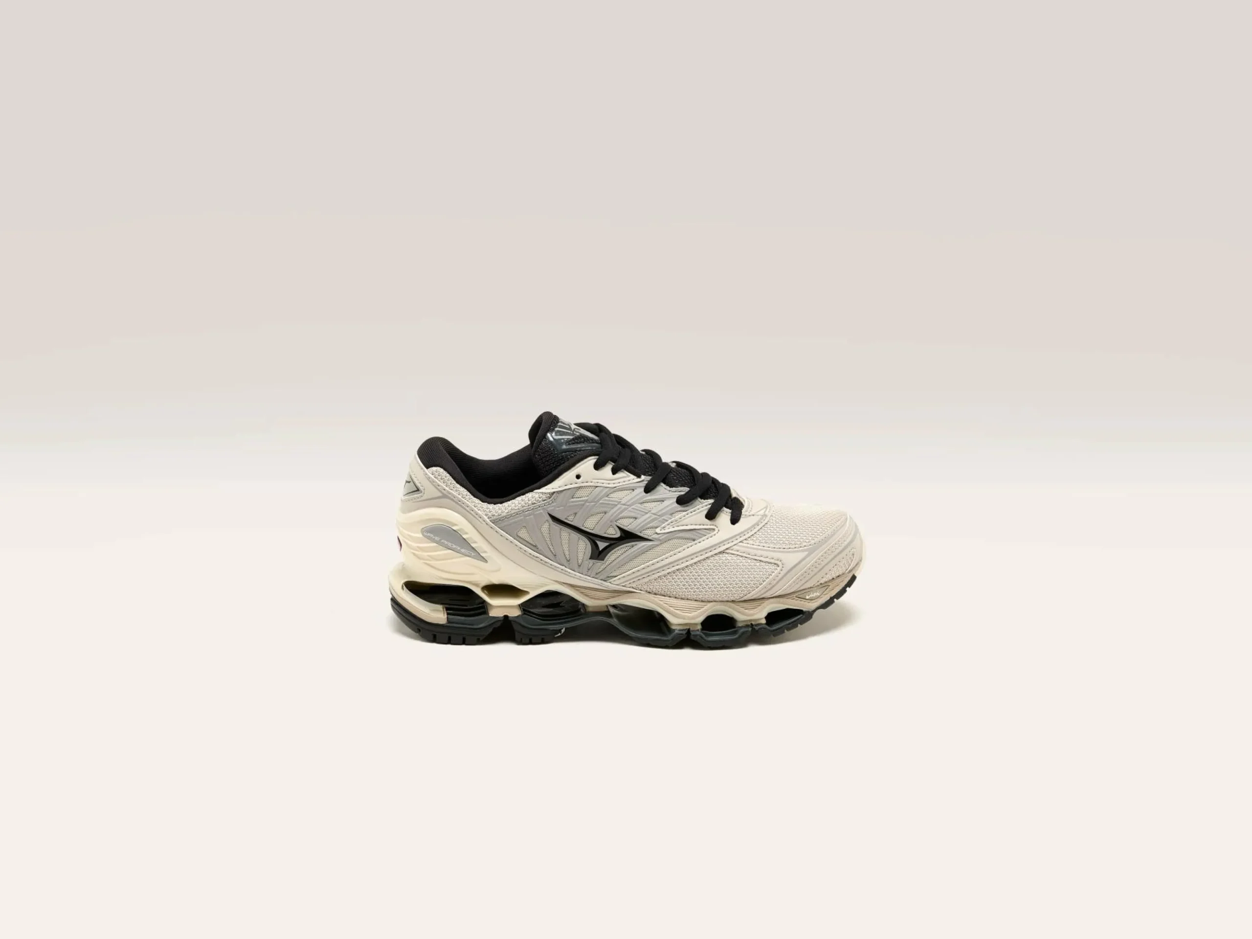 The Wave Prophecy LS sportstyle sneakers feature an evolutionary midsole with a Mizuno carbon rubber outsole for more extended wear with more cushion and traction.