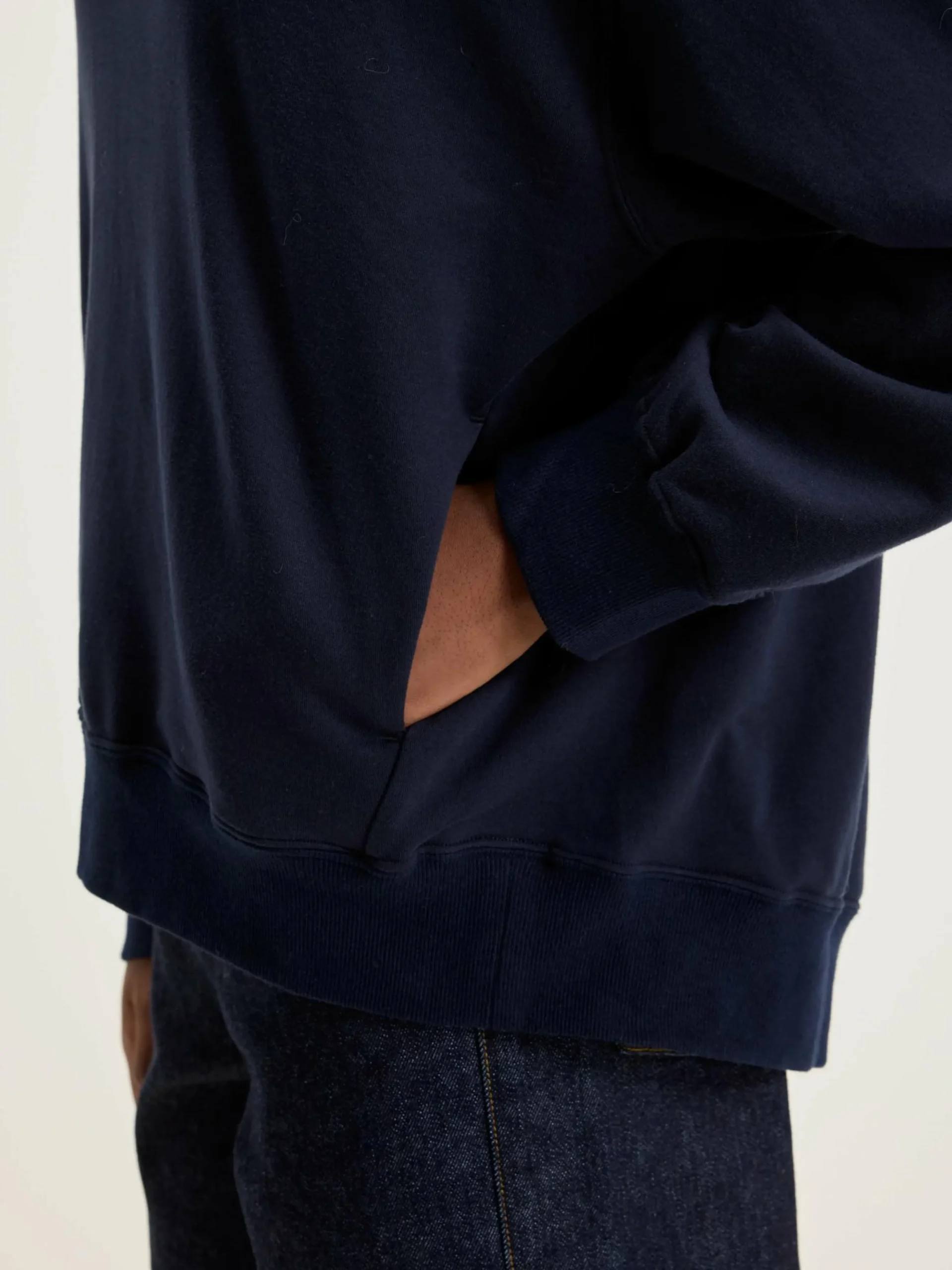 Het Tune French Terry sweatshirt van het Japanse luxemerk Nicholson & Nicholson heeft een kraag met hoge hals en steekzakken van katoen met een hoge dikte.