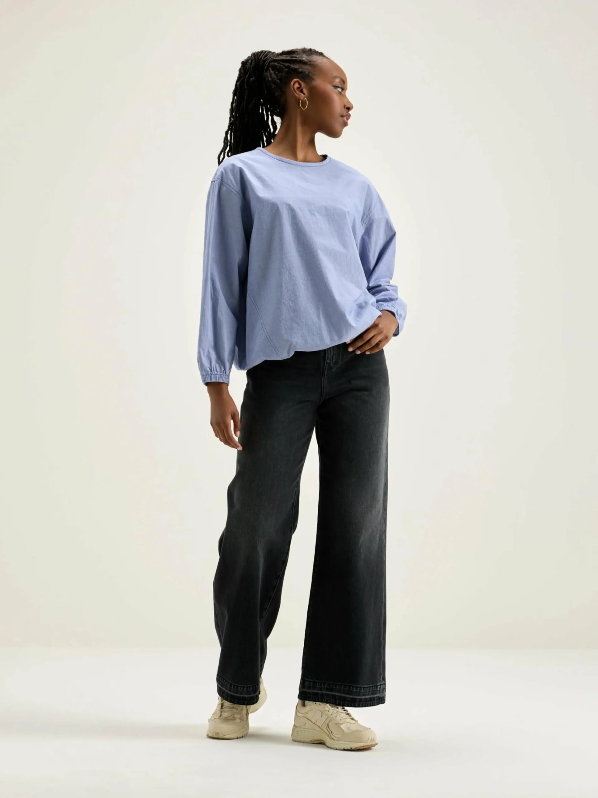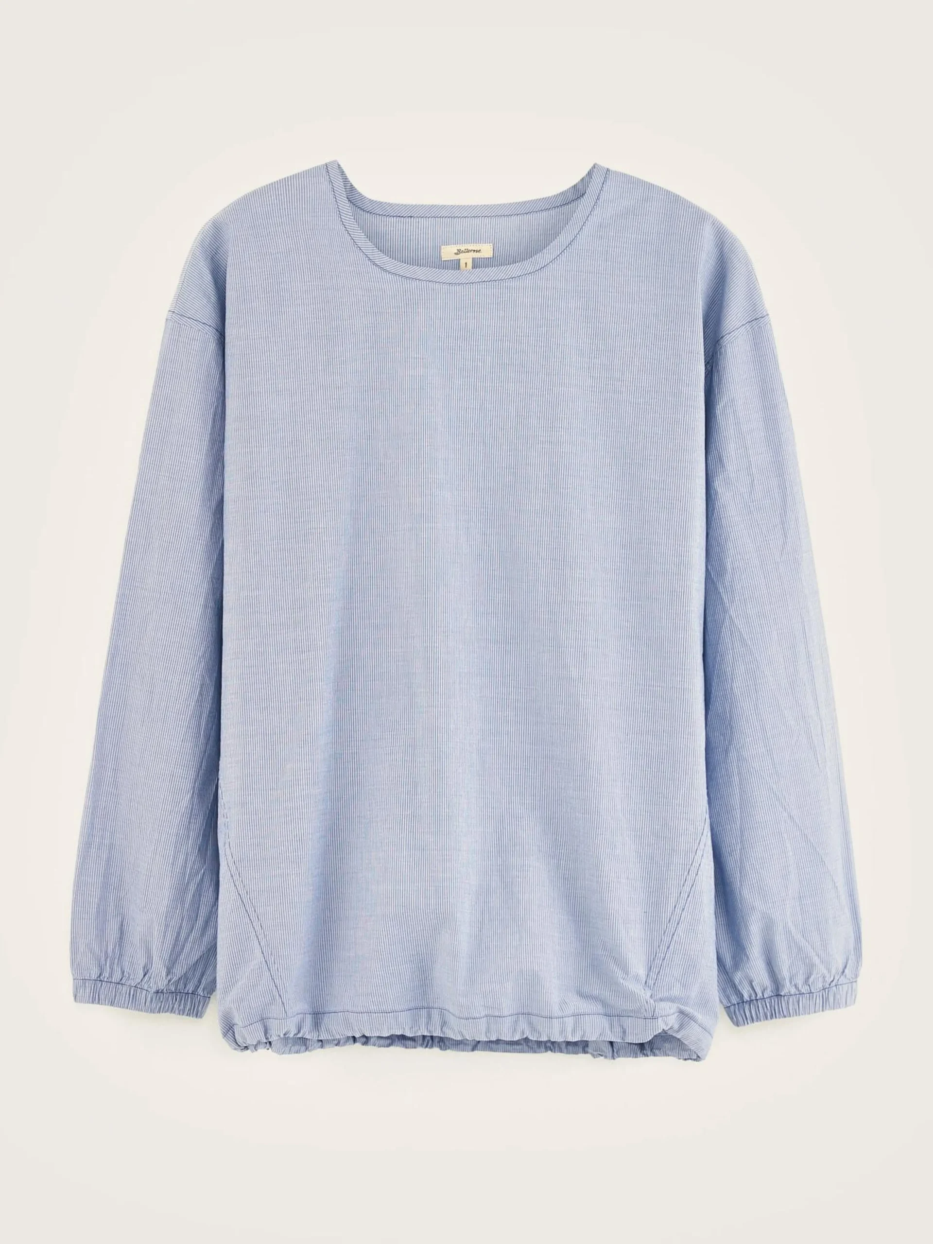 Oversizede, T-shirtachtige blouse van katoen met chambray blauwe en witte strepen.