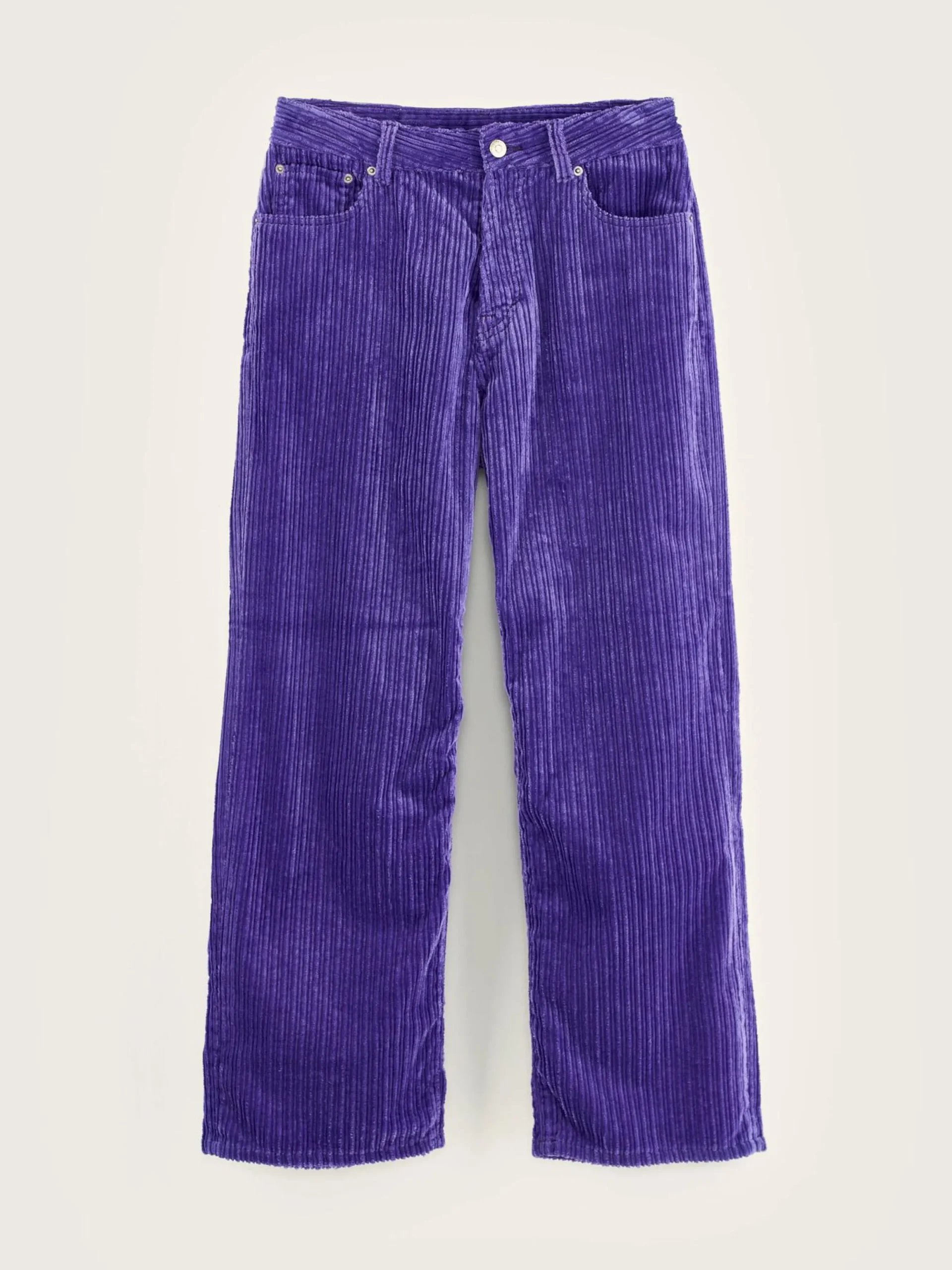 Mid-waist jeans met wijde pijpen, van paars corduroy met brede rib.