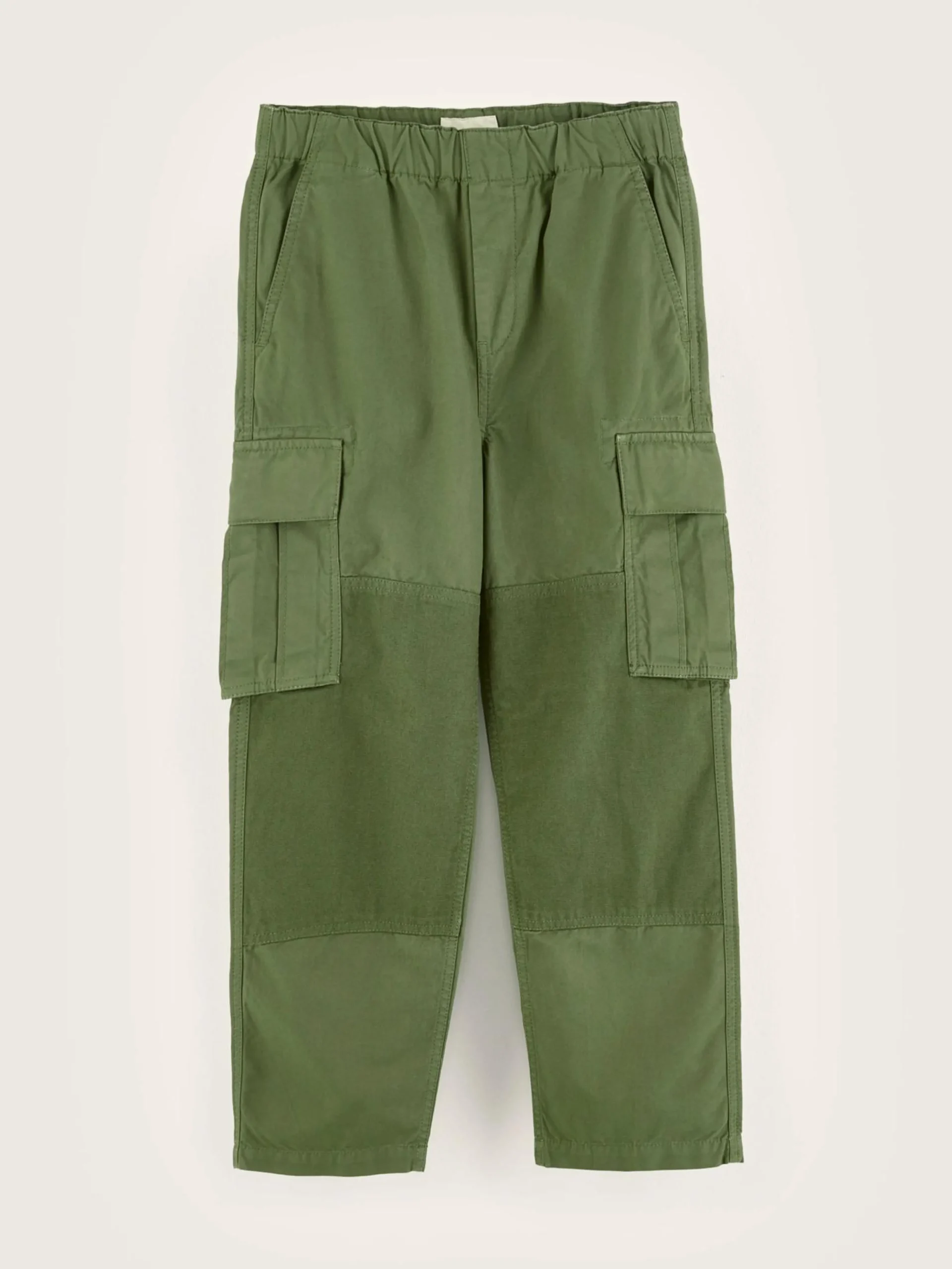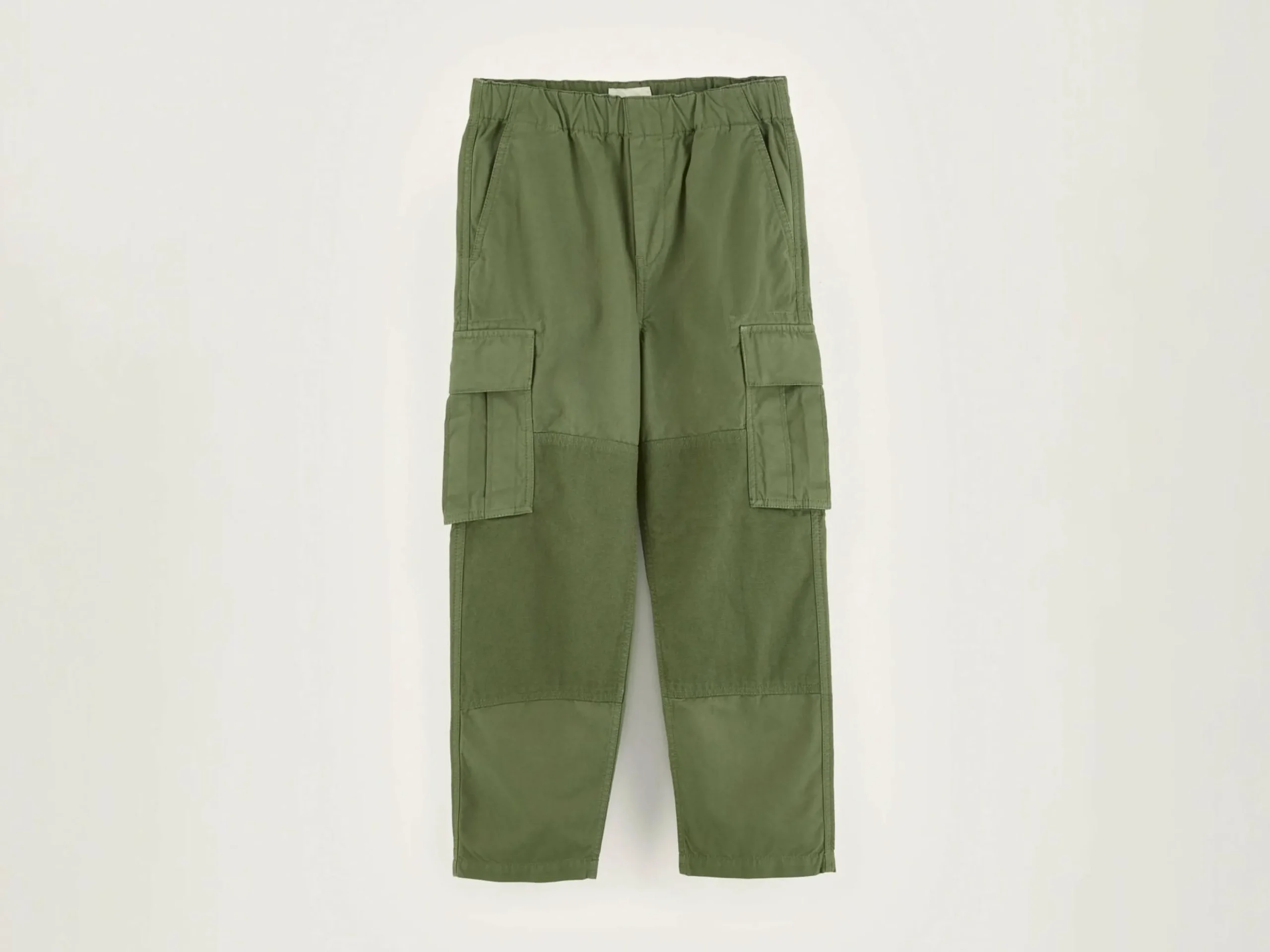 Relaxede kakigroene cargobroek met wijde pijpen, van ripstop katoen.