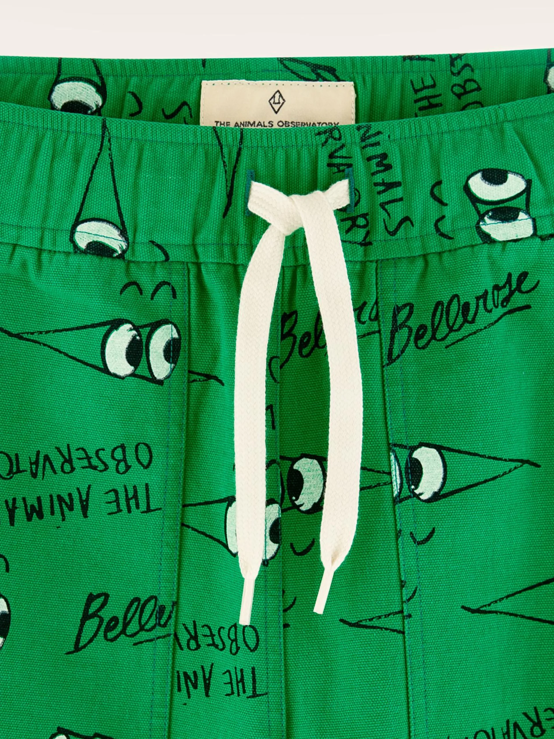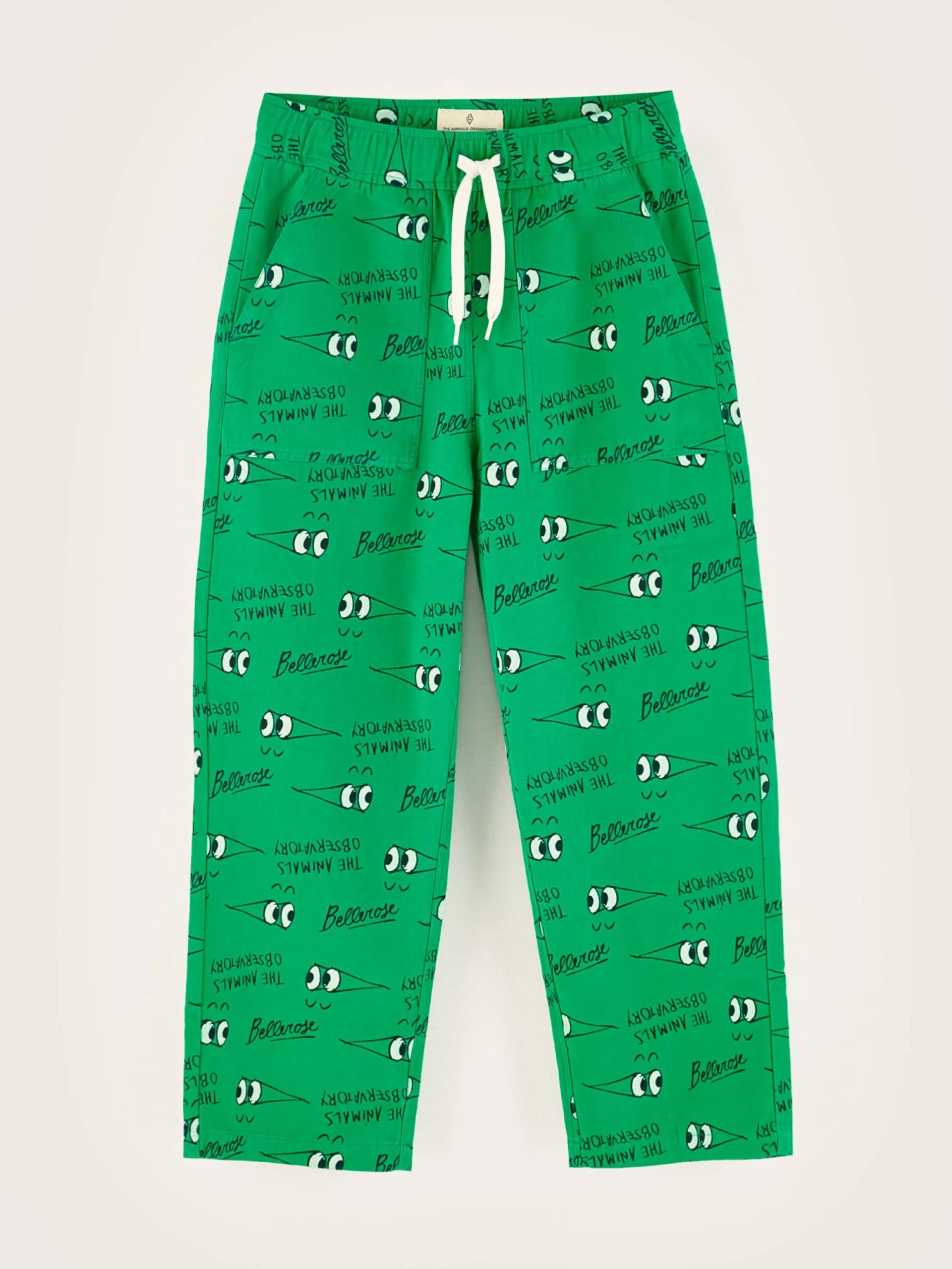 Groene baggy broek van canvas katoen met rechte pijpen, fatigue zakken vooraan en opgestikte achterzakken, volledig bedrukt met een Bellerose x The Animal Observatory-print.