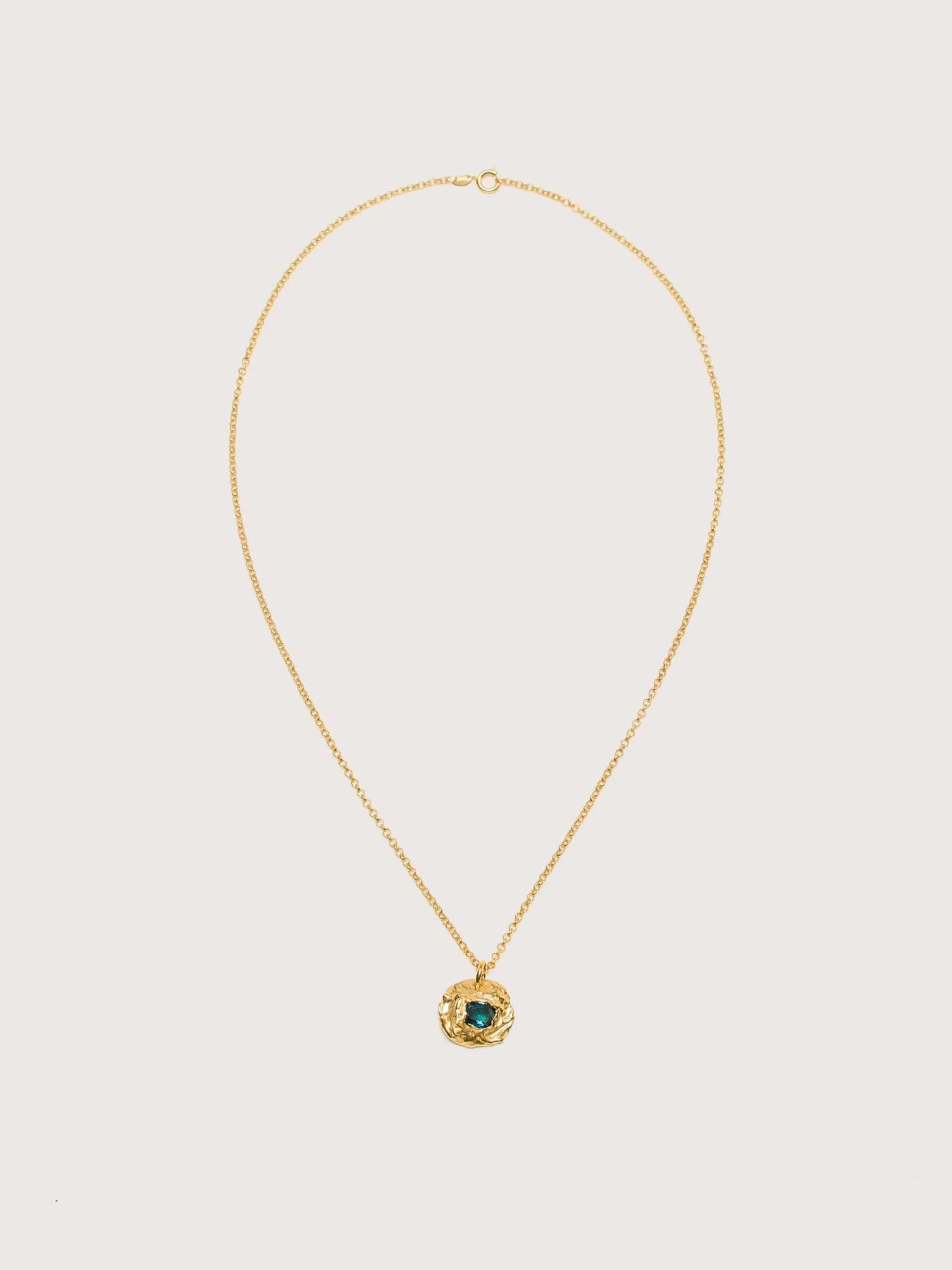 De Simuero Illetes Gold ketting is handgemaakt van 18k verguld gerecycleerd 925 sterling zilver met een smaragdgroene kubieke zirkonia stenen hanger.