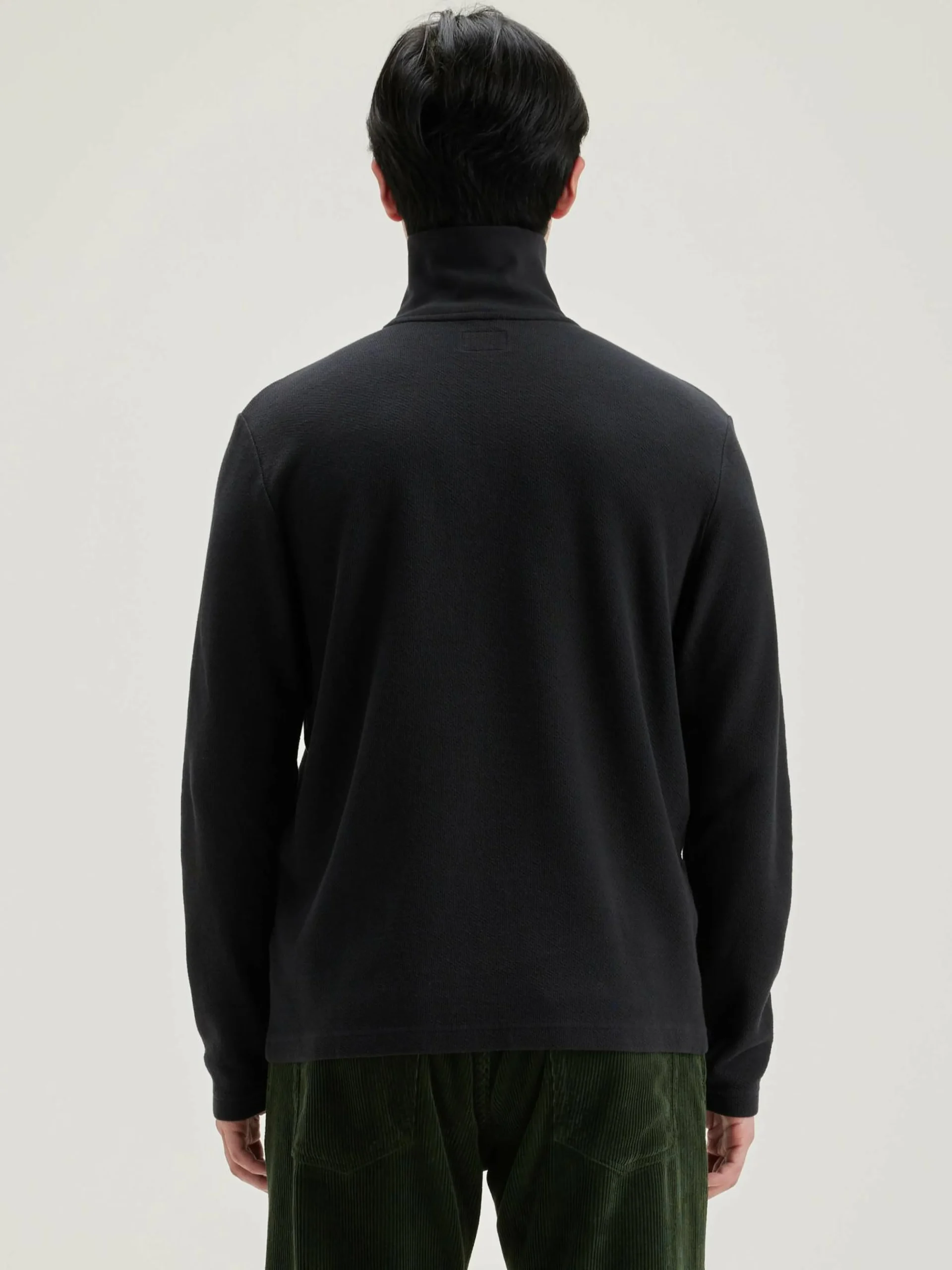 Klassiek marineblauw T-shirt met lange mouwen en een hals met ritssluiting, van dubbelzijdige katoenjersey.