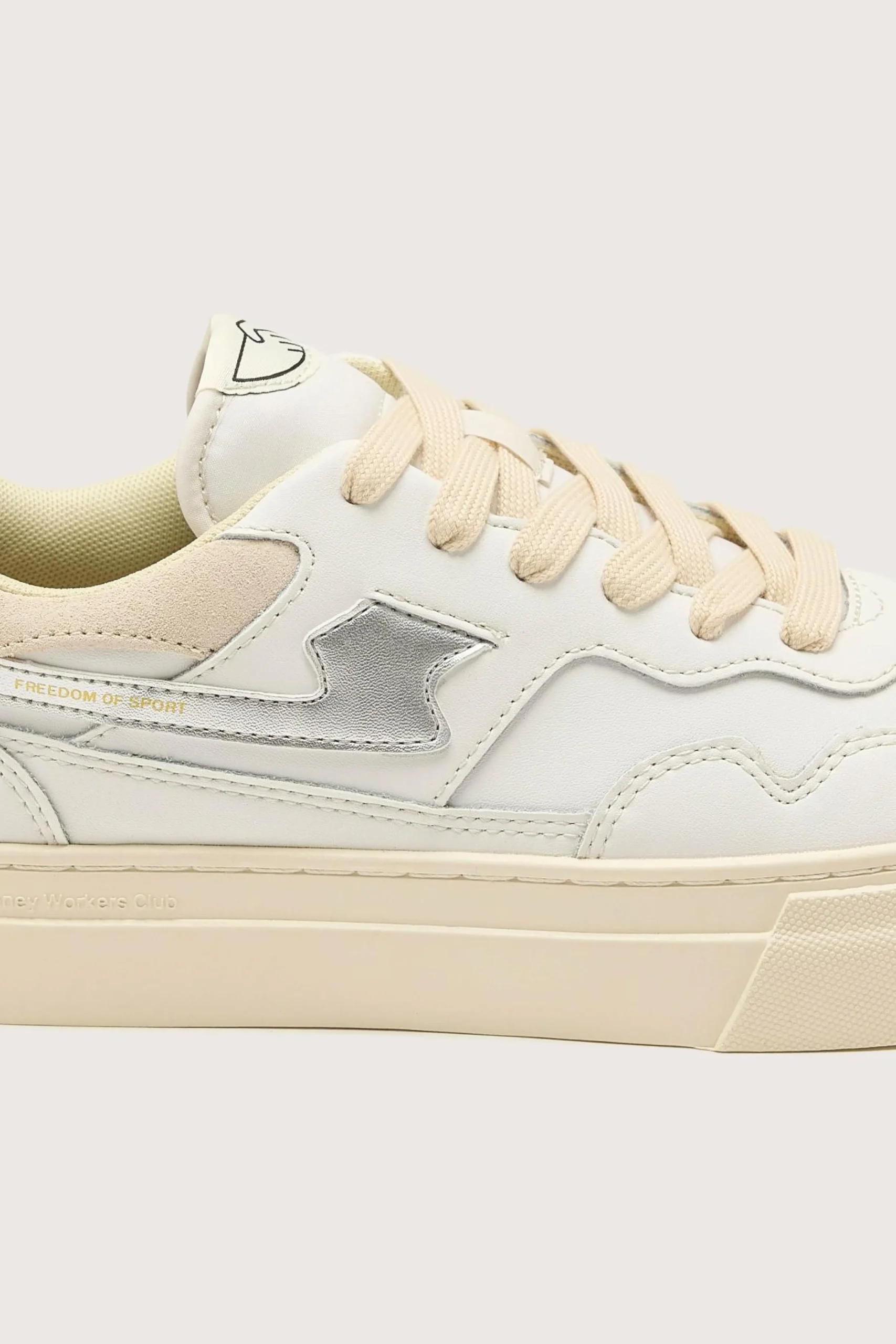 The Stepney Workers Club Pearl S-Strike sneaker features a paneled leather upper, padded nylon tongue, and rubber cupsole.